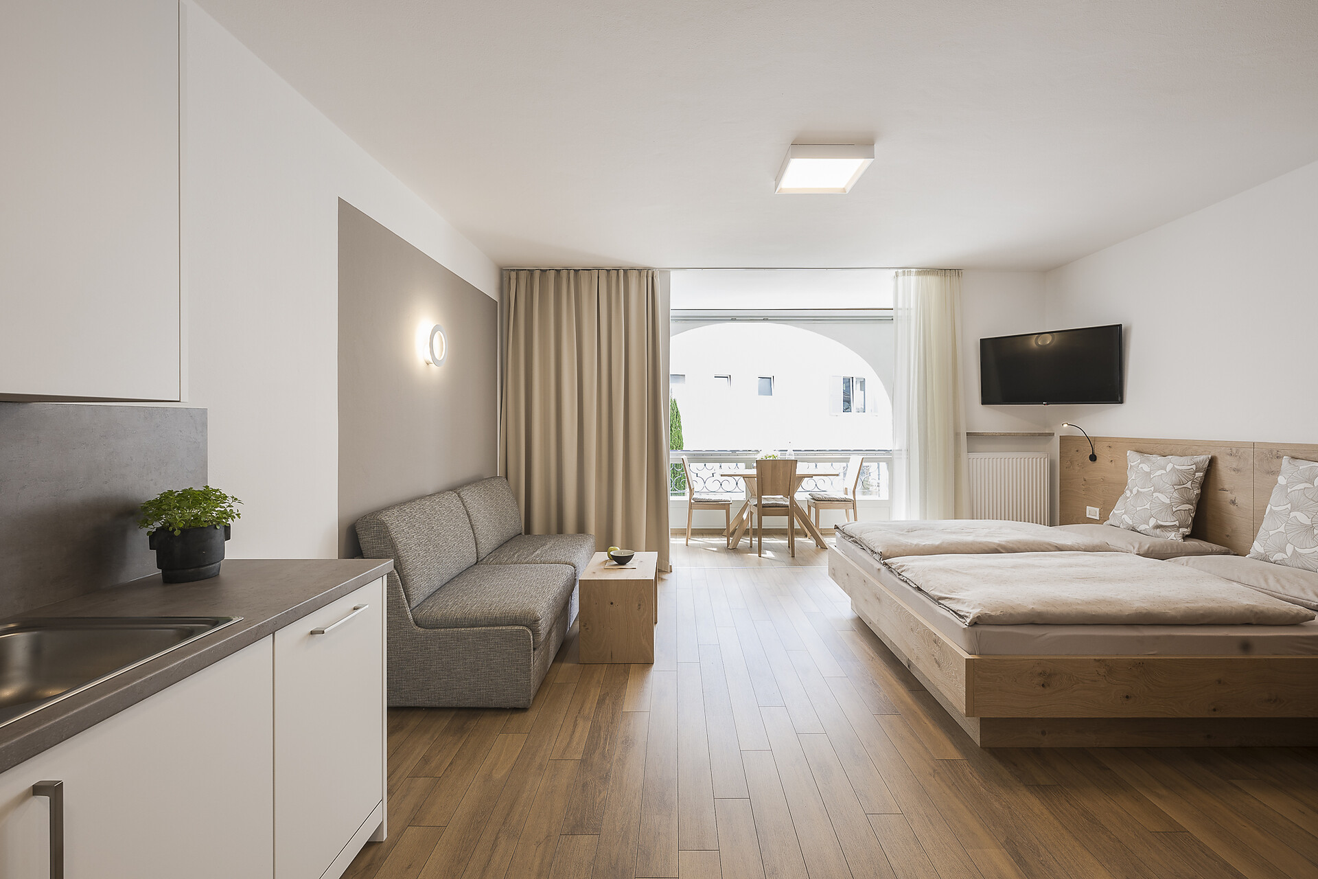 Double bed , Extra bed, Sofa bed, Balcony, Separate living area, Bed linen provided, Safe, Non-smoking apartment, Eat-in kitchen, Coffee machine, Electric cooker, Cutlery provided, Water boiler, Shower/Bath tub, Hair dryer, Towels, TV, WLAN, Final cleaning included, Main building, Panoramic view