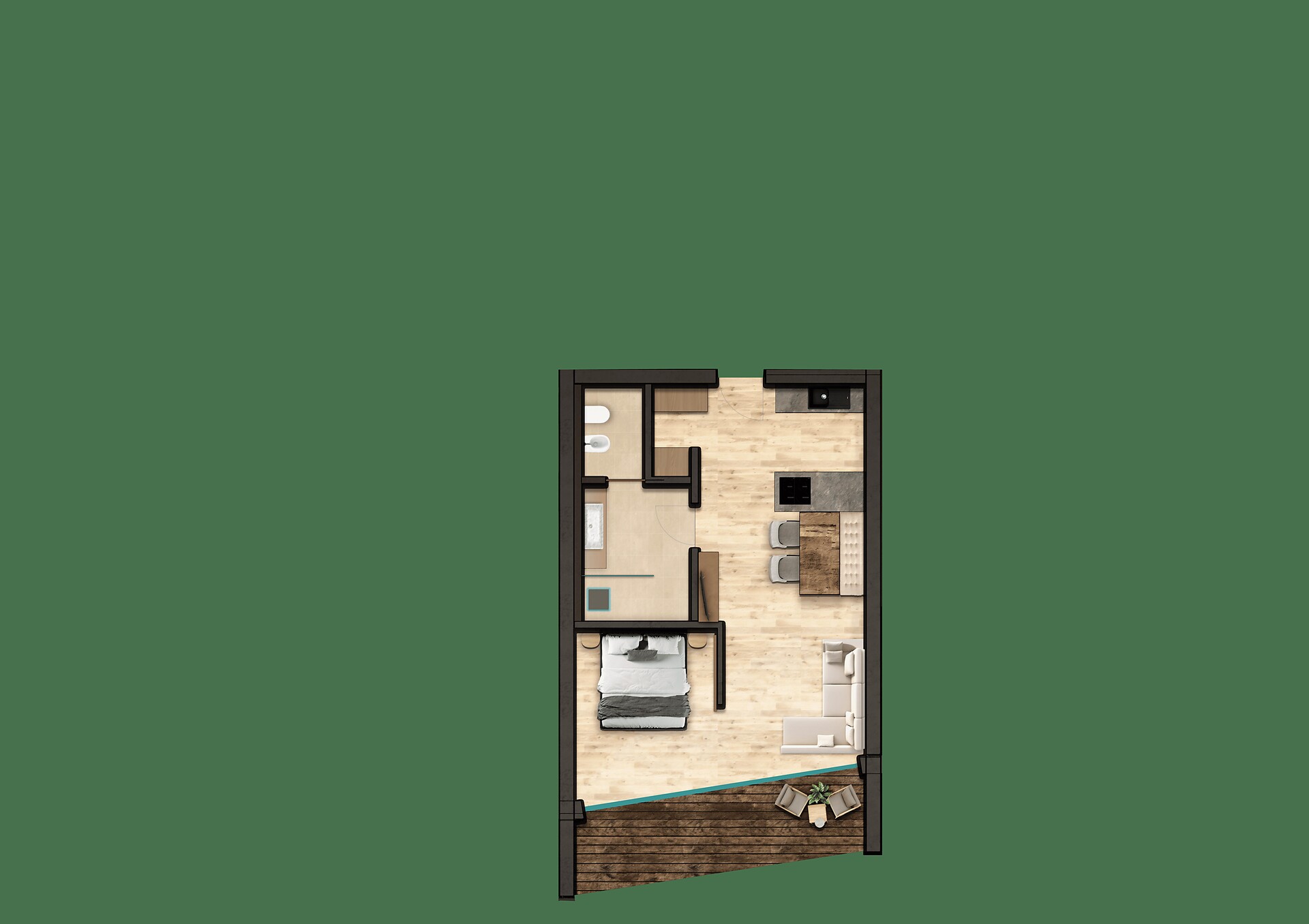 Apartment for 2-4 persons, comfortable double bedroom, cosy kitchen/living room with sofa bed, spacious wellness bathroom, fully equipped kitchen with dishwasher, underfloor heating/air conditioning, satellite TV, W-Lan, safe, terrace with garden access, dining table and loungers, open car parking space.