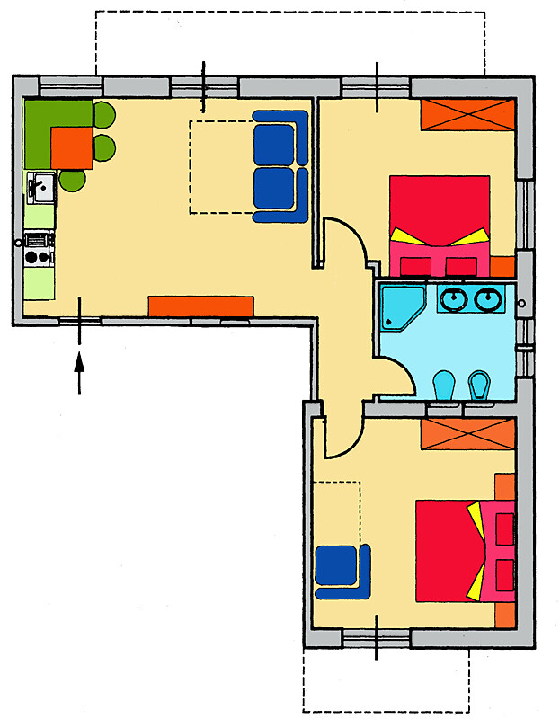 Comfortably furnished apartments 35 - 58 sq. mts., for 2-7 persons with balcony/terrace.