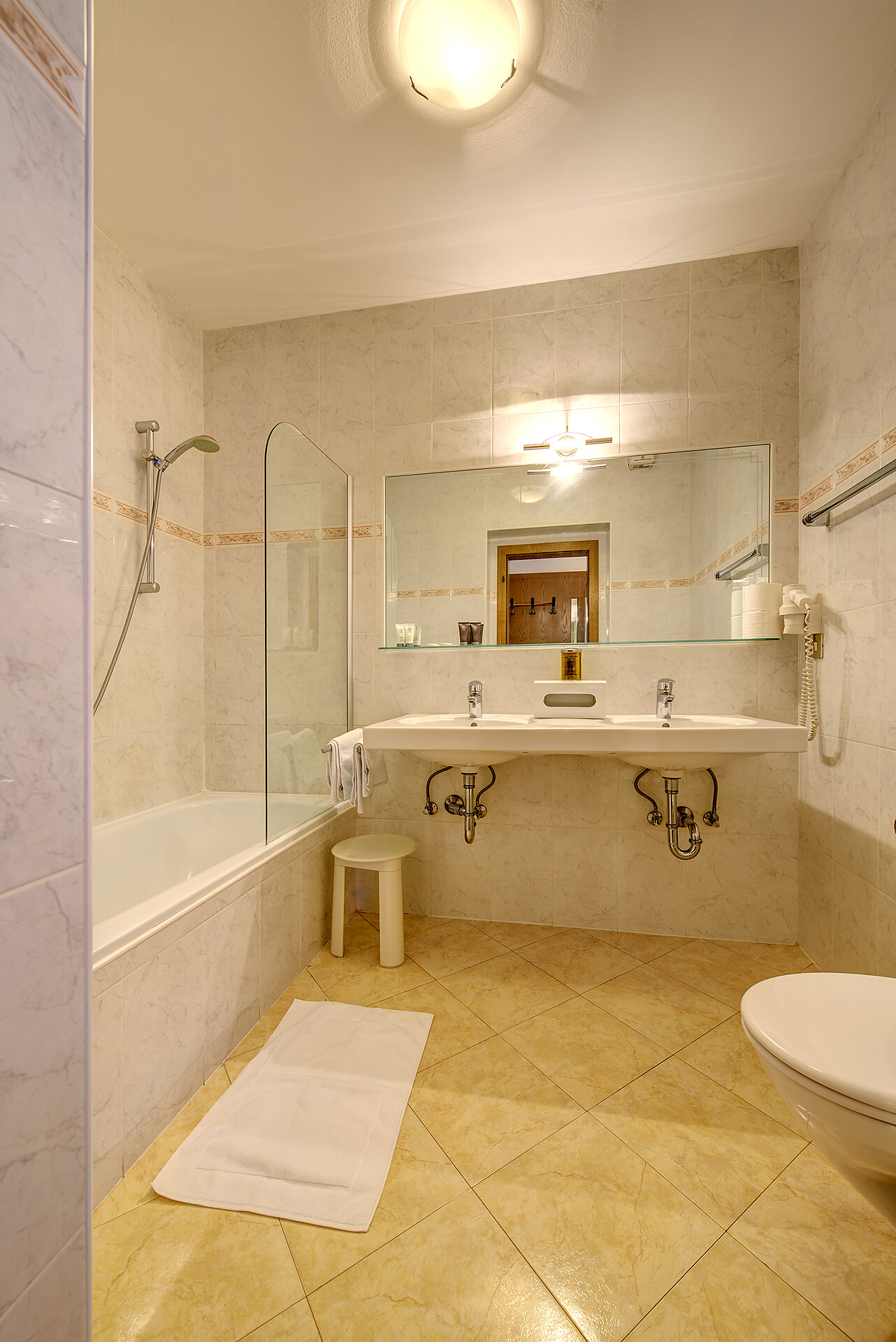 Alpin Superior, quite exclusively new corner rooms of 34 sq m, oak furniture, leather bed head and couch, with wooden floor. TV, safe, minibar, wireless lan; large bathroom of 6 sq m with double basin.