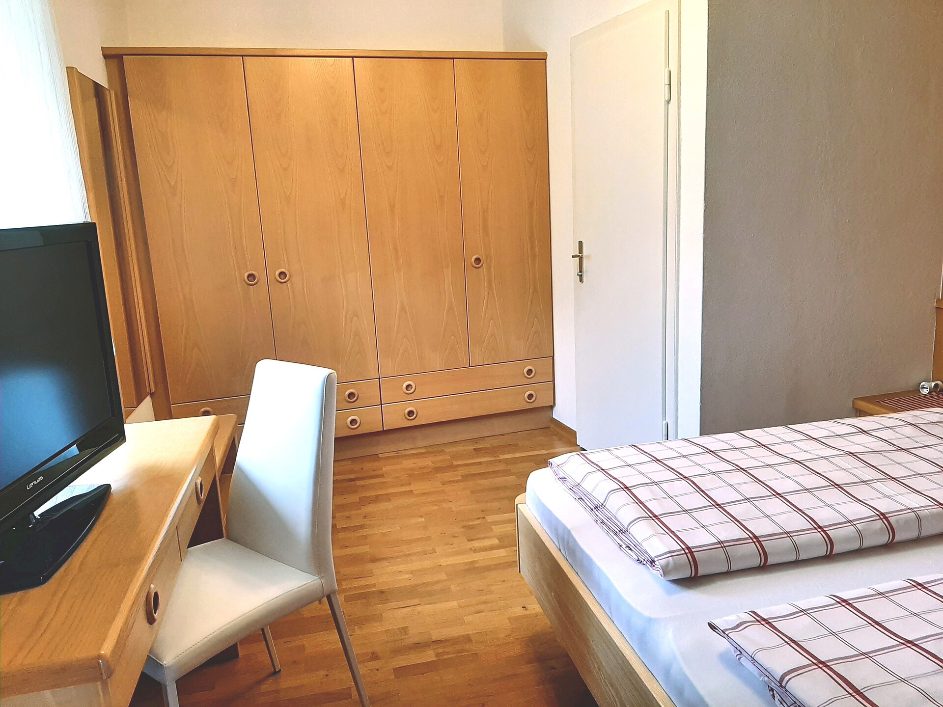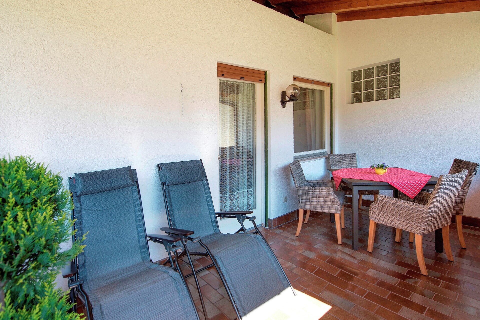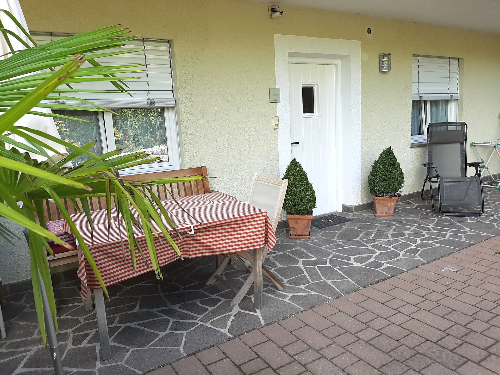 ground floor - 45 m² for 2-5 persons without balcony but very close to our garden, large triple bed room, living kitchen furnished with extendable couch for 2 persons, dishwasher, shower/WC, phone, safe & Sat - TV and W-LAN Internet. Ideally for familys with Kids, babys