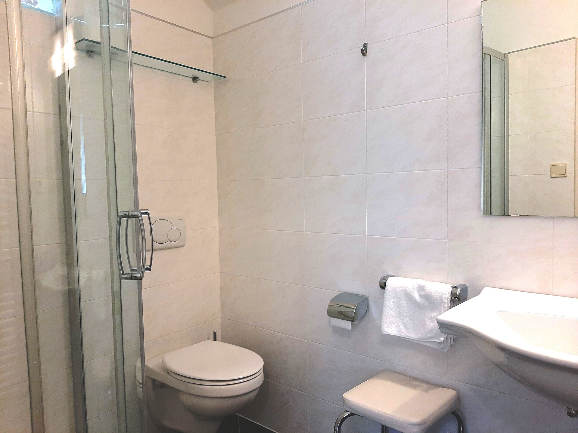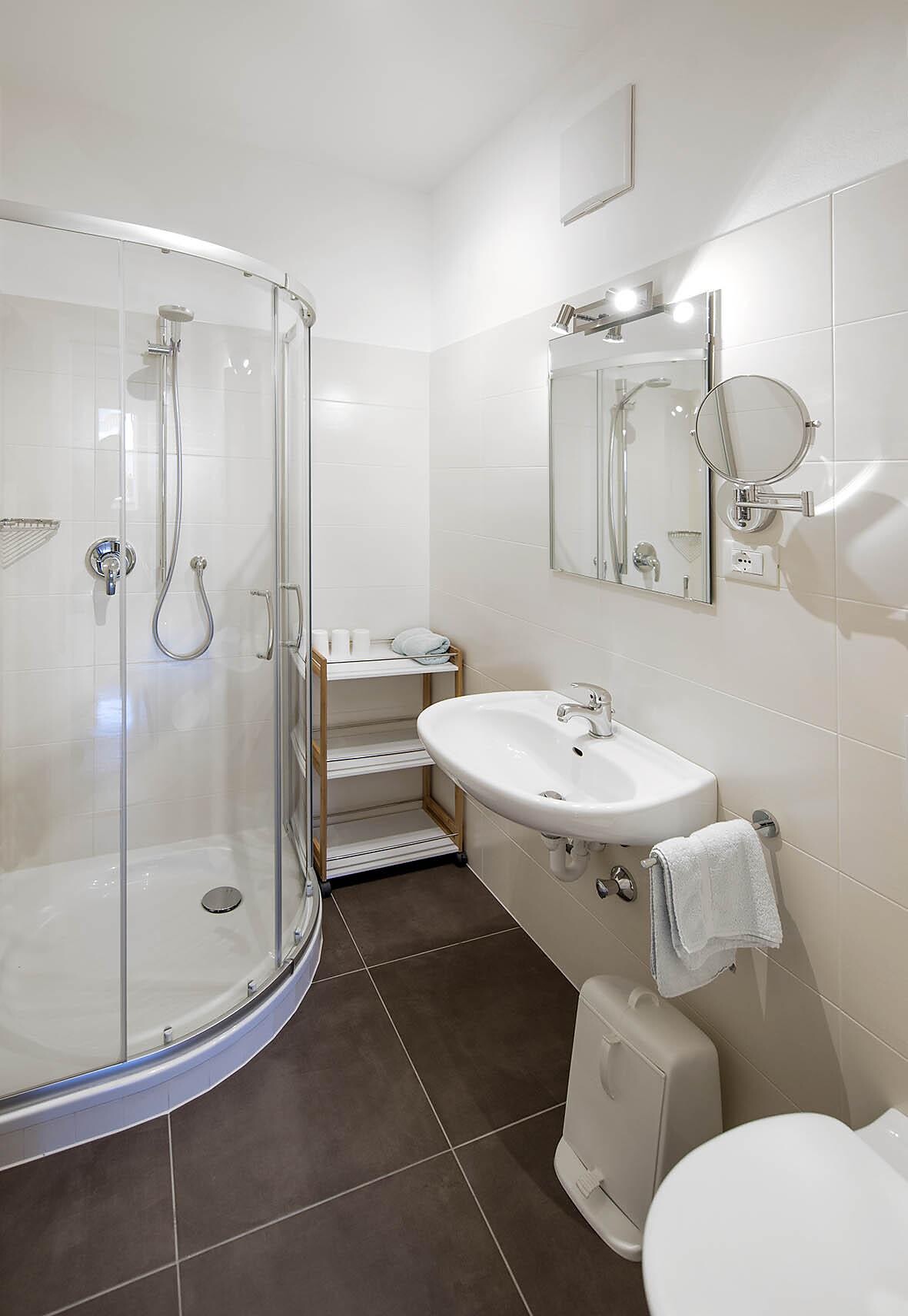 on first floor - 32 m² 2 persons Living kitchen with access to balcony overlooking Merano, separate bedroom, modern bathroom with shower/WC, phone, safe & Sat - TV and W-LAN Internet.