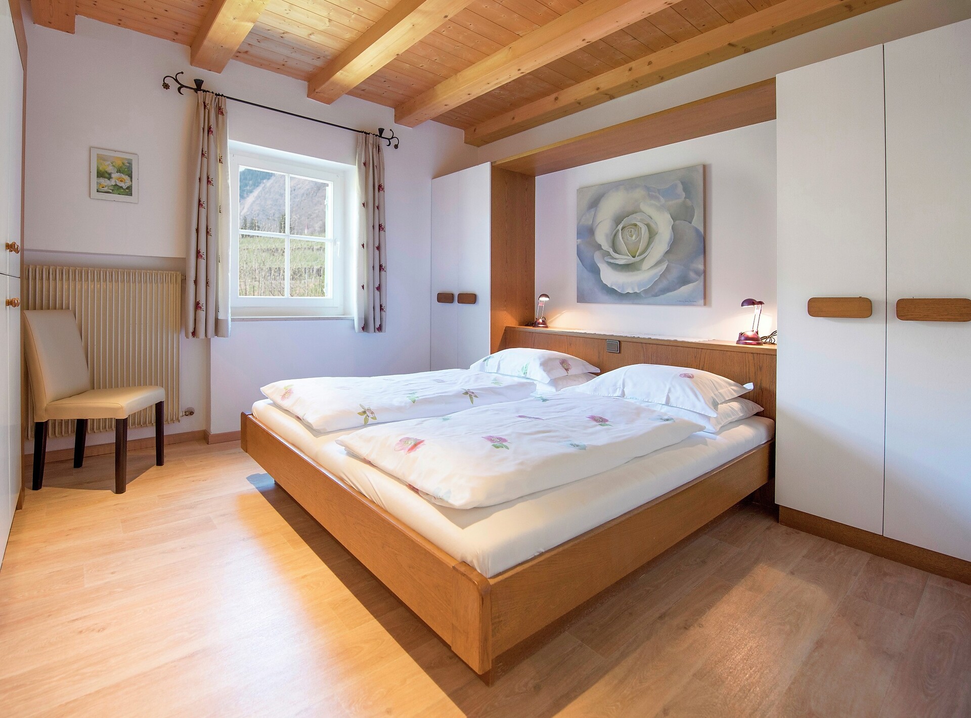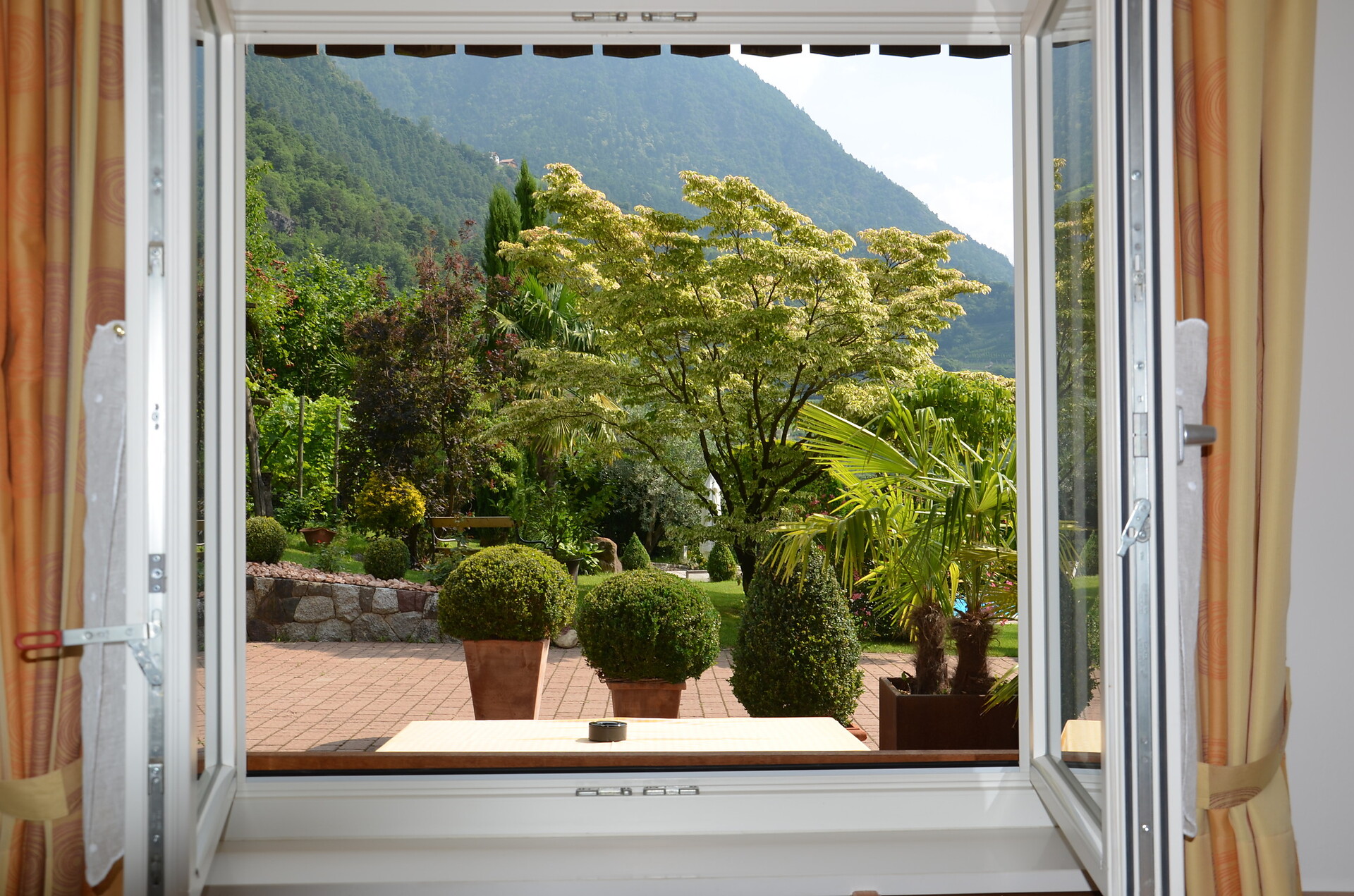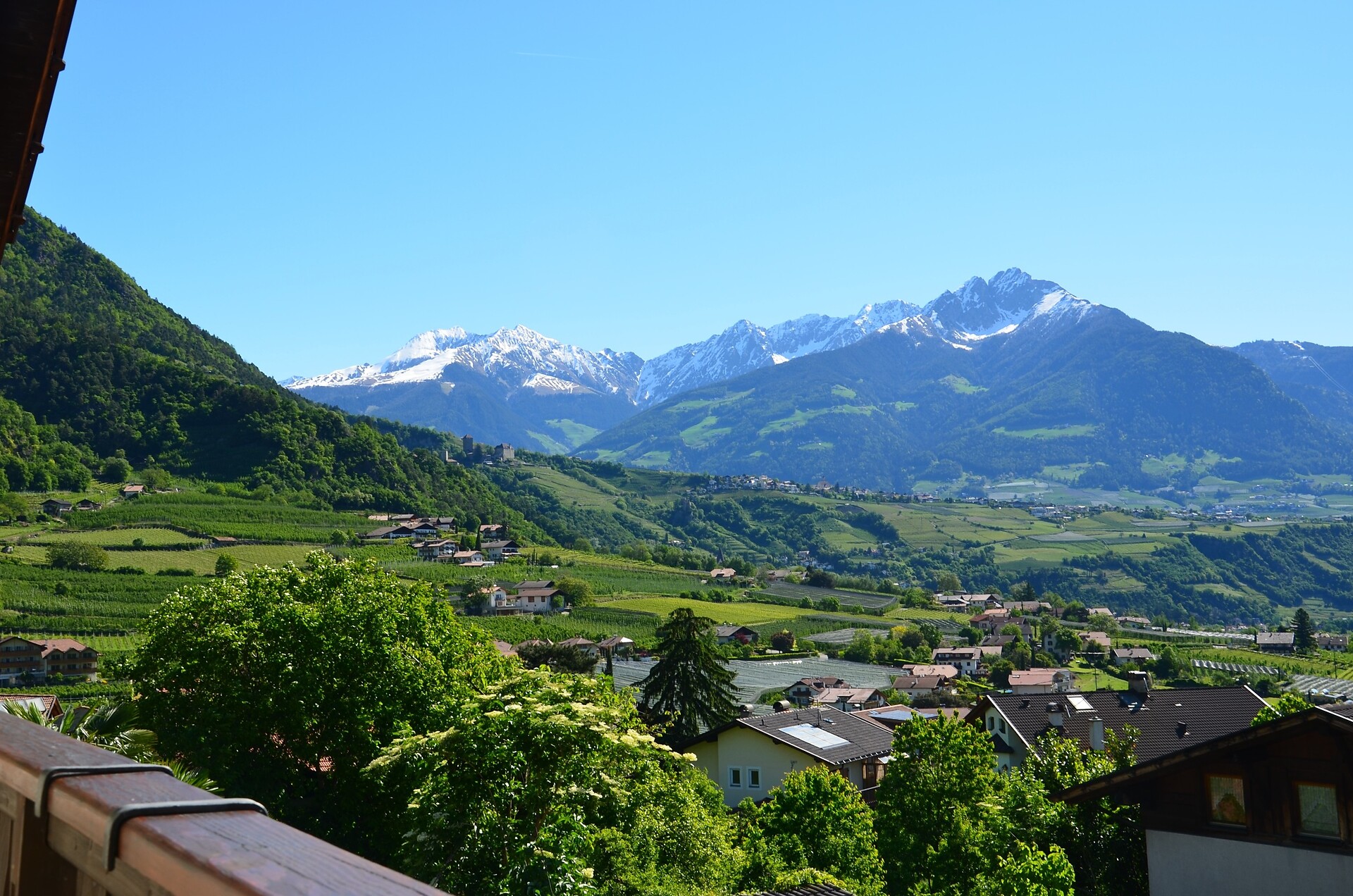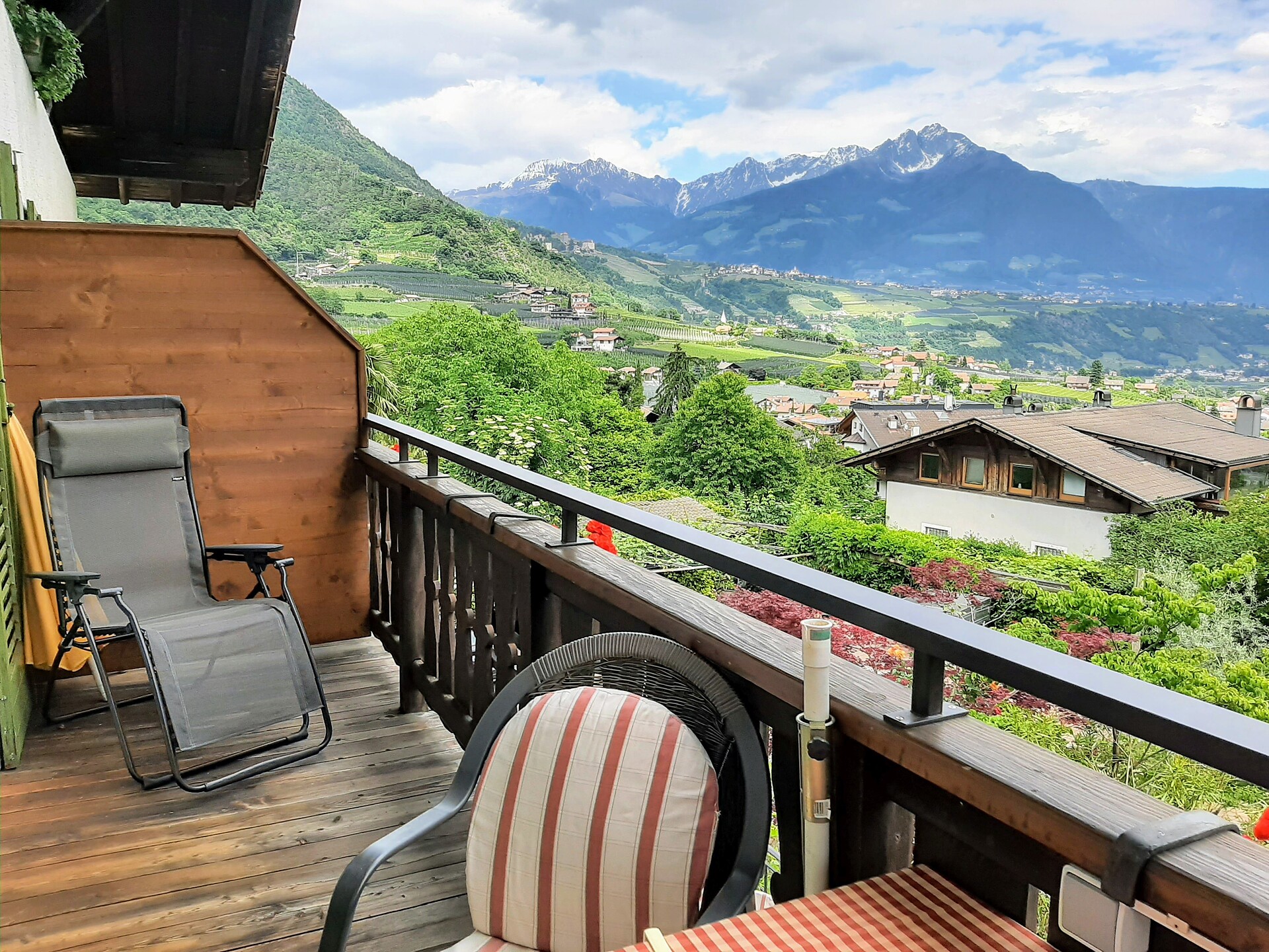 second floor - 50 m² for 2-4 persons Large living kitchen furnished with dishwasher, Access to balcony overlooking Algund and Merano and mountains around, 2 separate sleeping rooms, (one with extandable couch), shower/WC, phone, safe & Sat - TV and W-LAN Internet.