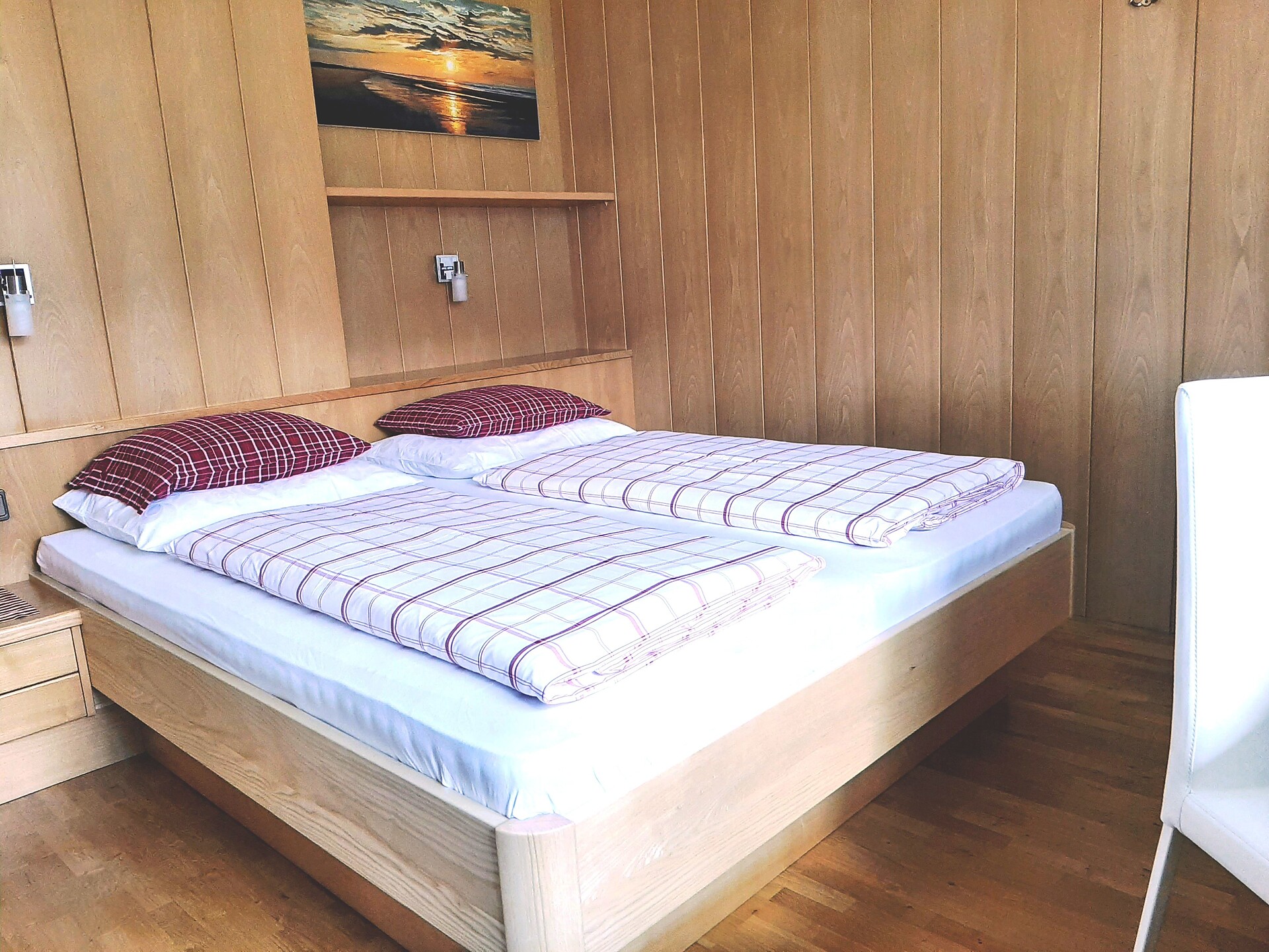Equipment: Double bed , Sofa bed, Double sofa bed, Balcony, Anti-allergic room, Bed linen provided, Safe, Eat-in kitchen, Coffee machine, Dishwasher, Cutlery provided, Hob, Water boiler, Shower/Bath tub, Bidet, Hair dryer, Towels, TV, Satellite/Cable, WLAN, Cleaning upon request, Main building, Panoramic view