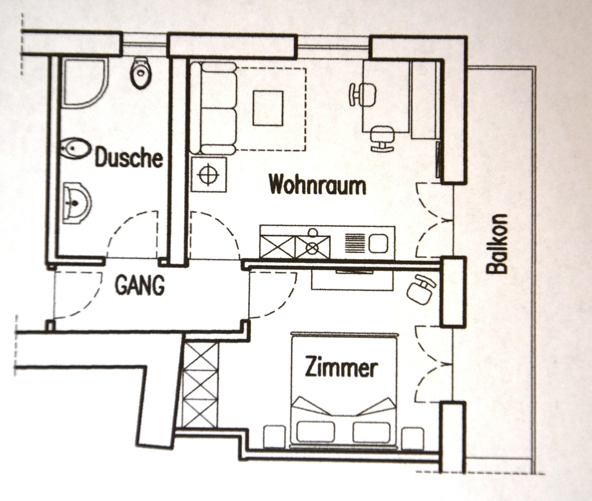 intermediate storey - 40 m² for 2-4 persons Living kitchen furnished with extendable couch, dish washer, dinette, Sat - TV, phone, safe, W-LAN Internet, separate bedroom, access to balcony from living room and bedroom to southeast side (pool side), large modern bath with shower/WC.