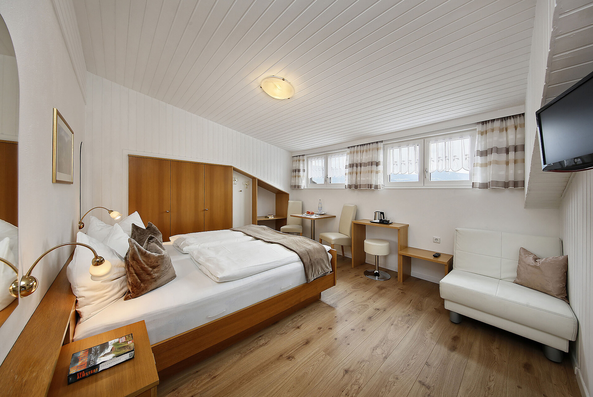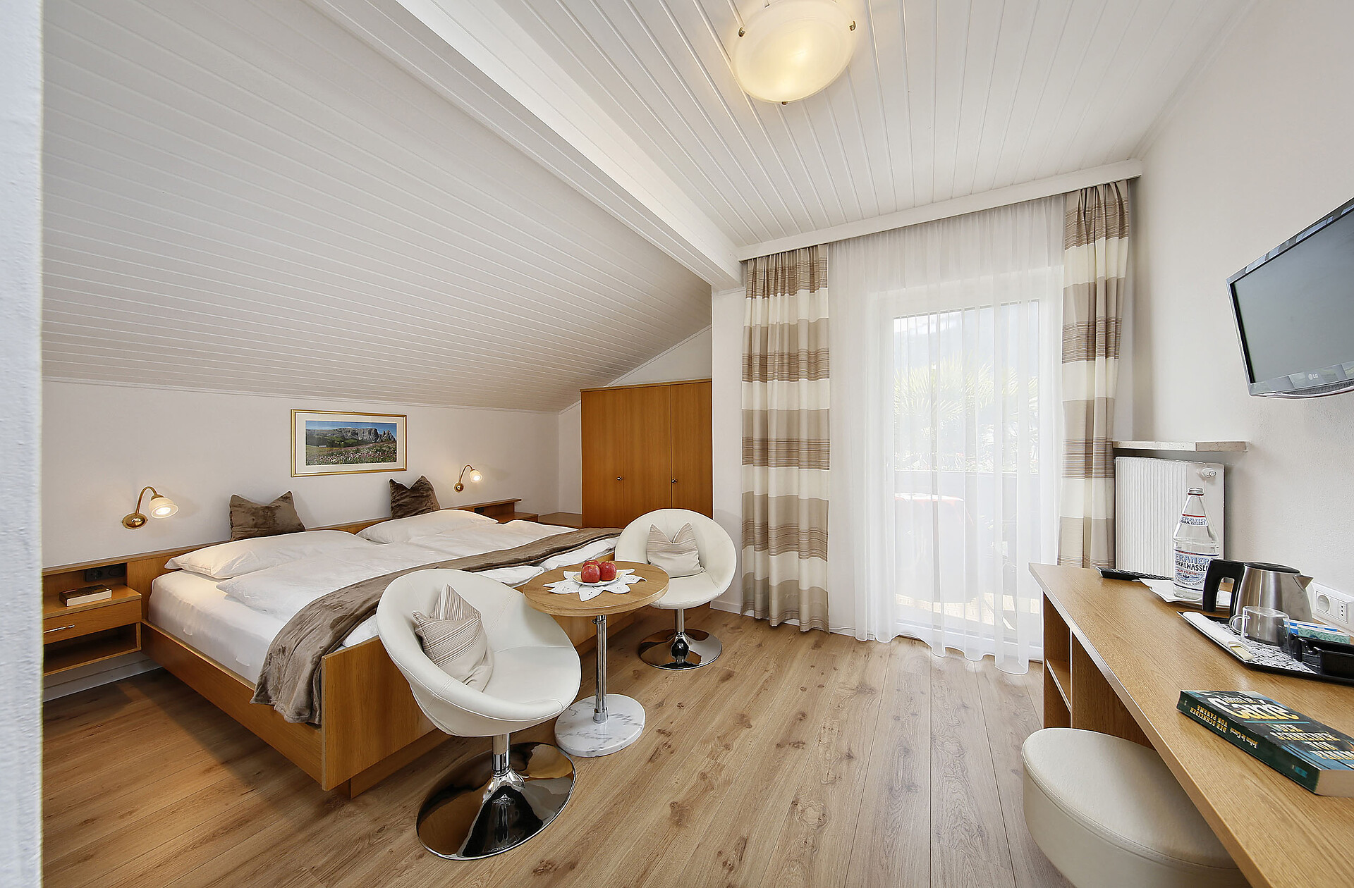 Double room, Double bed , Extra bed, Balcony, Safe, Tea/Coffee machine, Shower / Bath tub, Hair dryer, TV, WLAN, Main building, Panoramic view