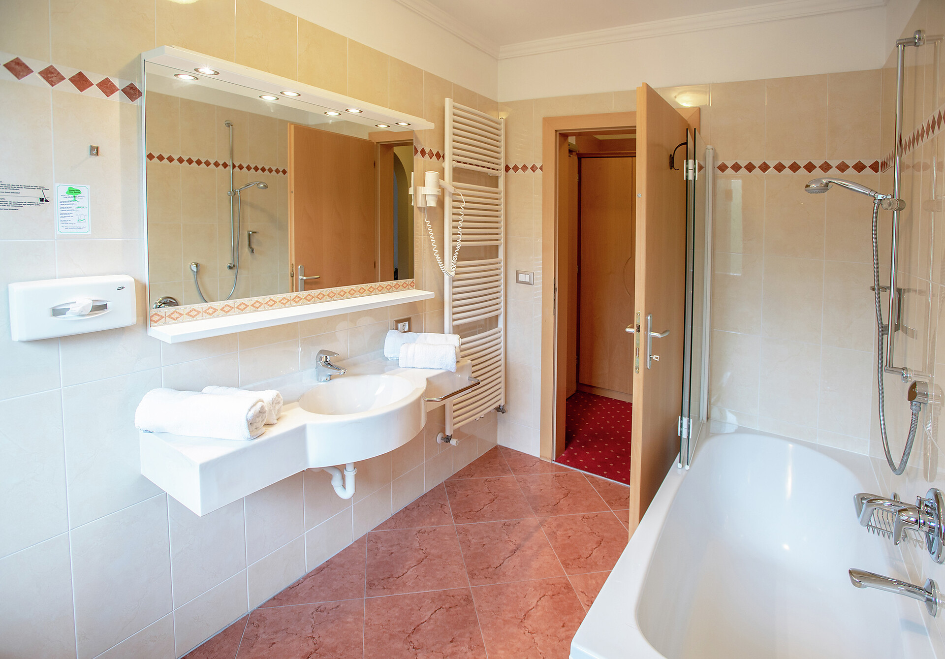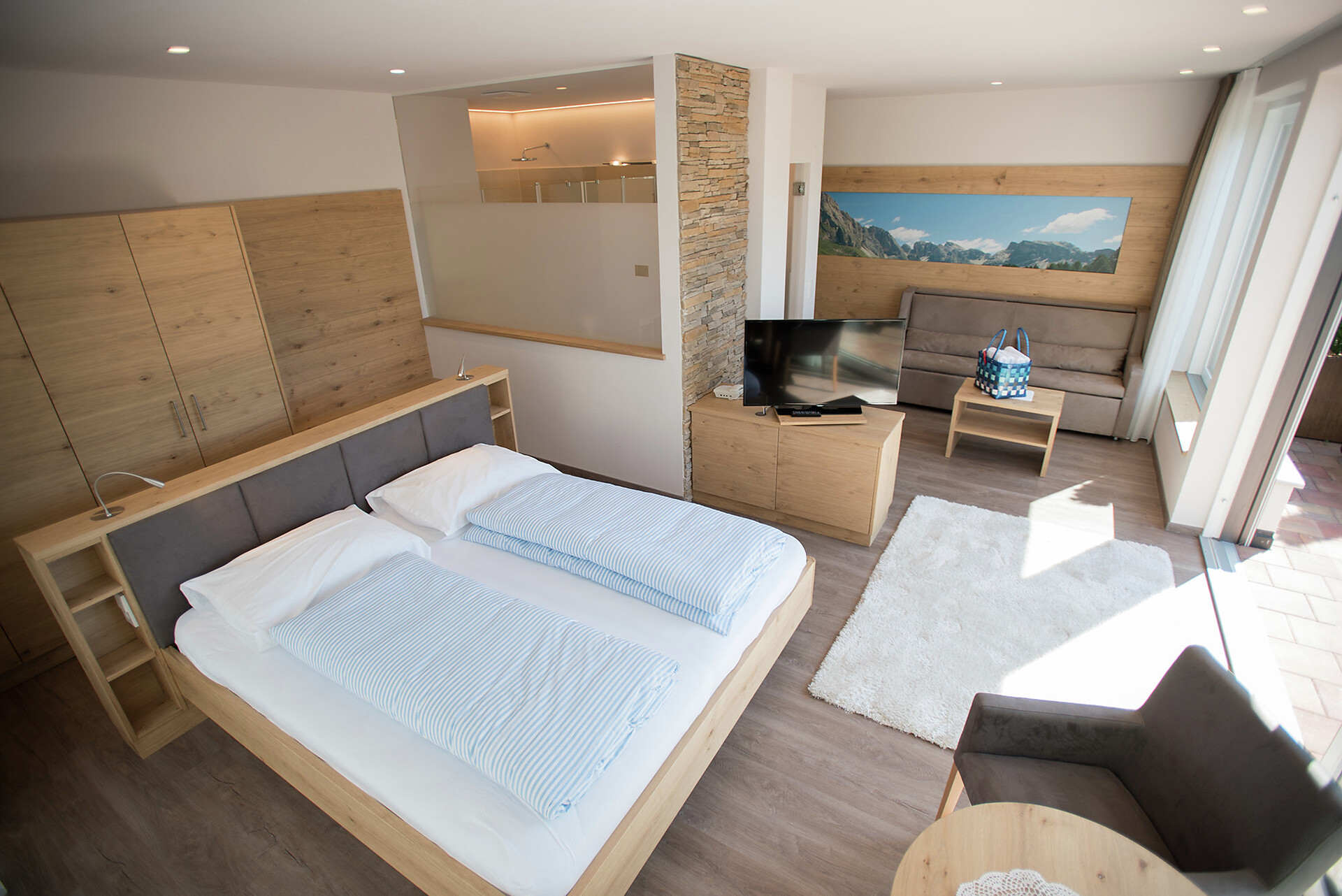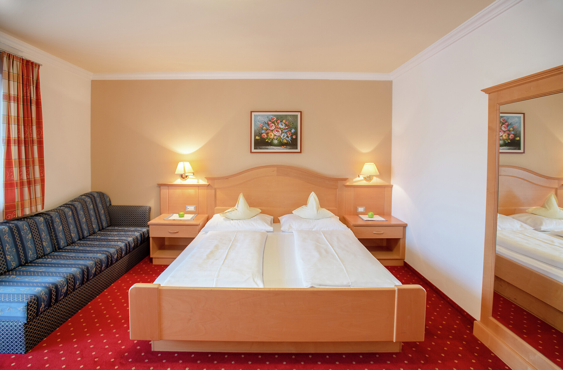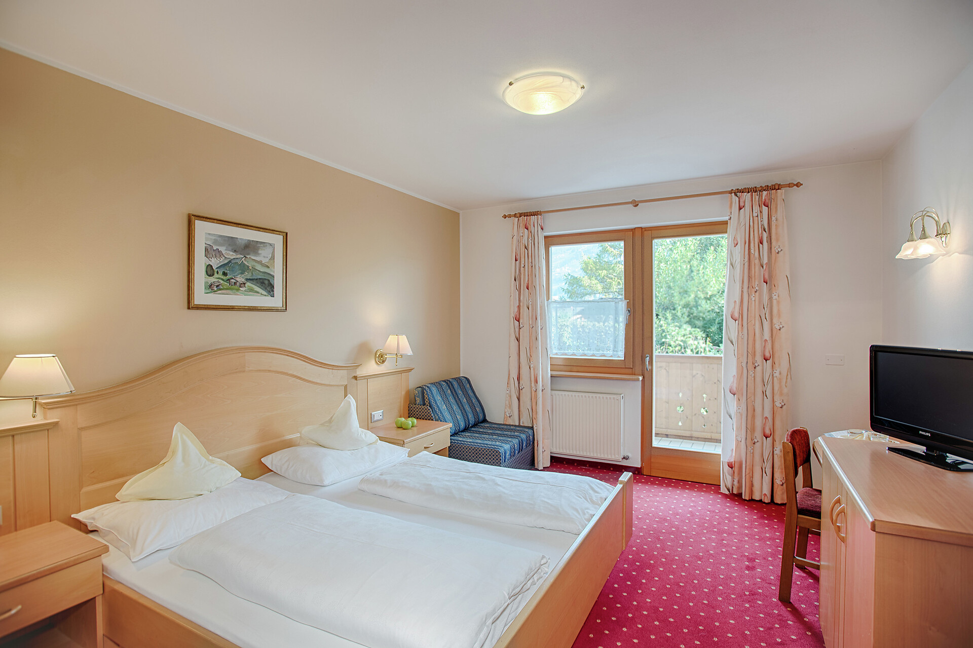 Double room type B - [ca. 26 m²] - for 2 - 3 person double bed, balcony, seating area, sofa bed, bathroom with shower, toilet and hairdryer, free Wi-Fi, telephone, safe and satellite TV. An extra bed can also be added to the type “B” double room.