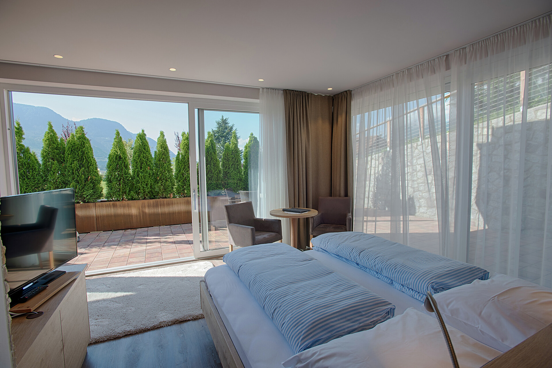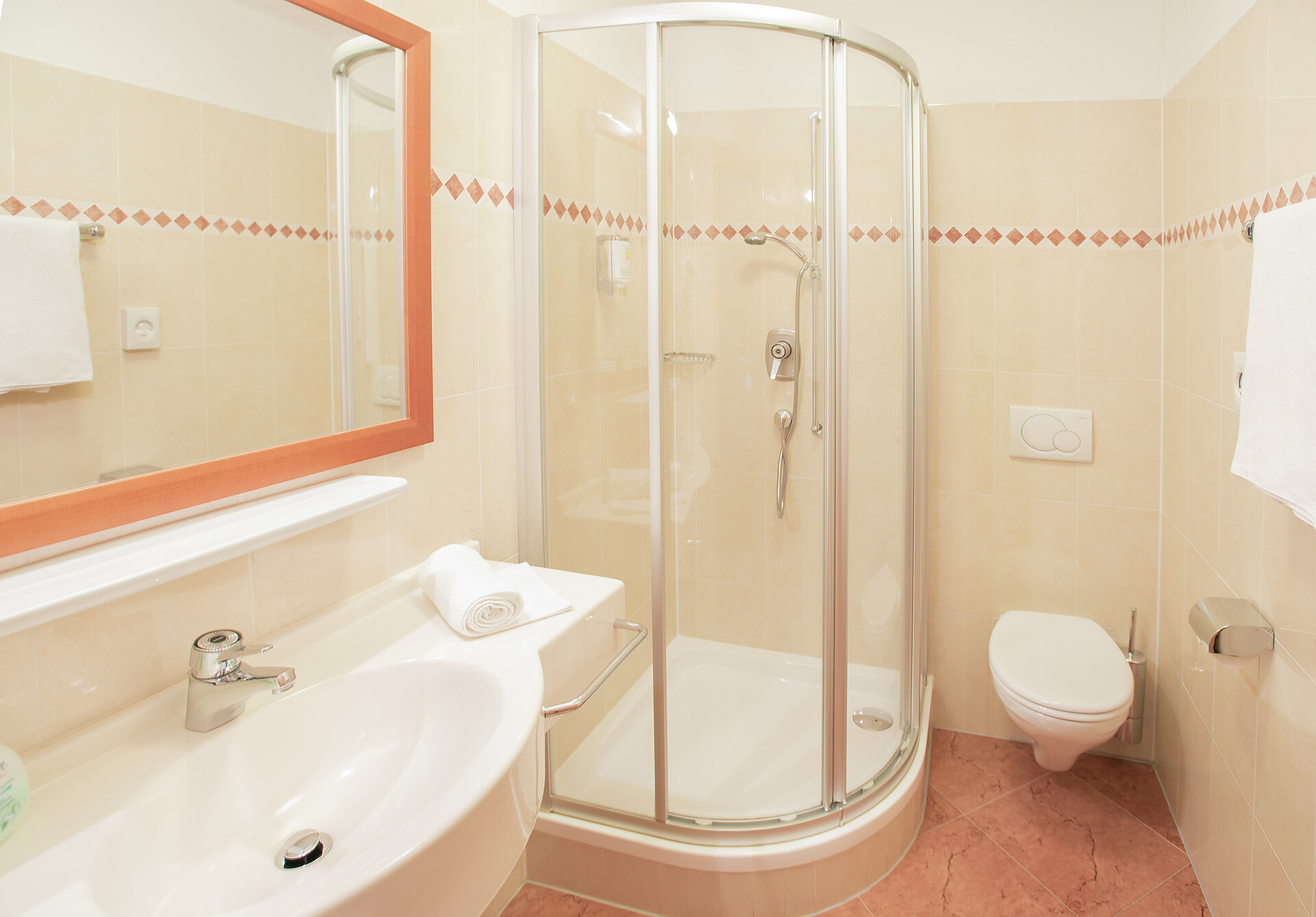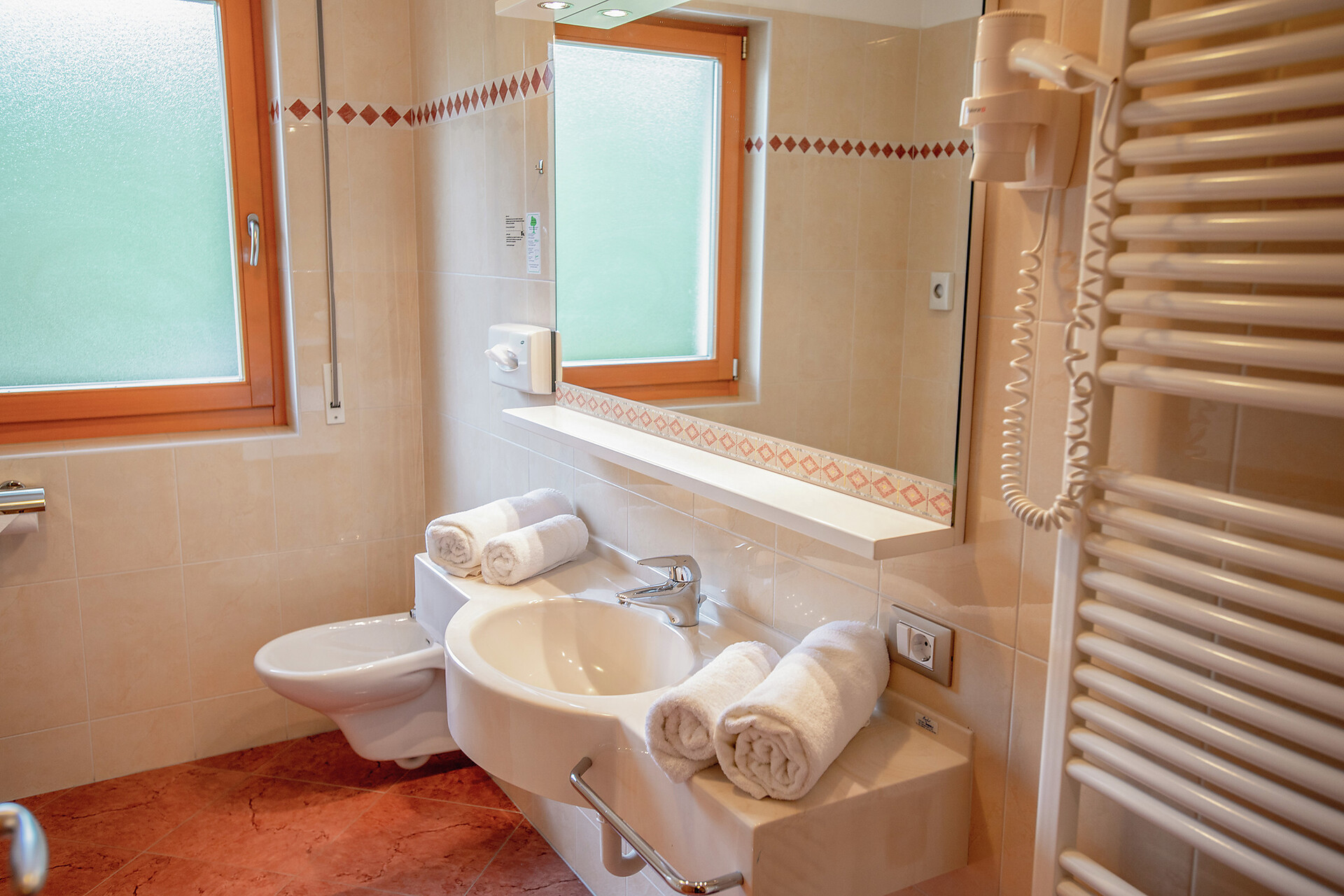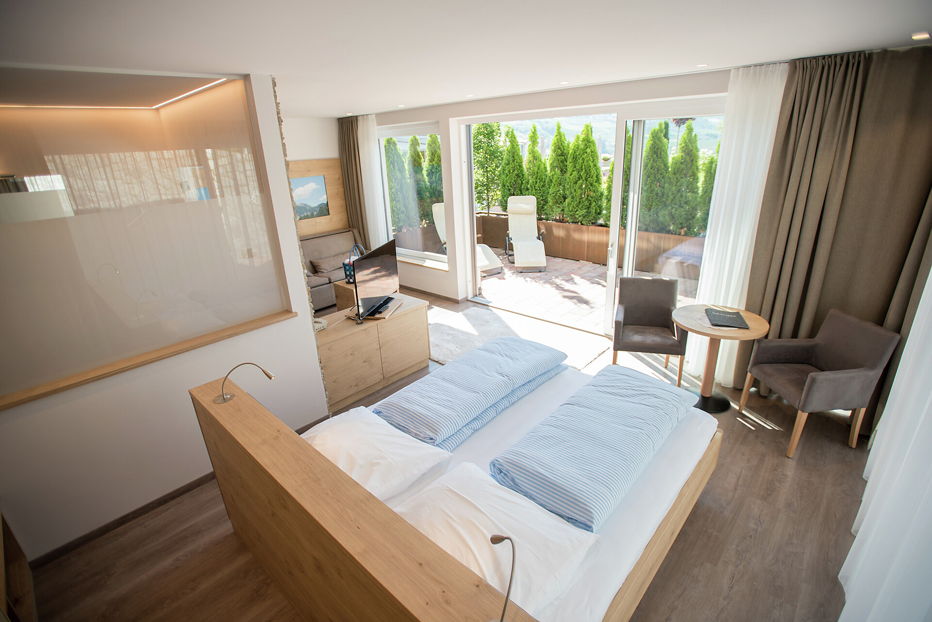 Double room type B - [ca. 26 m²] - for 2 - 3 person double bed, balcony, seating area, sofa bed, bathroom with shower, toilet and hairdryer, free Wi-Fi, telephone, safe and satellite TV. An extra bed can also be added to the type “B” double room.