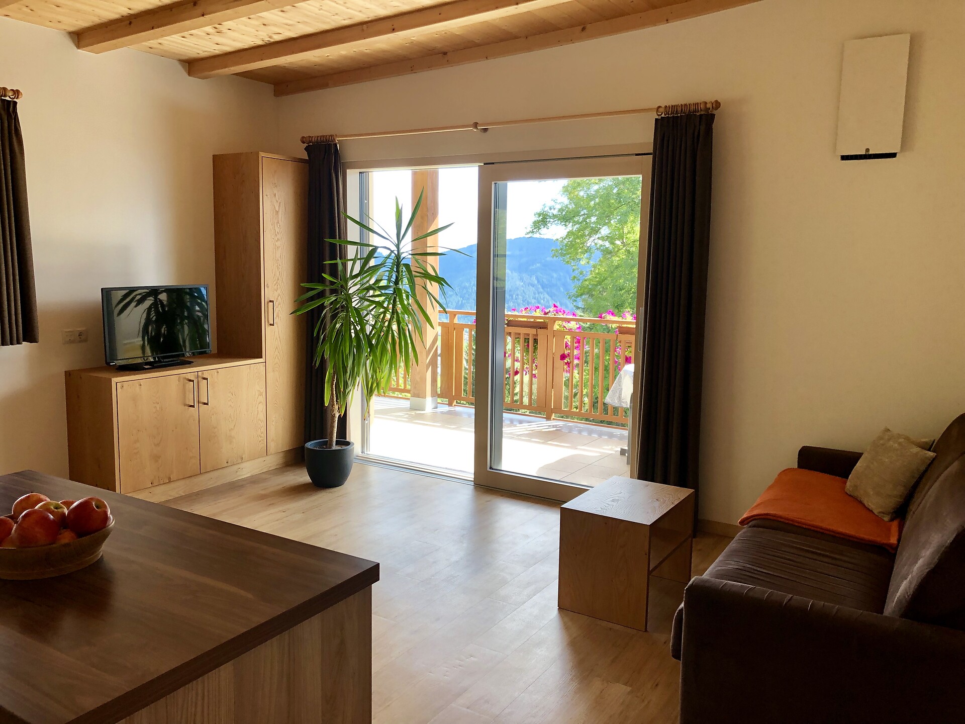 Appartamento Alpenrose con una camera da letto, soggiorno con angolo cottura, doccia/WC/bidet e splendido balcone.
