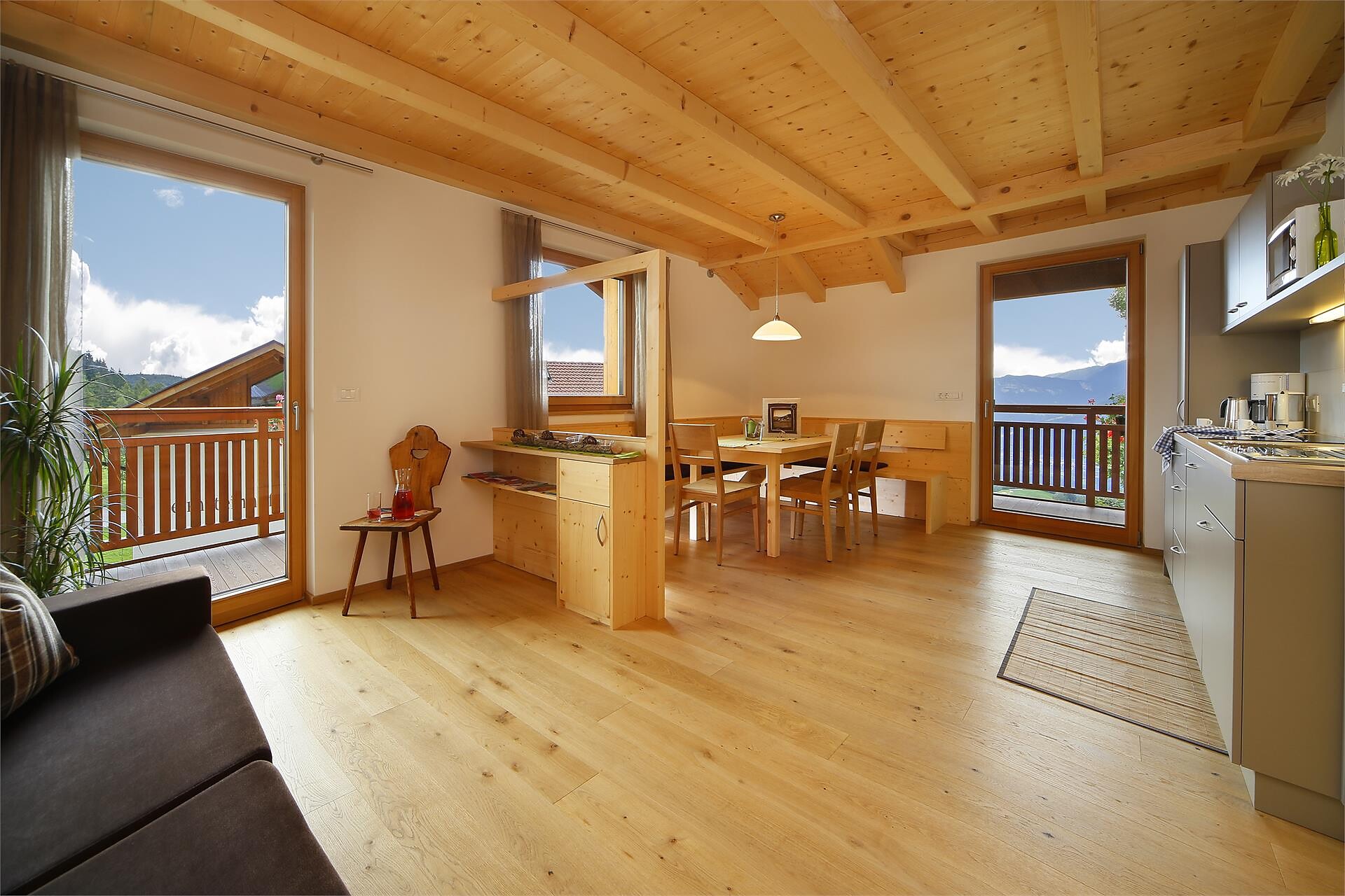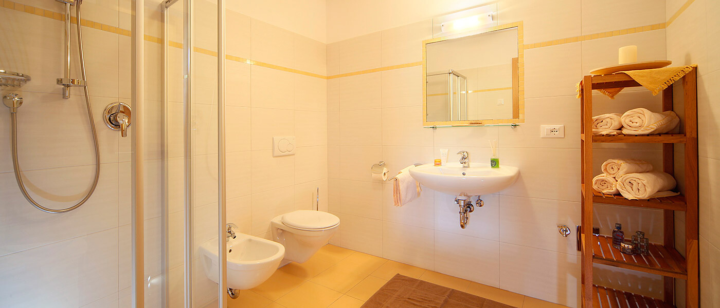 Dispone di 2 appartamenti accessibili anche a persone con disabilità. L’appartamento rilevato si trova a circa 50 m di distanza dal cortile dove è possibile parcheggiare l’auto ed è raggiungibile tramite percorso in salita (pendenza 16%). All’interno, bagno, camera matrimoniale, soggiorno con uso cucina, balcone e terrazza sono accessibili senza difficoltà (bagno senza attrezzature di sostegno); soppalco inaccessibile (a causa delle scale). All’esterno, stalla, giardino e parco giochi sono accessibili con aiuto.