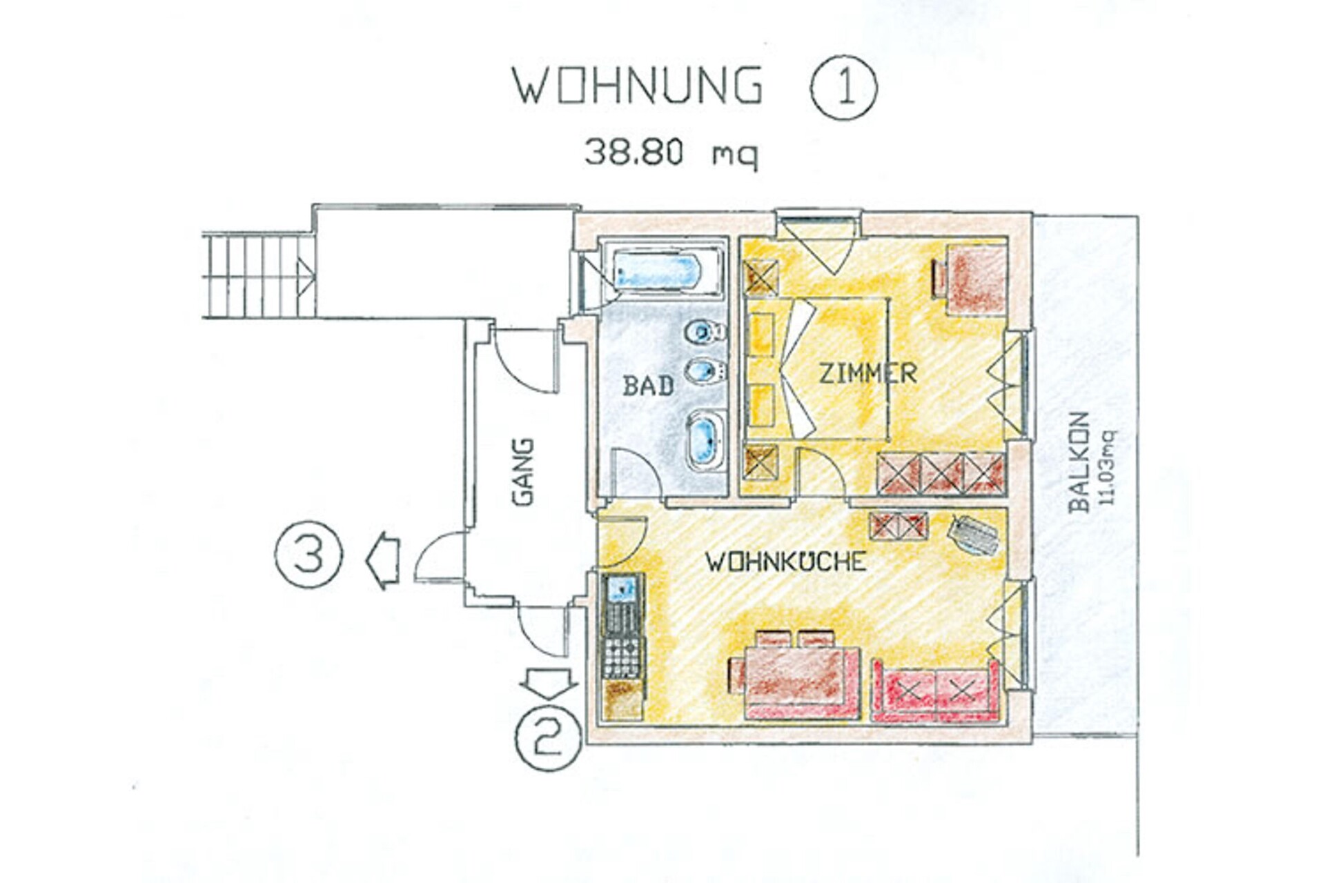 L'appartamento é composto da una cucina abitabile, 2 camere matrimoniali, 2 bagni con doccia e balconeGli appartamenti sono dotati di angolo cottura con bollitore, forno a microonde, macchina per il caffè, comodi posti per sedere, TV satellitare, cassaforte, bagno con doccia o vasca da bagno, bidé, asciugacapelli, bagno e balcone. Tutti i balconi hanno 2 sedie a sdraio, tavolo e sedie. Strofinacci, asciugamani, biancheria e stoviglie sono forniti e vengono cambiati a piacere.