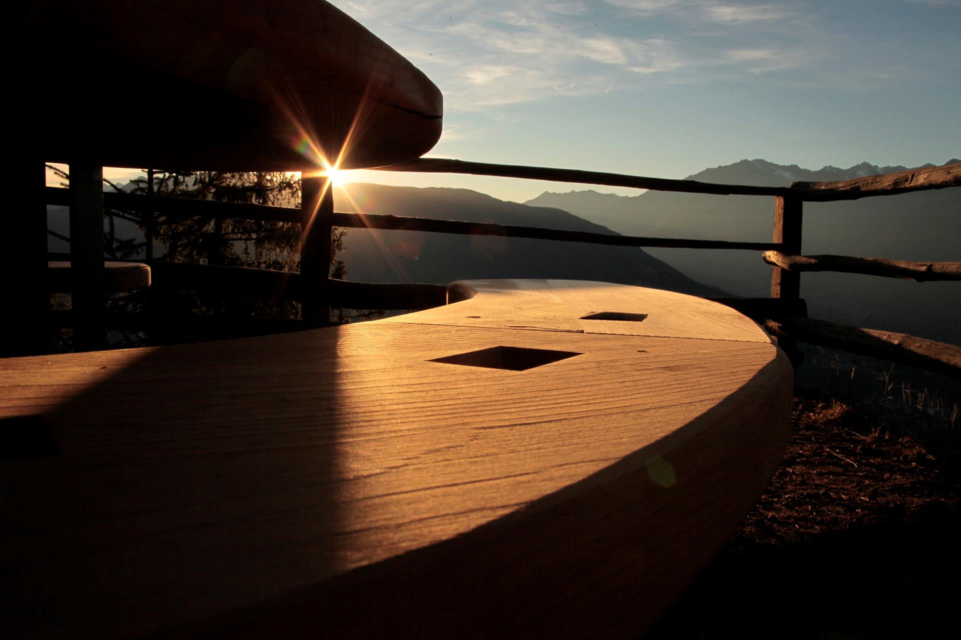 Cinque aree di sosta di nuova concezione invitano a godersi consapevolmente il silenzio della natura, la vista sull'ampio panorama e piccoli momenti di tranquillità. Le nuove aree di sosta sono più di una semplice infrastruttura: sono l'espressione di un legame vivo tra paesaggio, artigianato e comunità.