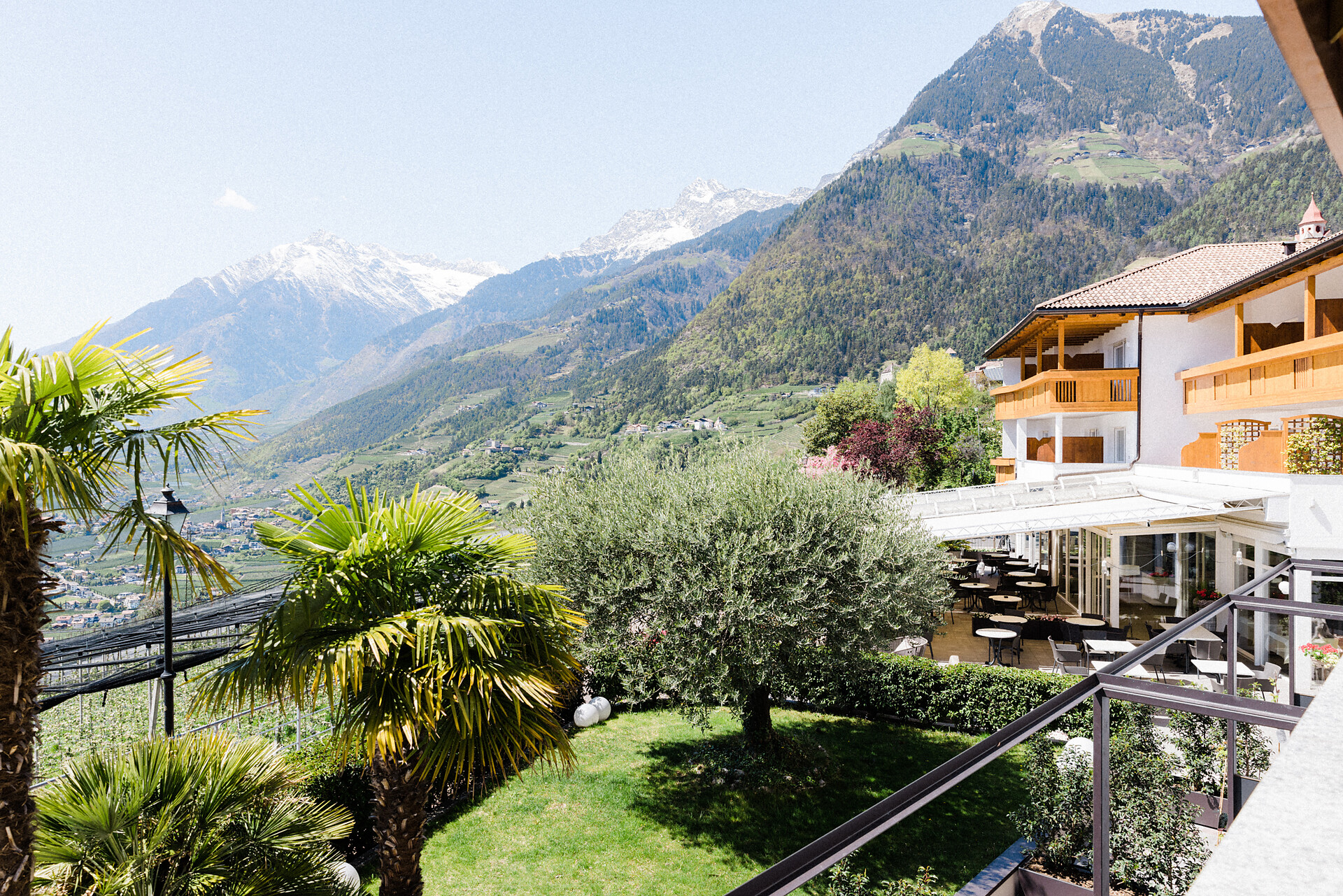 La magnifica posizione del nostro hotel, con vista sulla città termale di Merano, circondata da frutteti e vigneti, centrale e allo stesso tempo tranquilla, vi rapisce portandovi in un rilassante paradiso delle vacanze.