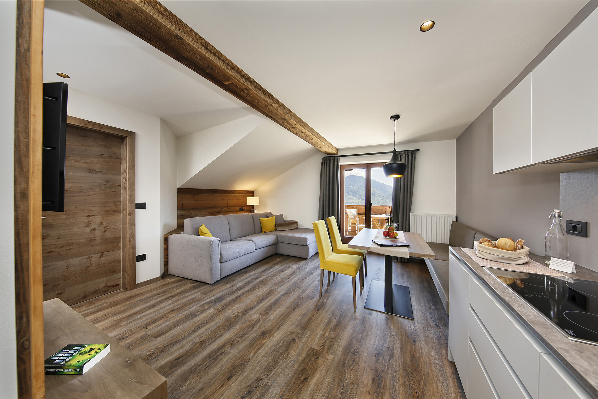 Letto matrimoniale, Letto a castello, Divano letto, Balcone, Camera antiallergica , Soggiorno separato, Biancheria da letto disponibile, Cassaforte, Appartamento non fumatori, Cucina abitabile, Macchina da caffè, Lavastoviglie, Piano cottura elettrico, Forno a microonde, Stoviglie, Piano cottura, Scaldaacqua, Doccia / bagno, Bidet, Fon, Asciugamani, TV, TV satellitare/via cavo, WLAN, Pulizia su richiesta, Pulizia finale inclusa, Edificio principale, Vista panoramica, Lato sud