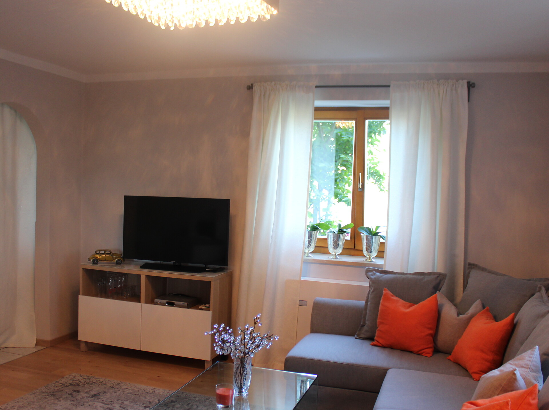 L'appartamento è situato al primo piano e ha una superficie di 75 m². Dispone di due camere da letto con i servizi di bagno, doccia e WC. Ci sono a disposizione un ampio soggiorno, cucina, terrazza e balcone. L'appartamento è munito di aria condizionata e TV satellitare.