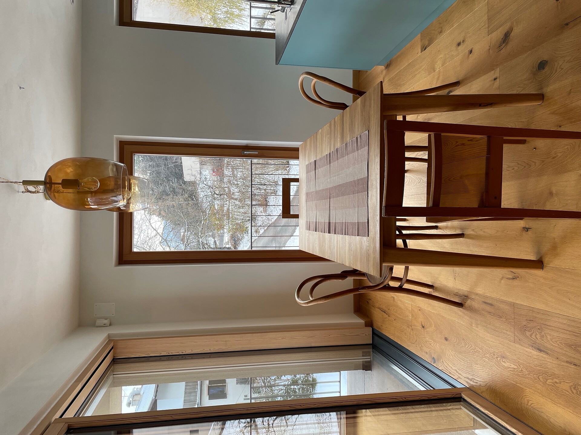 A Voiana, a 600 metri sul livello del mare sopra Lana, si trova il moderno Residence Plattwies, progettato dall'architetto, che ospita quattro appartamenti. L'appartamento al primo piano può essere affittato a breve termine o per un soggiorno di vacanza più lungo. La costruzione di alta qualità come casa clima è stata studiata nei minimi dettagli per massimizzare il comfort abitativo. Grande importanza è stata data all'uso di materiali da costruzione ecologici. L'esterno della casa è caratterizzato da colori caldi e rilassanti, di colore marrone, e si trova nel mezzo di un ambiente agricolo vicino al margine del bosco con un giardino, alberi da frutto e un piccolo orto.