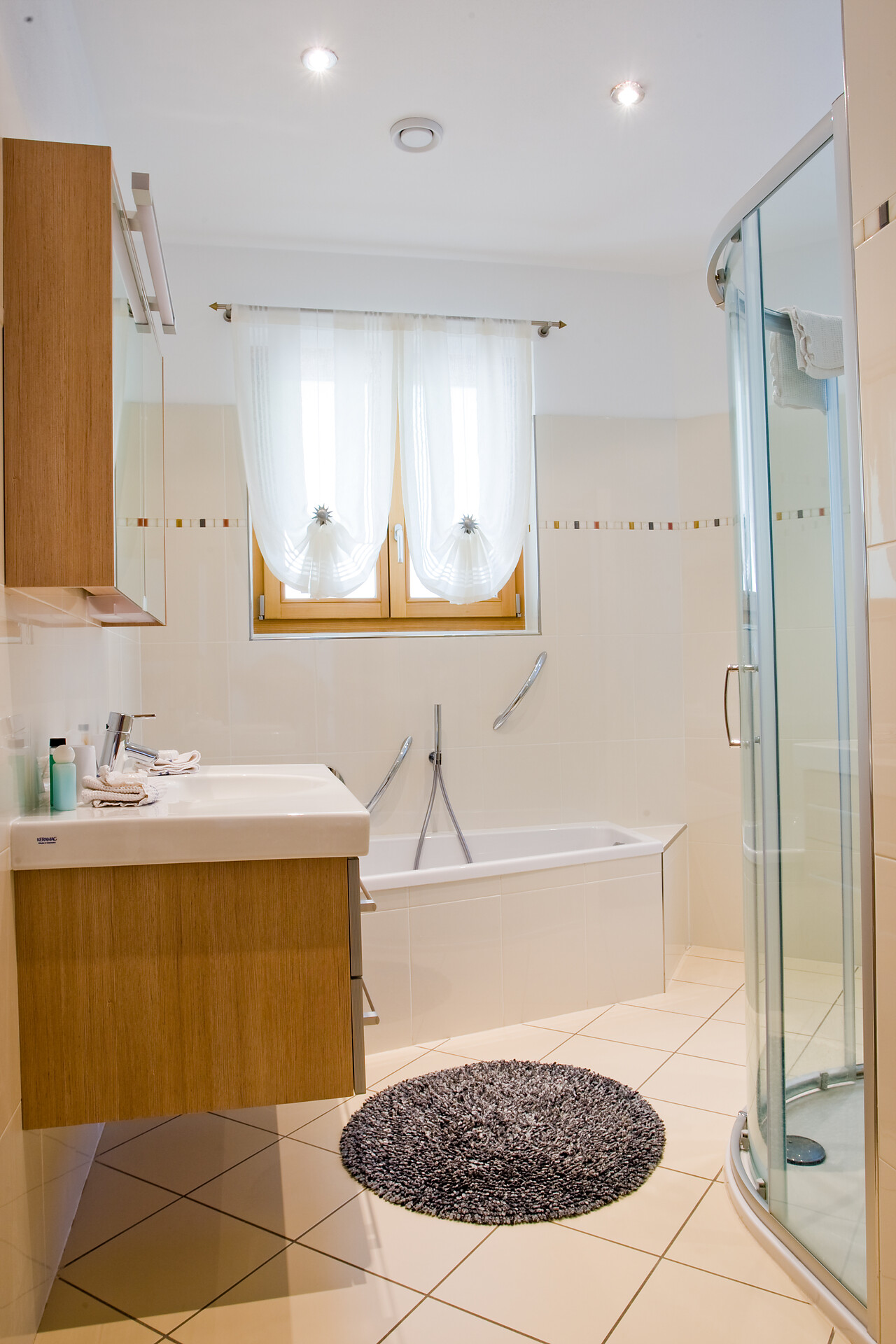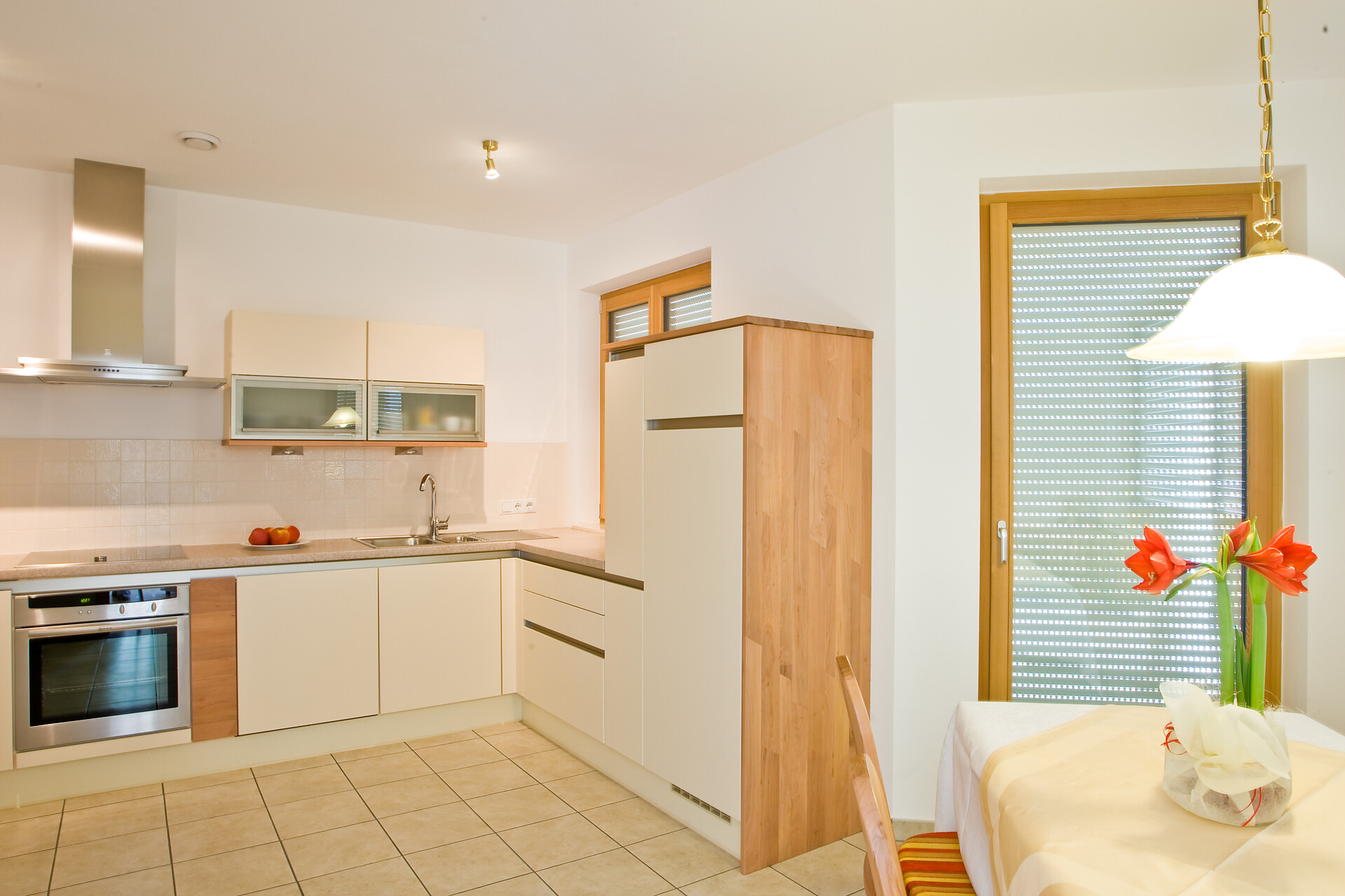 1 camera matrimoniale, cassaforte, mobili di legno di alta qualità, soggiorno con divano letto, TV, WLAN, cucinetta con piano cottura elettrico, frigo, lavastoviglia, bollitore acqua, macchina di caffè, complettamente arredato, 1 bagno con doccia senza barriera, WC, bidet, asciugamani, tutta la biancheria,