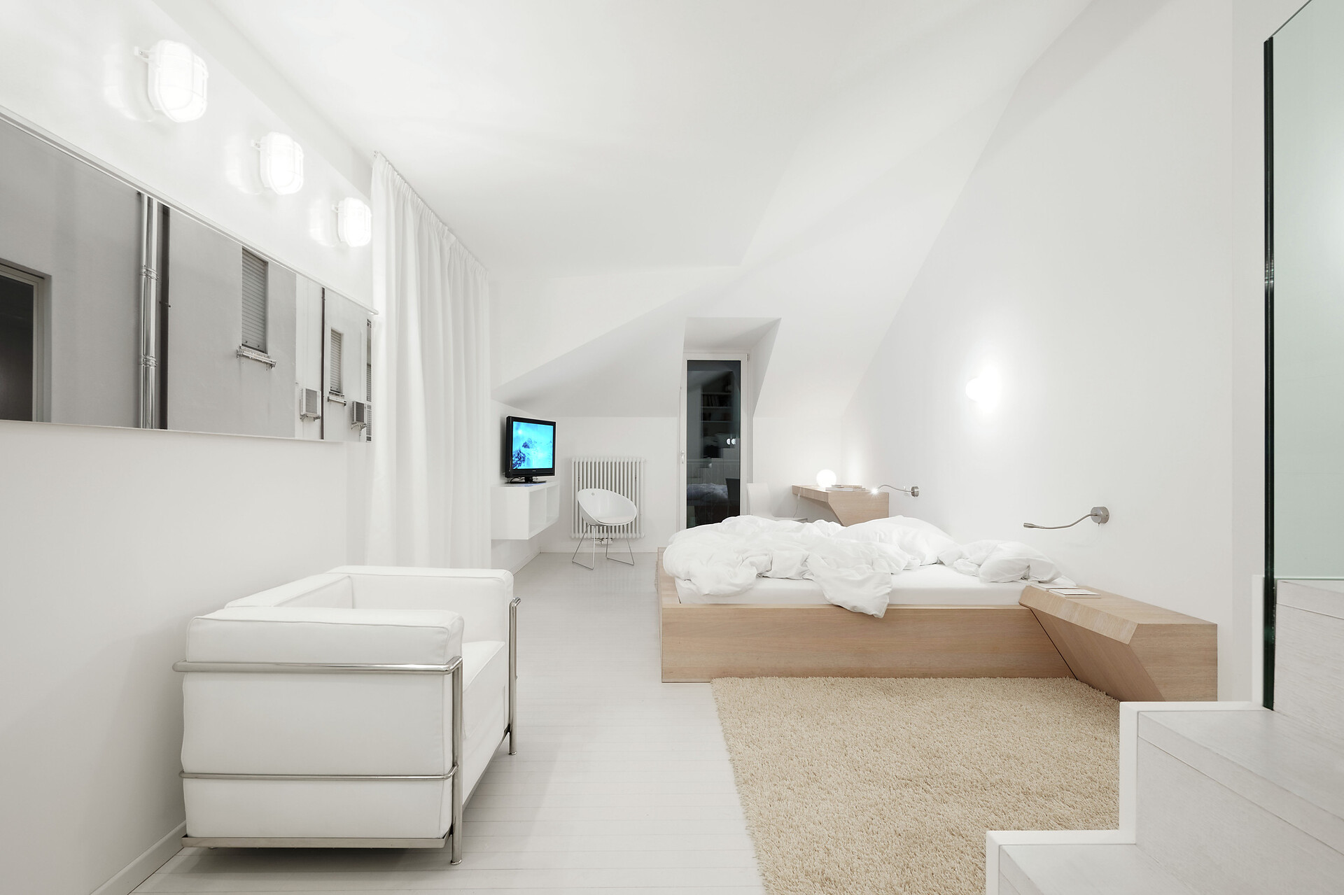 a vostra disposizione una camera open space con letto matrimoniale, divano (letto) scrivania, vasca da bagno, tavolo per truccarsi, lavabo doppio, doccia separata, wc e bidet.