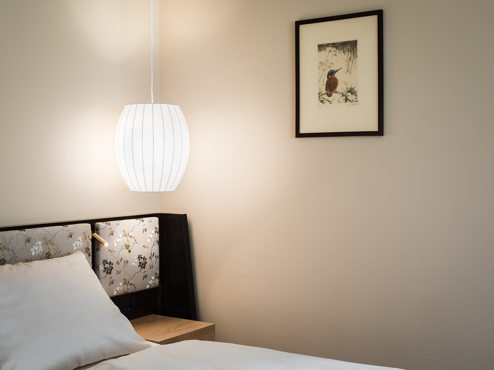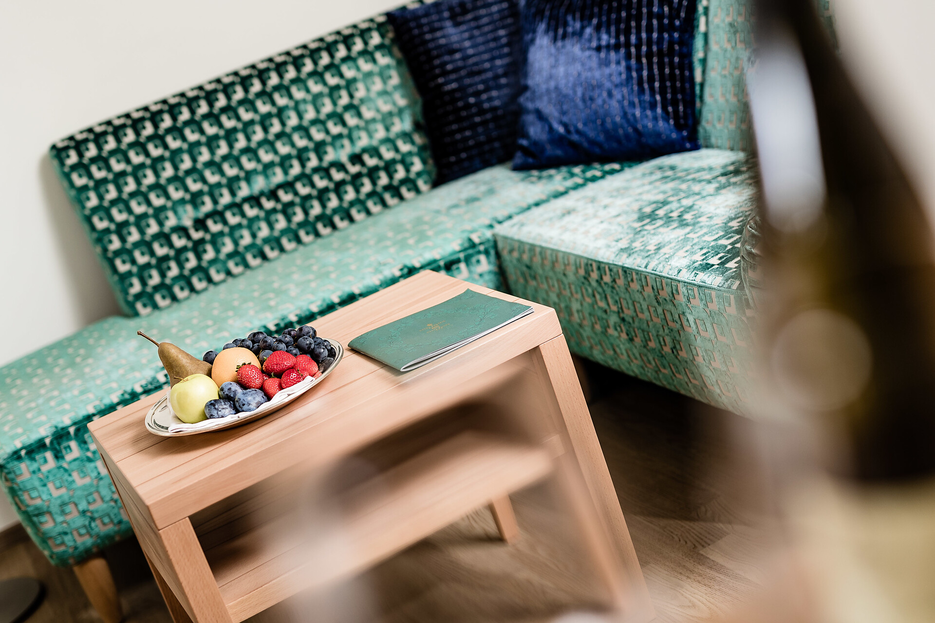 In questa camera il comfort abitativo moderno si combina con un arredamento di alta qualità. Dai tessuti pregiati ai legni selezionati.