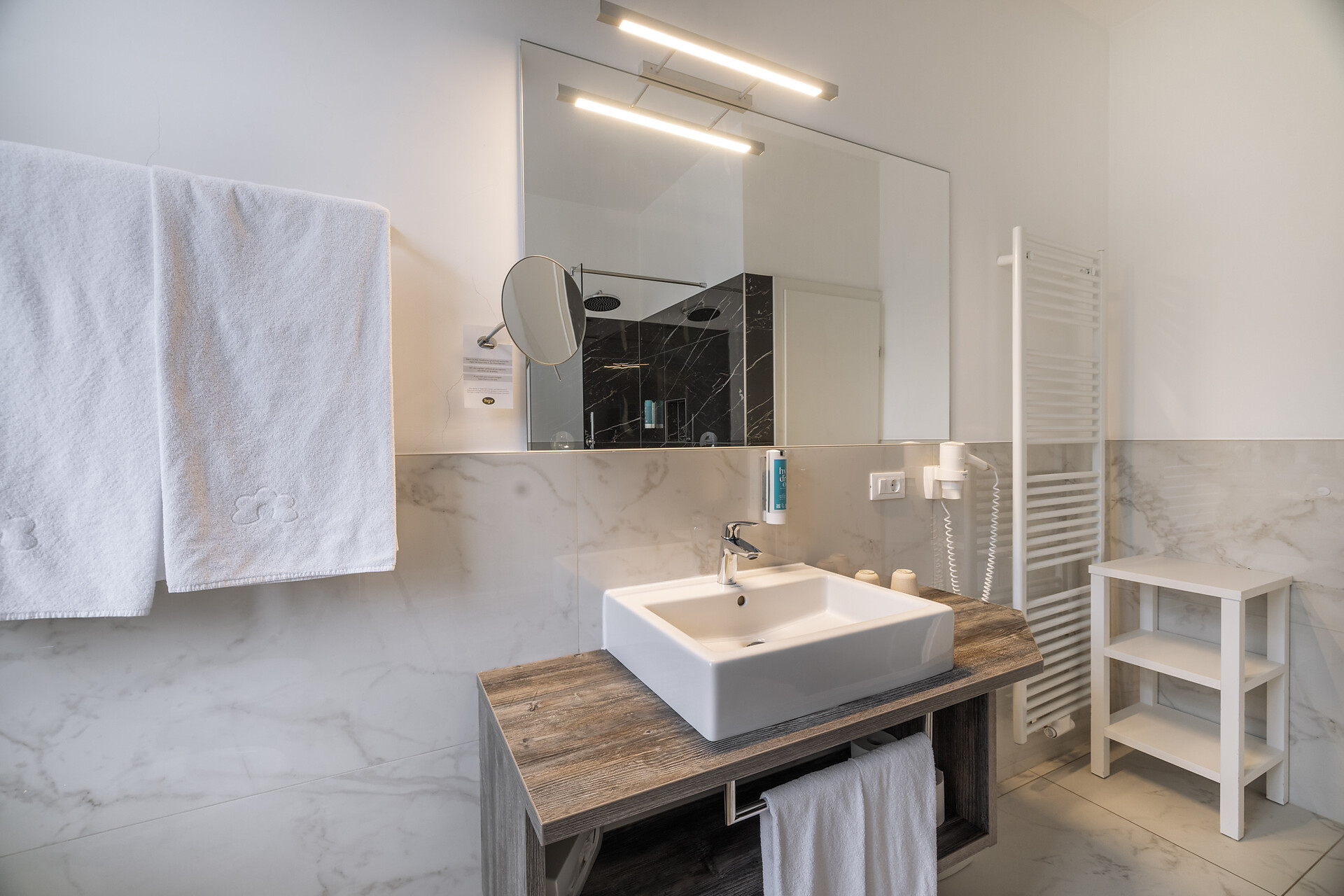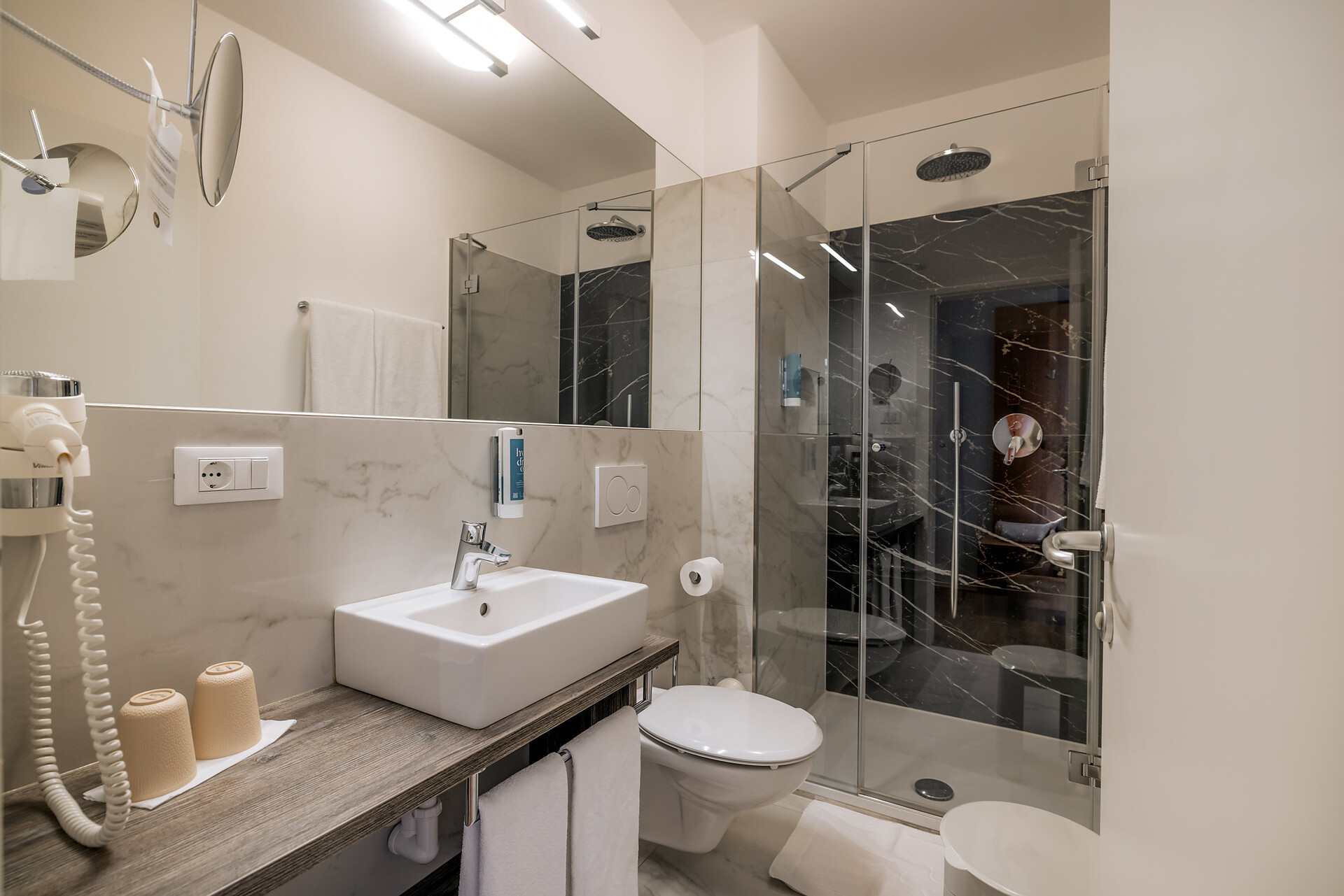 Le camere sono tutte dotate di bagno/doccia, WC, asciugacapelli, W-LAN, telefono e TV satellitare. In parte sono dotate di un balcone e di un impianto di condizionamento. Inoltre ci sono a disposizione aule di congresso, bar & bistro, piscina all'aperto, cappella e nuova area SPA con sauna finlandese, sauna a vapore, idromassaggio, fontana di ghiaccio e sale relax, oltre a una terrazza sul tetto con vista.