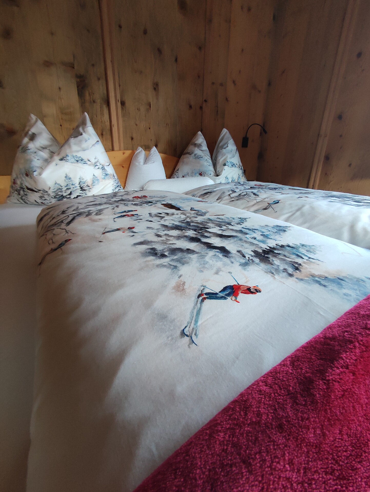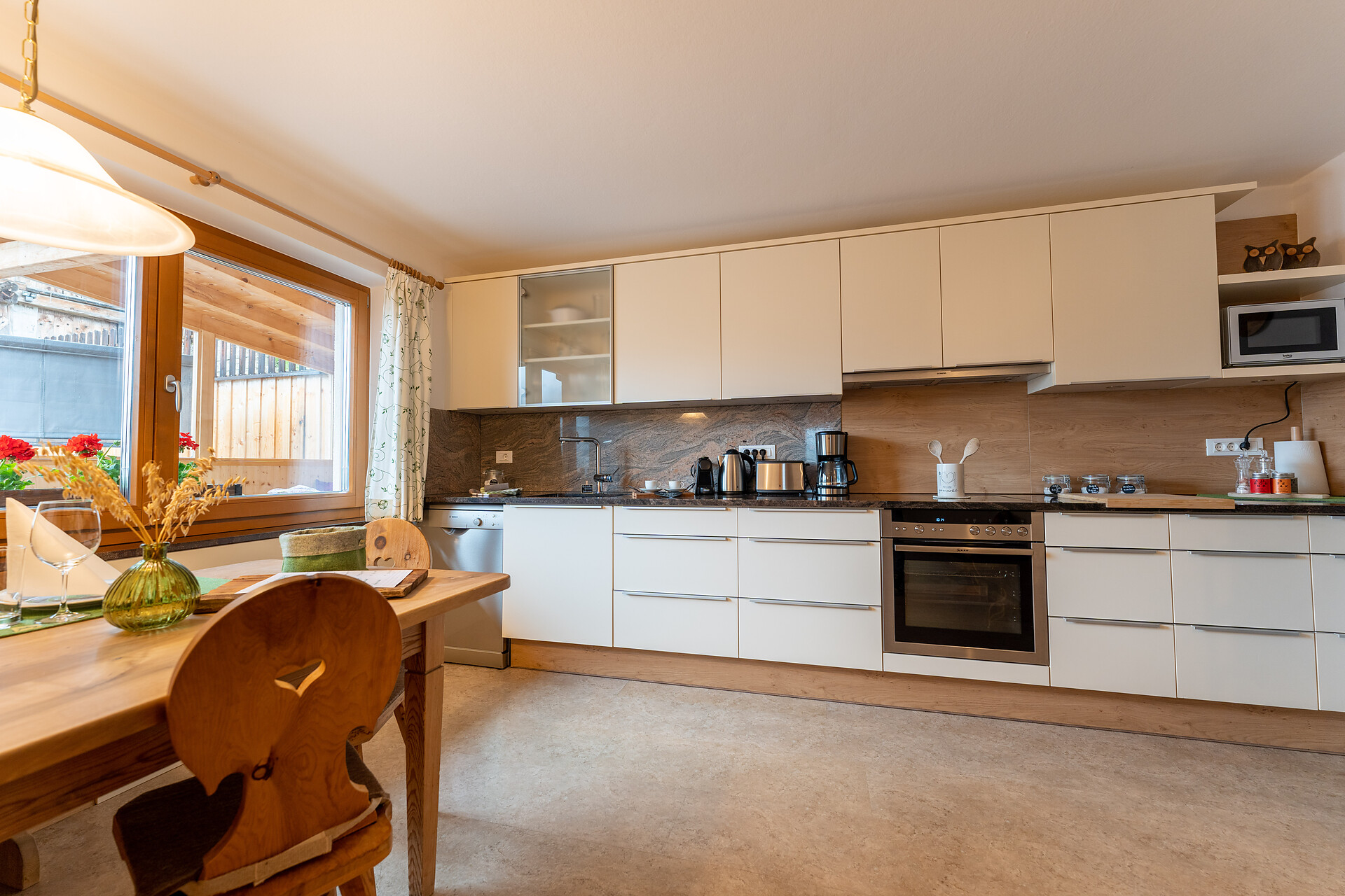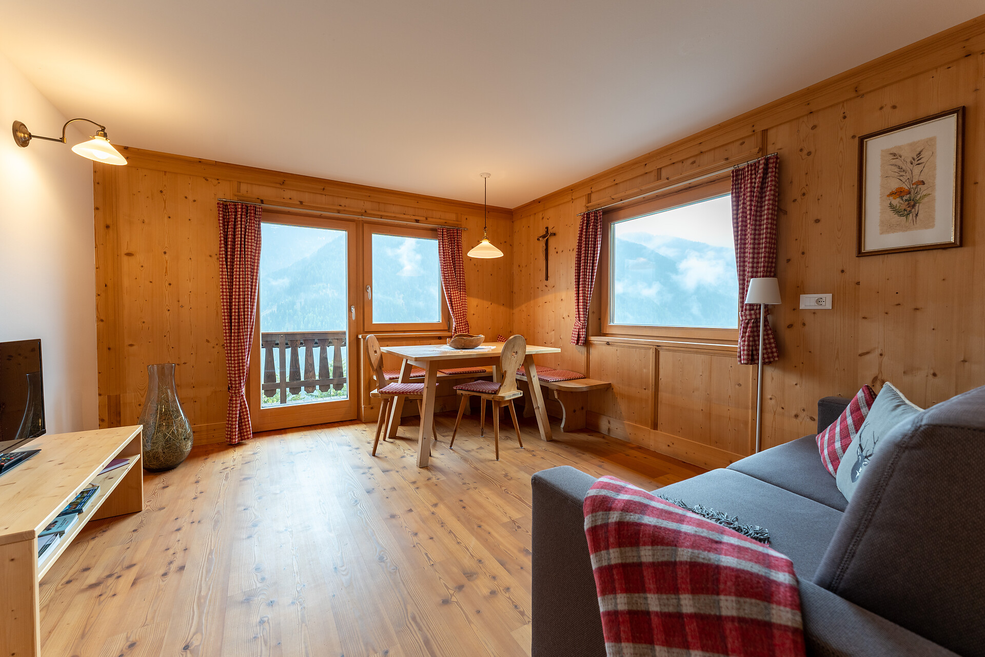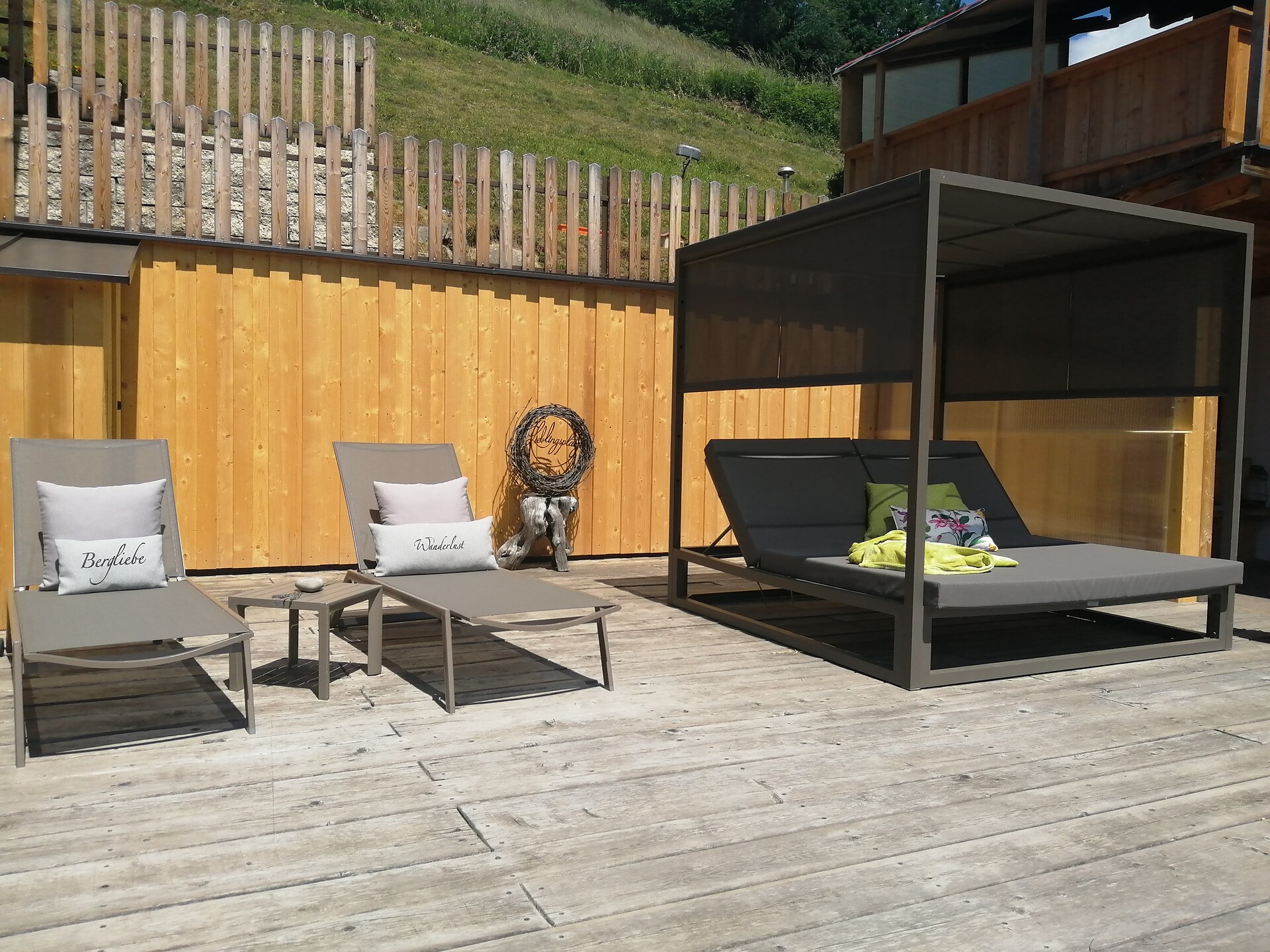 Dotato di 2 camere da letto in stile casa di campagna, bagno moderno con doccia a pioggia, WC diurno, accogliente soggiorno rivestito in legno con divano letto, spaziosa cucina moderna, ampio balcone e terrazza solarium di montagna con sedie a sdraio e mobili da salotto, questo appartamento di ca. 80 m² offre tutti i comfort per una vacanza rilassante in mezzo alla natura. L'arredamento affascinante, i dettagli curati e i mobili in legno naturale creano subito un'atmosfera accogliente in cui ci si sente come a casa. Rilassatevi semplicemente e vivete questa esperienza con noi nella natura.