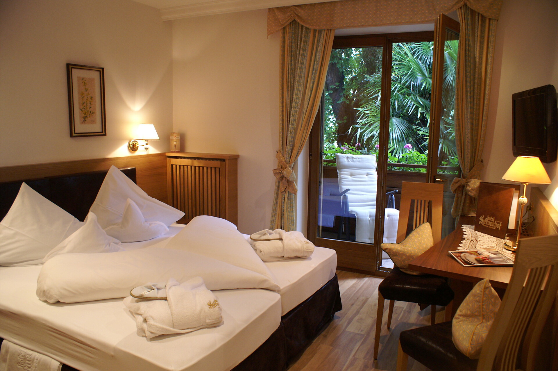 Camera doppia, Letto matrimoniale, Divano letto, Balcone, Aria condizionata, Camera antiallergica , Senza barriere architettoniche, Minibar, Cassaforte, Doccia/bagno, WC separato, Bidet, Fon, Accappatoio, HiFi, TV, TV satellitare/via cavo, WLAN, Edificio principale