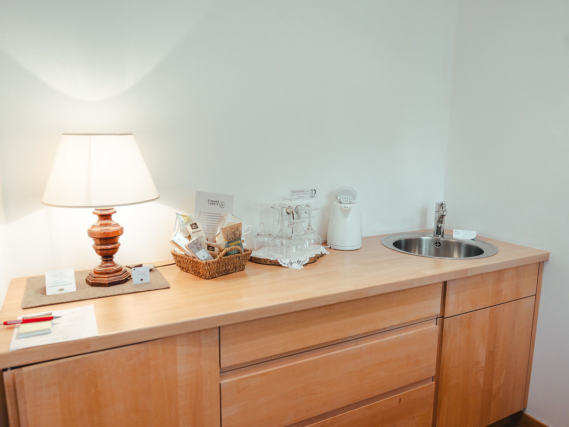 Arredata in legno di tiglio, la piccola camera singola "Tilia" si trova al terzo piano e dispone di una camera con letto singolo, una scrivania, un'area salotto con minibar e un bagno luminoso in pietra naturale. La camera è esposta a nord-est e offre una vista sul paesaggio alpino-mediterraneo di Merano e dintorni. Per gli spuntini pomeridiani o serali, sono disponibili gratuitamente dei piatti di spuntini, e vengono forniti anche asciugamani e accappatoi ad uso gratuito. L'aria condizionata, la TV a schermo piatto e il Wifi gratuito offrono un ulteriore comfort. La camera è particolarmente raccomandata per gli ospiti d'affari e per gli ospiti che desiderano una camera singola gestibile, ma in legno naturale di alta qualità e con dettagli d'arredamento squisiti.