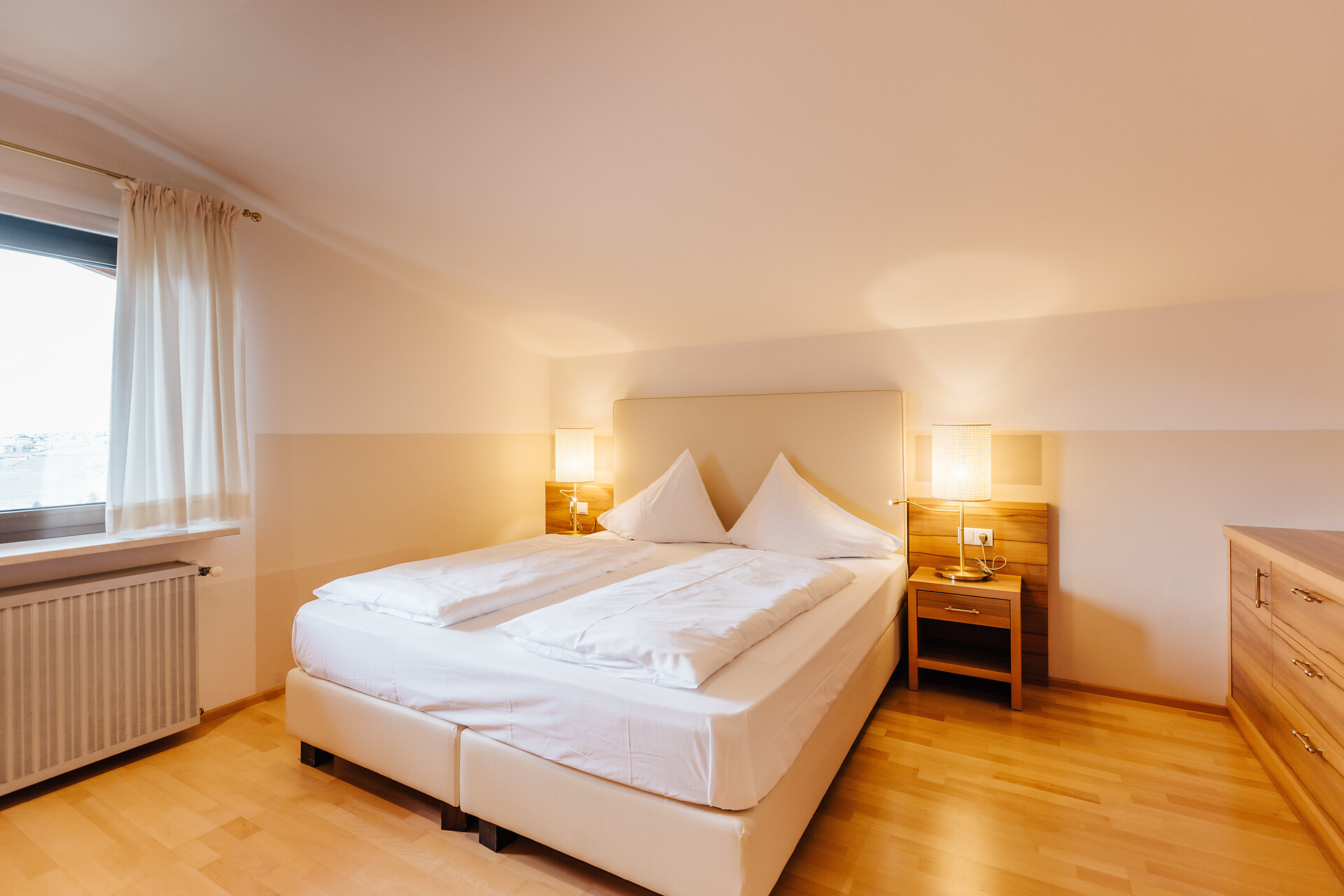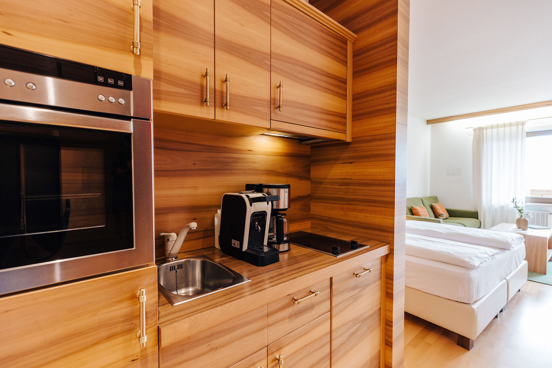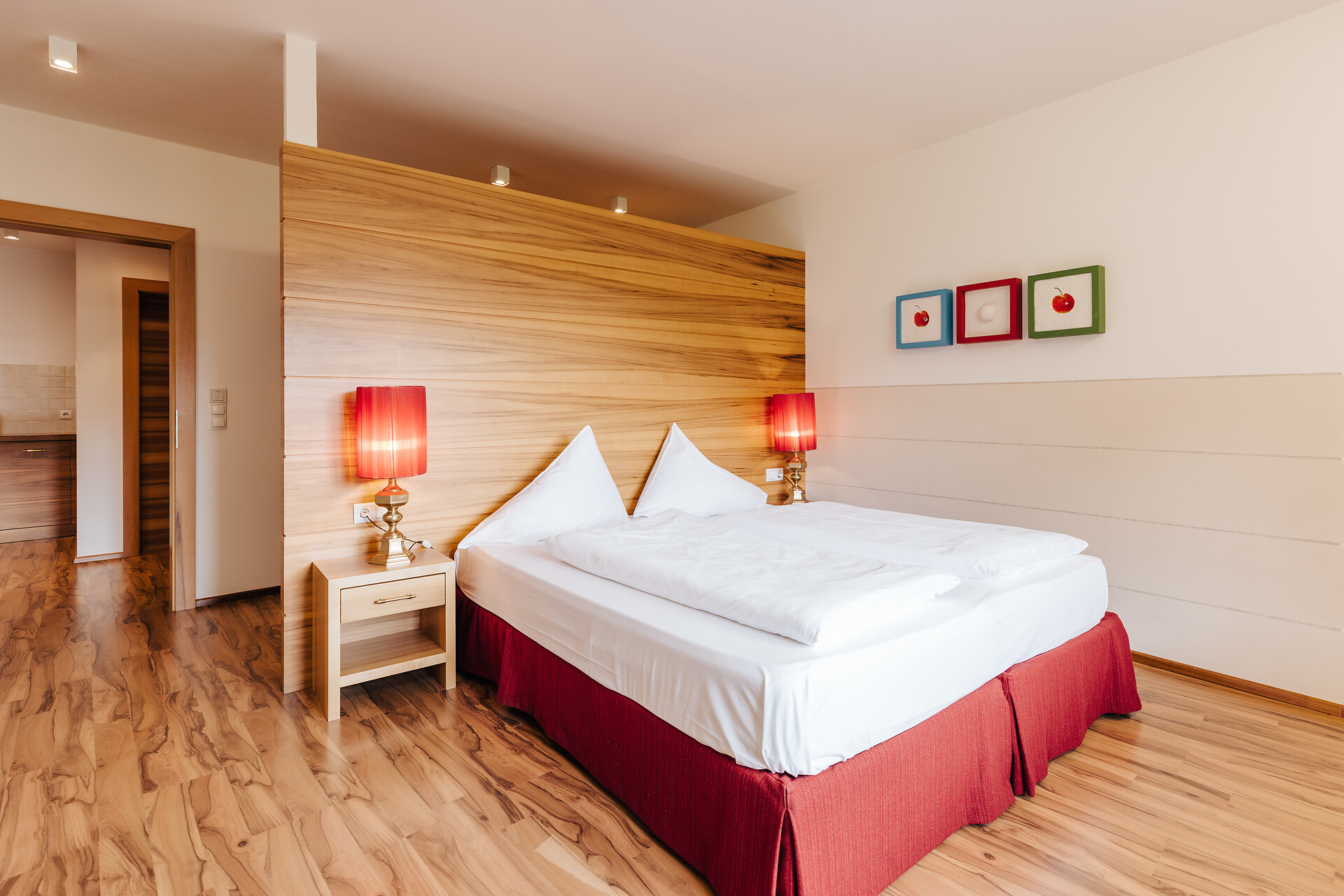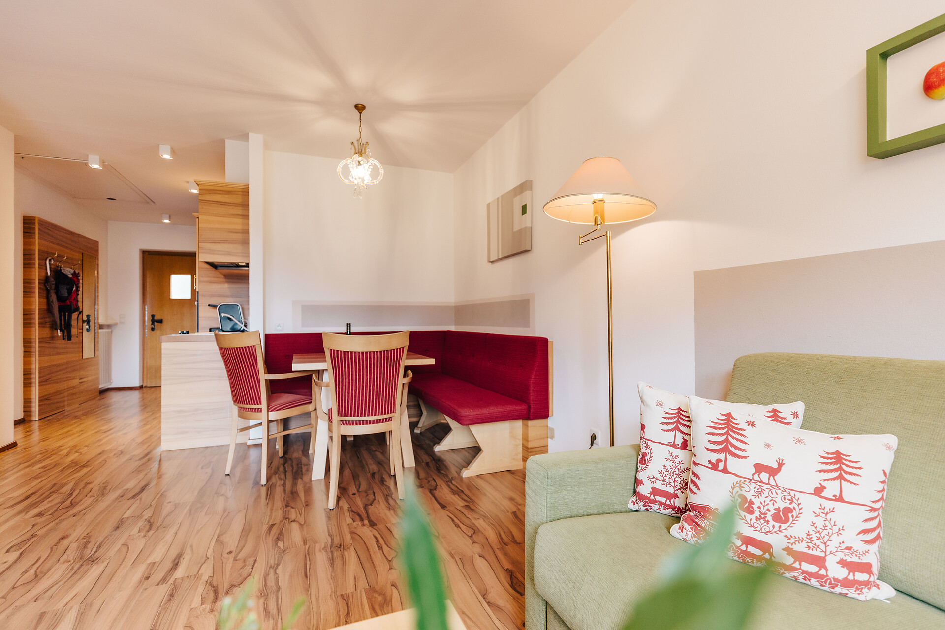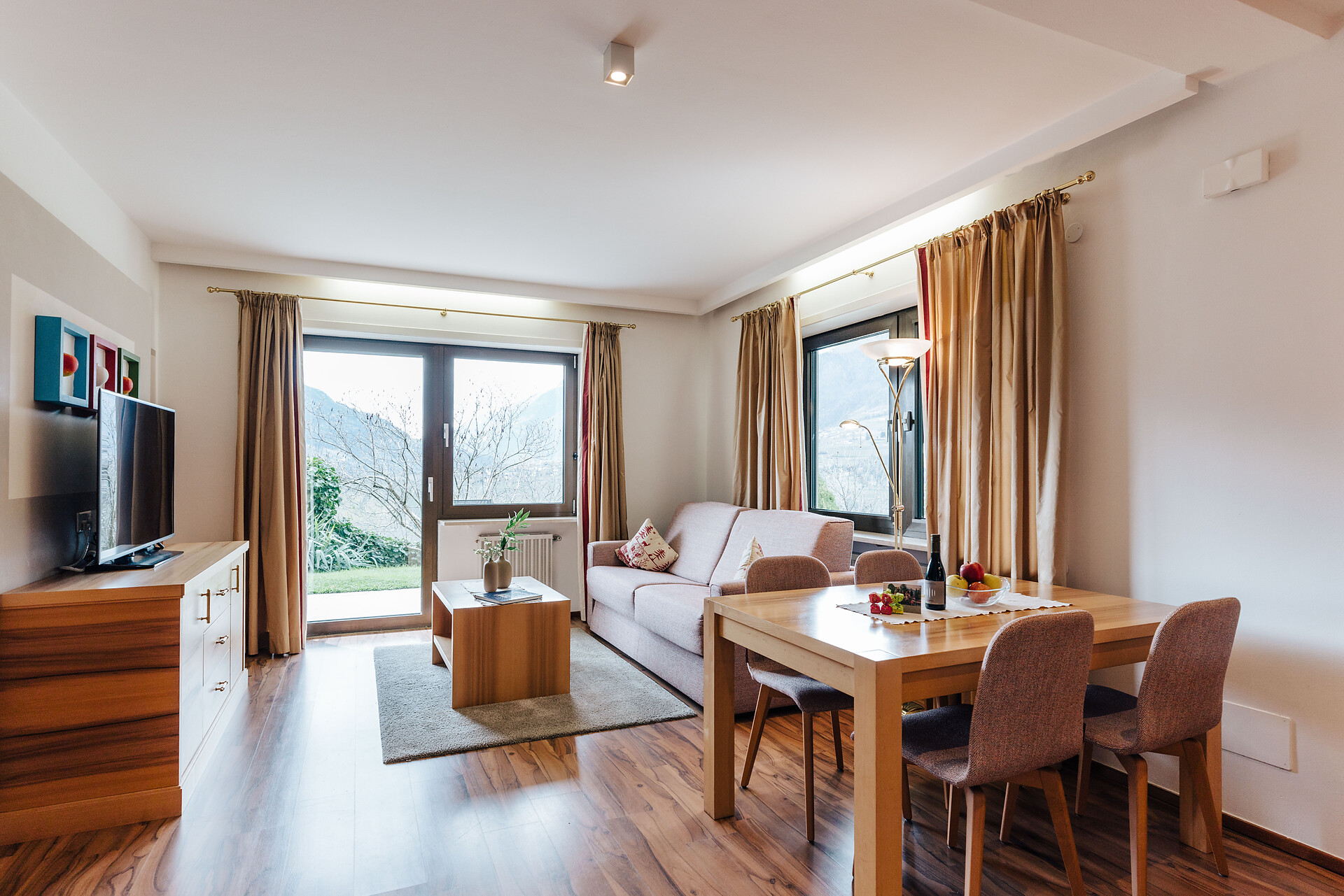 Grande appartamento per quattro persone. L’appartamento Küchelberg dispone su 80 m² di due camere con letti matrimoniali, un soggiorno, una cucina abitabile completamente arredata e un grande bagno con doccia, vasca, bidet e WC separato. La terrazza è il luogo ideale per una piacevole colazione sulle comode sedie a sdraio, si può godere il meraviglioso parco e i dintorni.