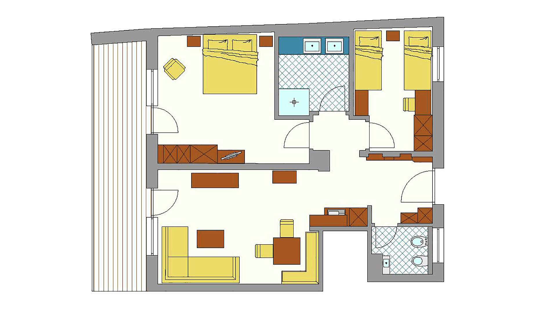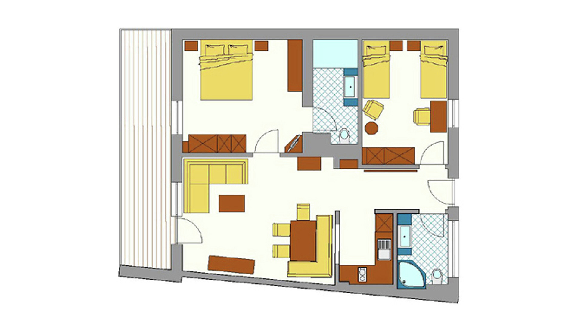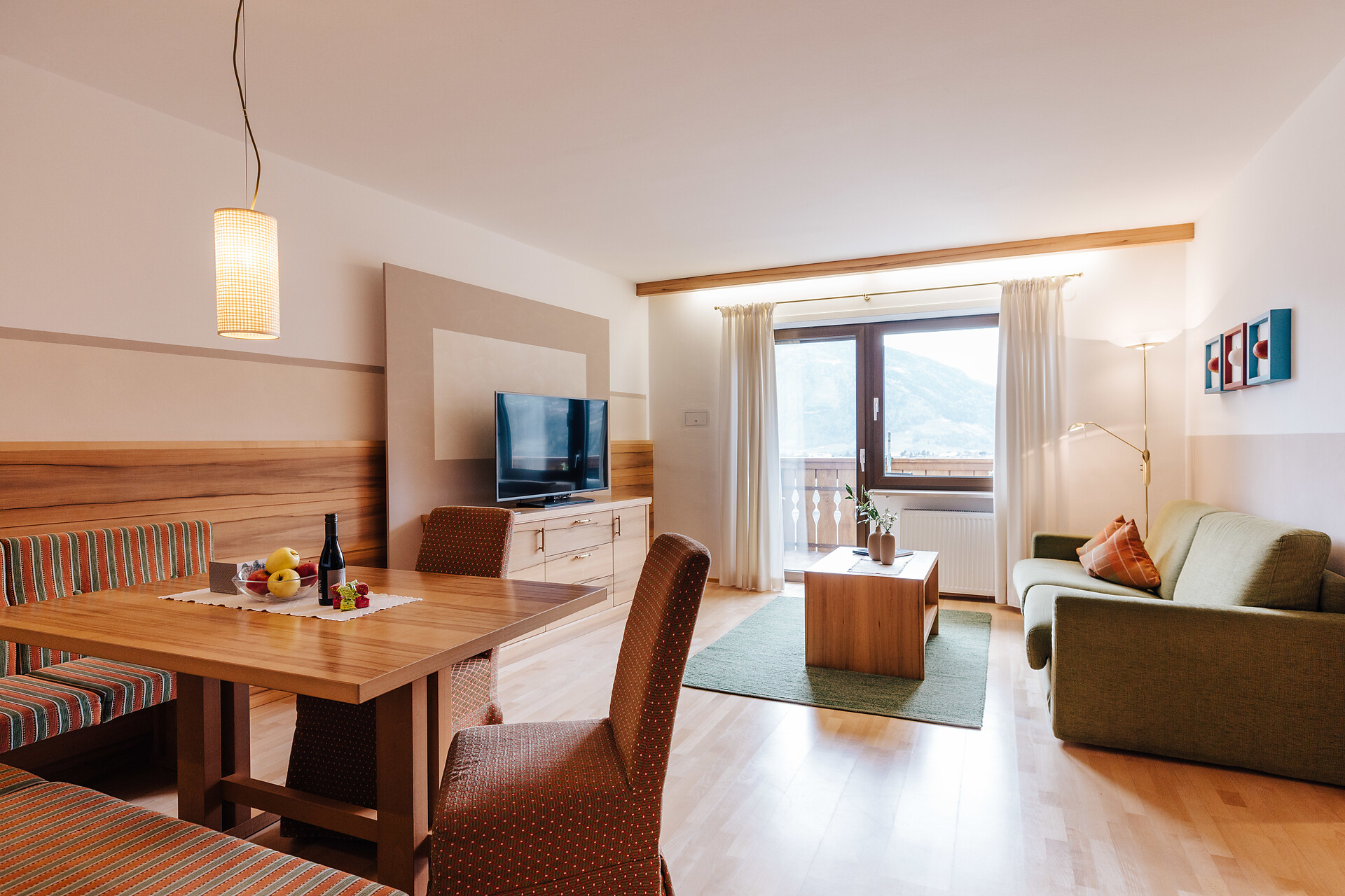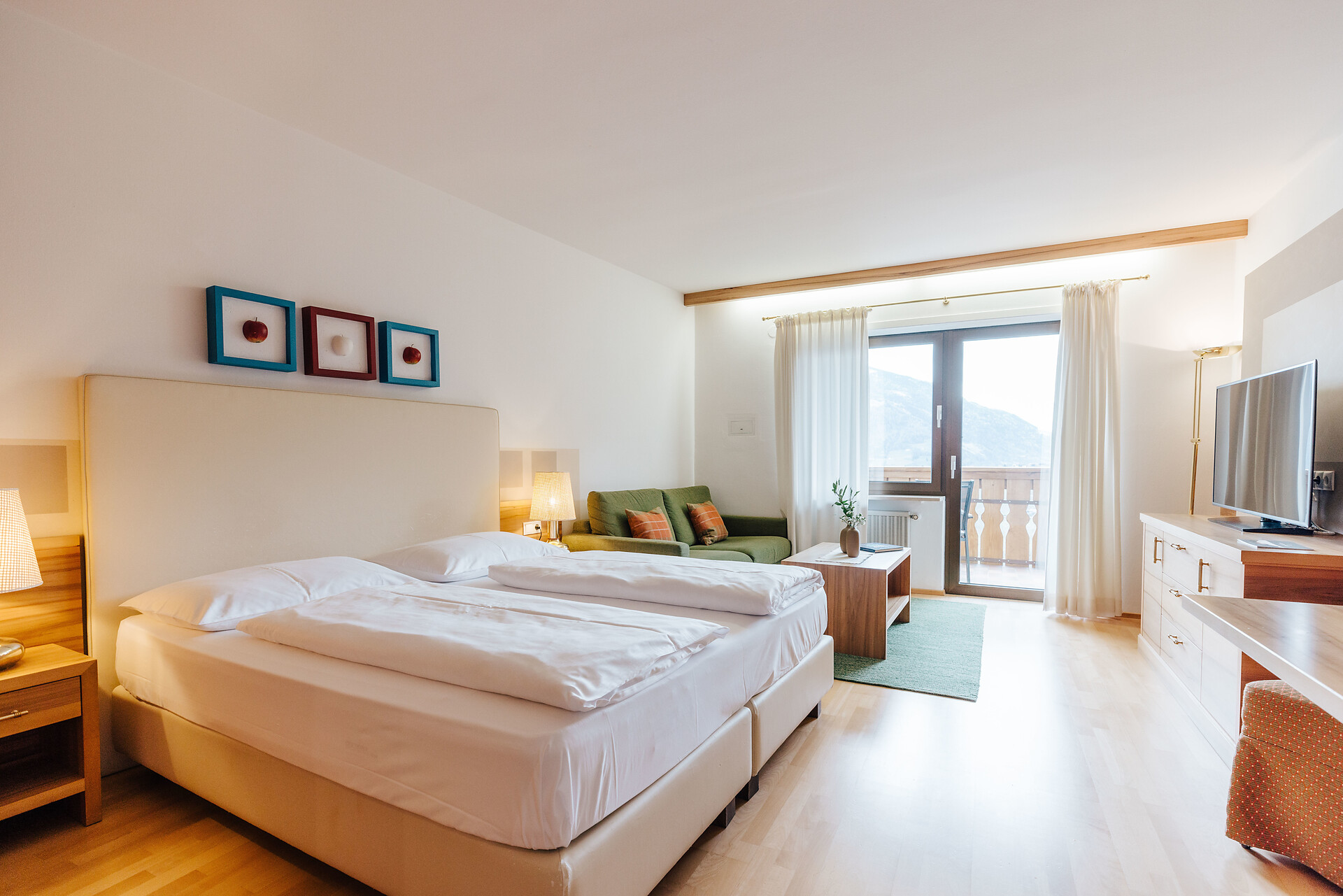 Grande appartamento per quattro persone. L’appartamento Küchelberg dispone su 80 m² di due camere con letti matrimoniali, un soggiorno, una cucina abitabile completamente arredata e un grande bagno con doccia, vasca, bidet e WC separato. La terrazza è il luogo ideale per una piacevole colazione sulle comode sedie a sdraio, si può godere il meraviglioso parco e i dintorni.