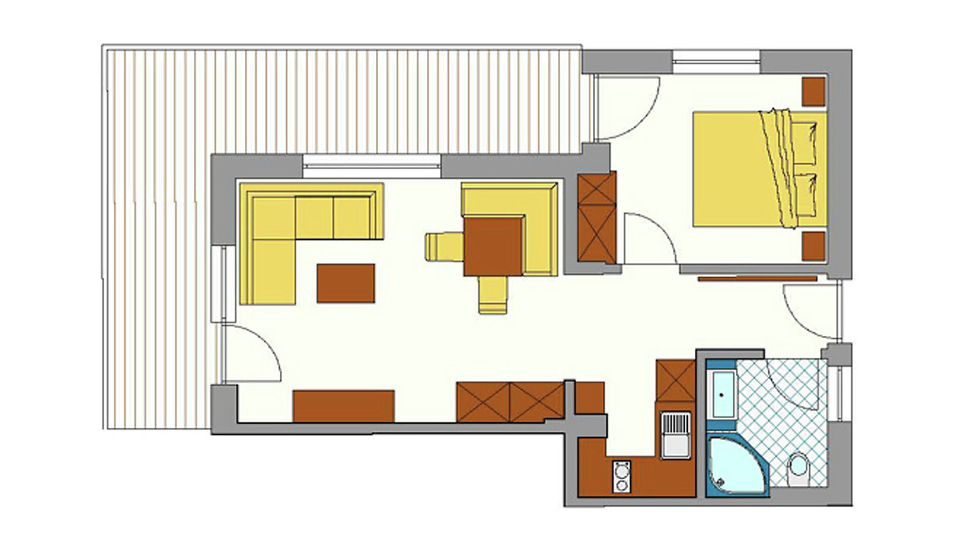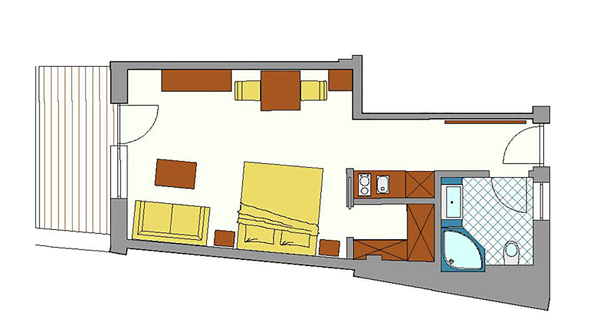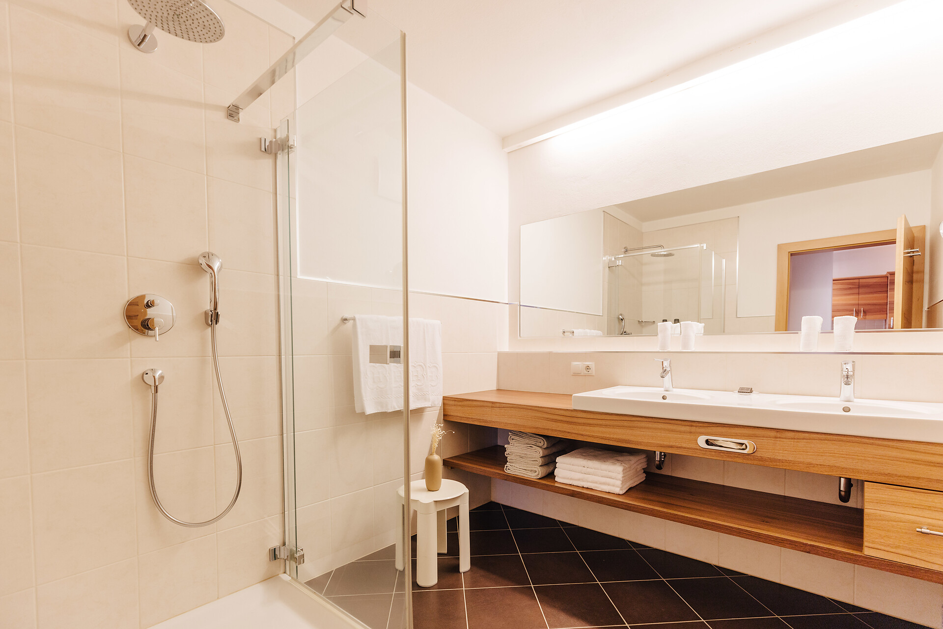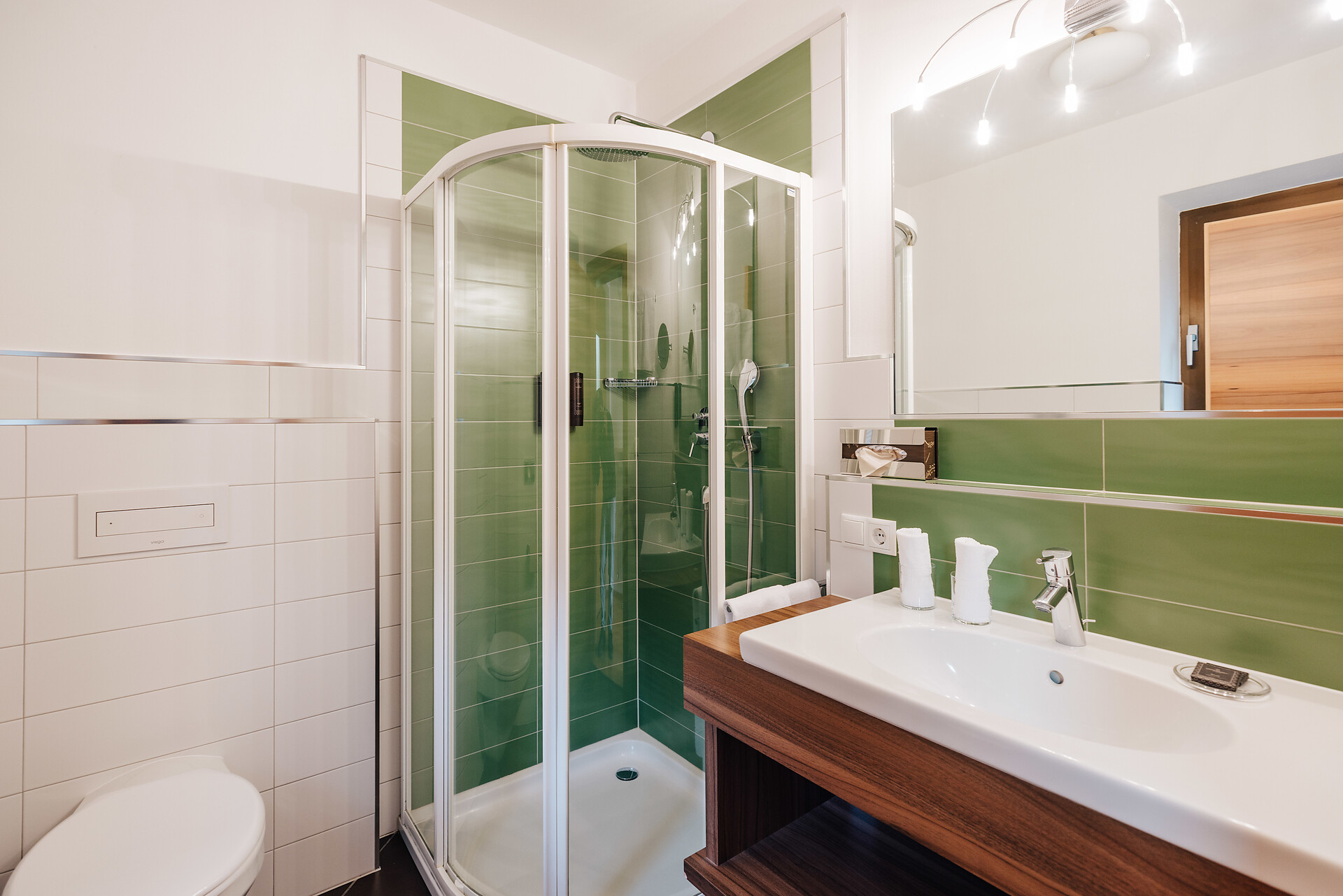 Grande appartamento per quattro persone. L’appartamento Küchelberg dispone su 80 m² di due camere con letti matrimoniali, un soggiorno, una cucina abitabile completamente arredata e un grande bagno con doccia, vasca, bidet e WC separato. La terrazza è il luogo ideale per una piacevole colazione sulle comode sedie a sdraio, si può godere il meraviglioso parco e i dintorni.