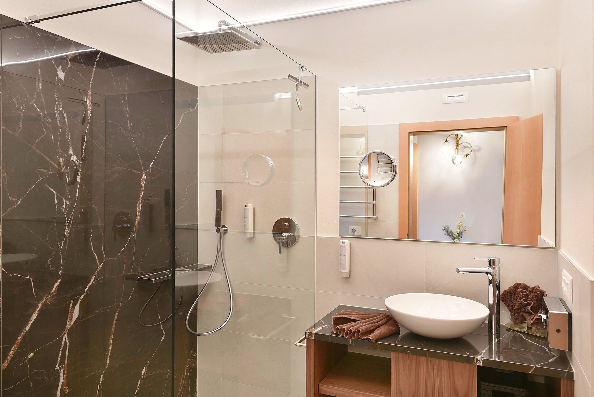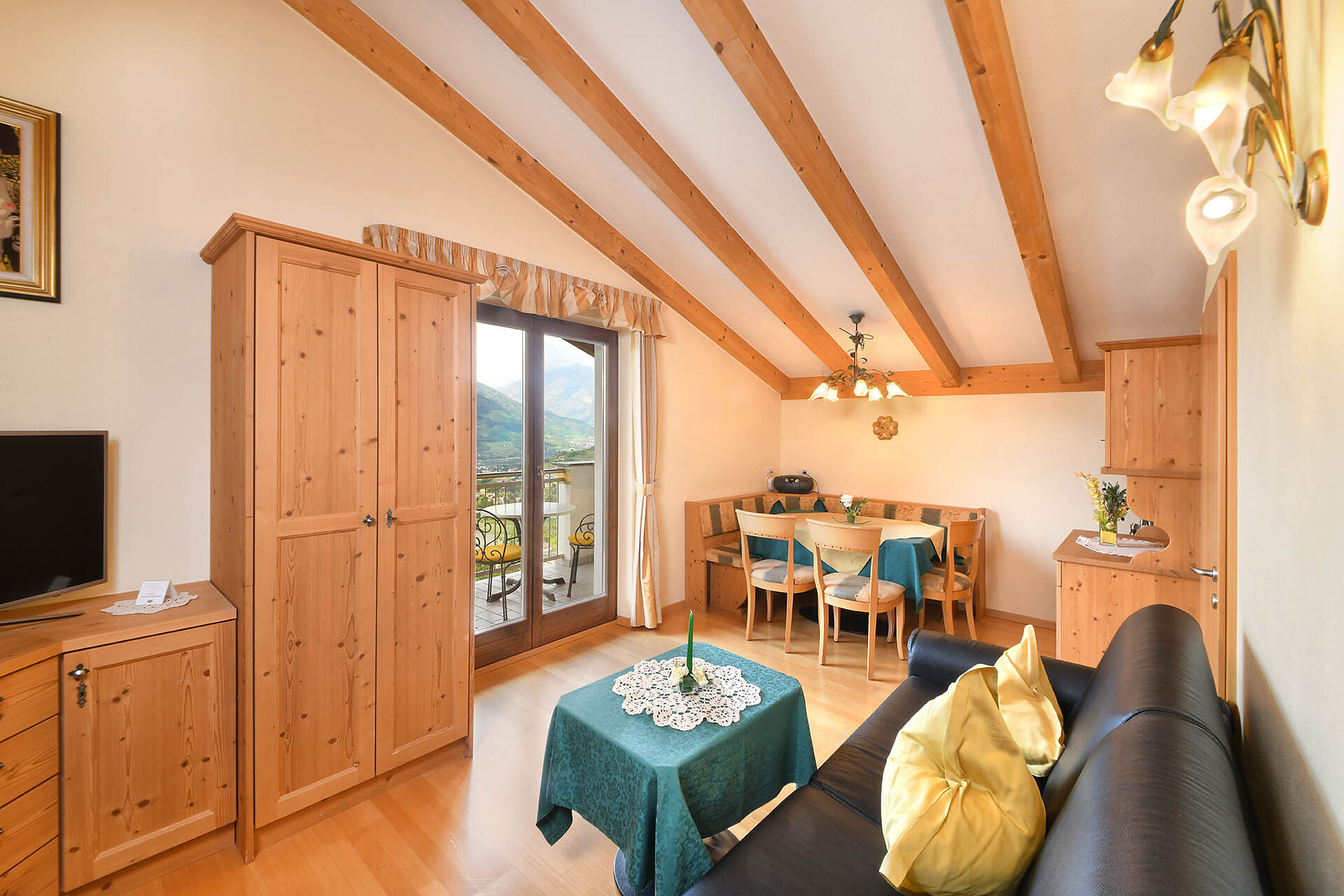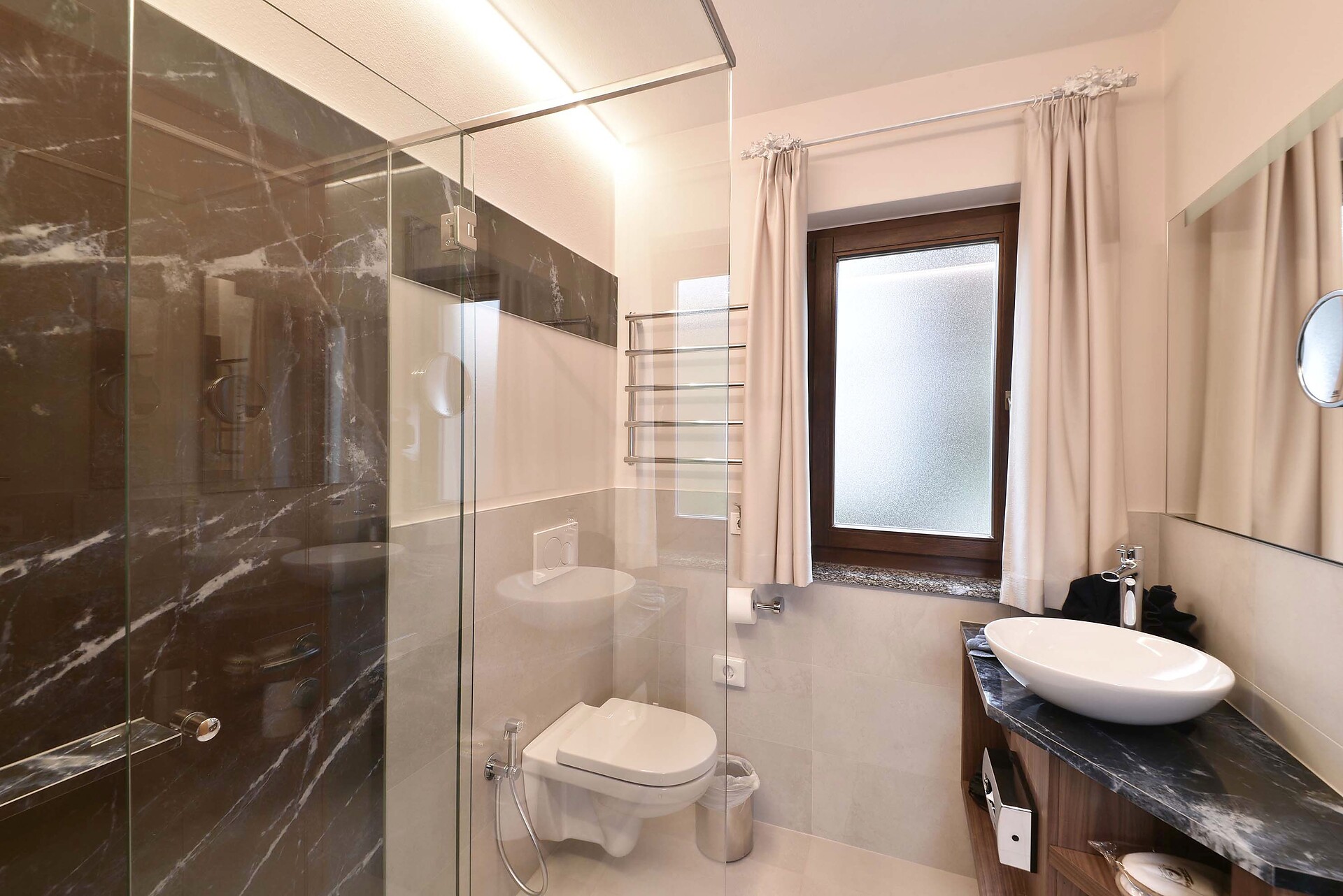 Bilocale - 40/48m2 e 15/10m2 balcone (loggia, posto tavolo, sdraie, ombrellone; atrio; soggiorno con divano letto/2piazze, posto tavolo, TV-LCD, radio, camera con cielo stellare, letto/2piazze, armadio, I-PAD e accesso internet gratuito a sua disposizione, telefono a selezione diretta, cassetta di sicurezza, 2.TV-LCD, biancheria da letto; cucina con piano cottura e forno, macchina caffé a filtro e Nespresso, frigorifero, lavastoviglia; doccia/WC con fon, sapone, asciugamani, accappatoi e pantofole) con vista panoramica