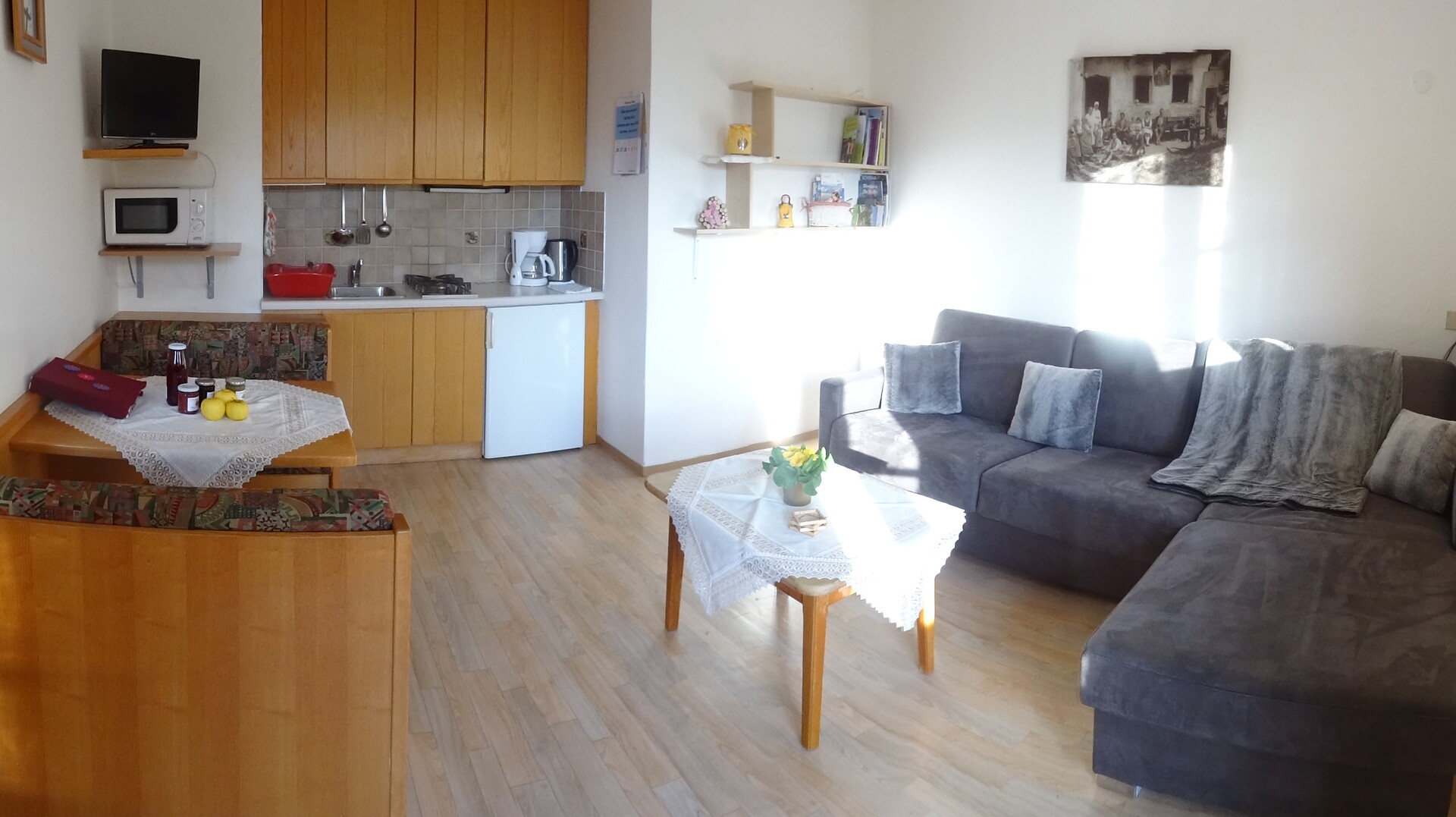 Letto matrimoniale, Letto aggiuntivo, Lettino , Balcone, Terrazza, Giardino, Biancheria da letto disponibile, Appartamento non fumatori, Cucina abitabile, Macchina da caffè, Piano cottura a gas, Piano cottura elettrico, Forno a microonde, Stoviglie, Scaldaacqua, Doccia / bagno, Asciugamani, HiFi, TV, WLAN, Pulizia finale inclusa, Edificio principale, Vista panoramica, Lato sud