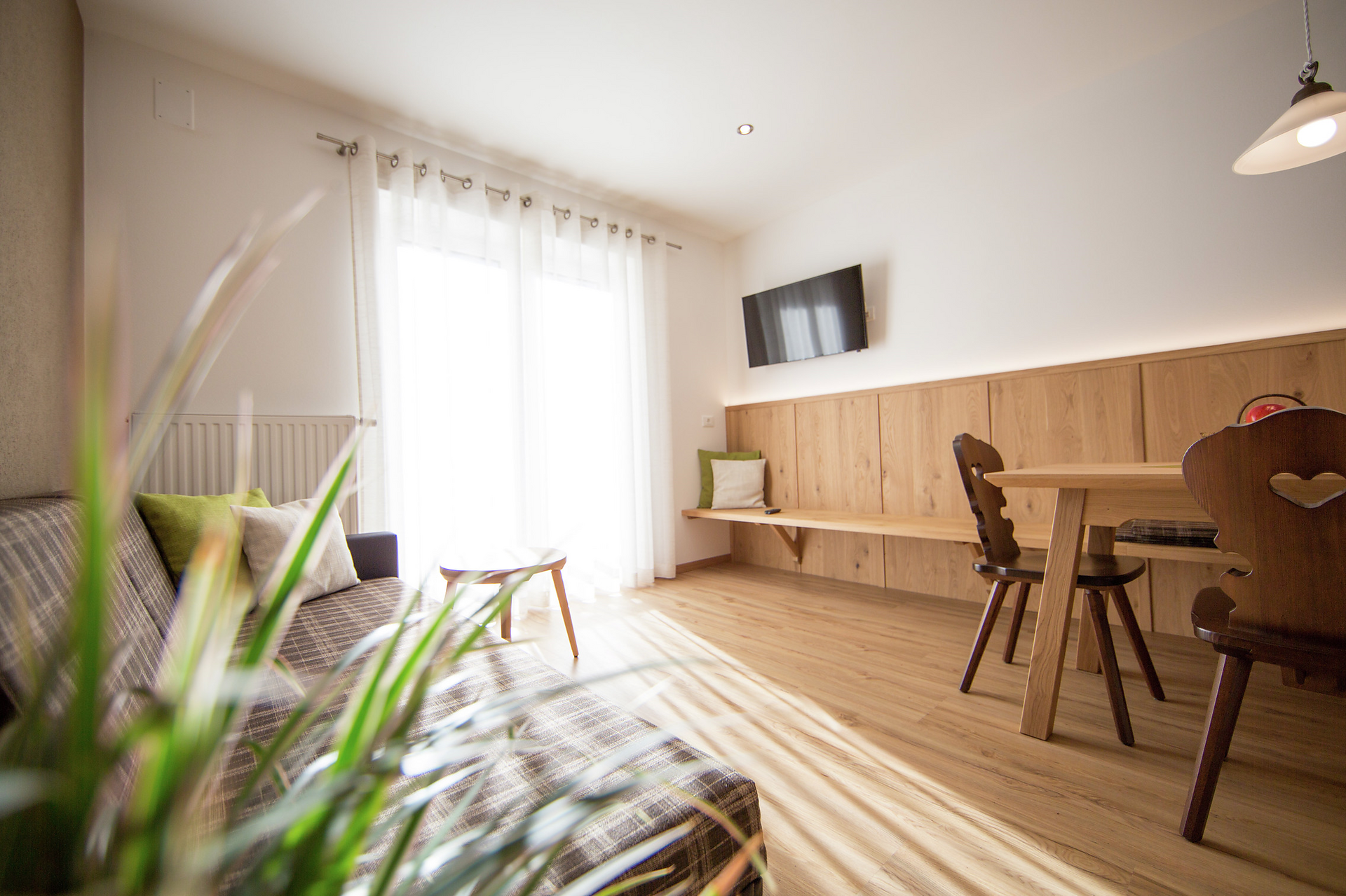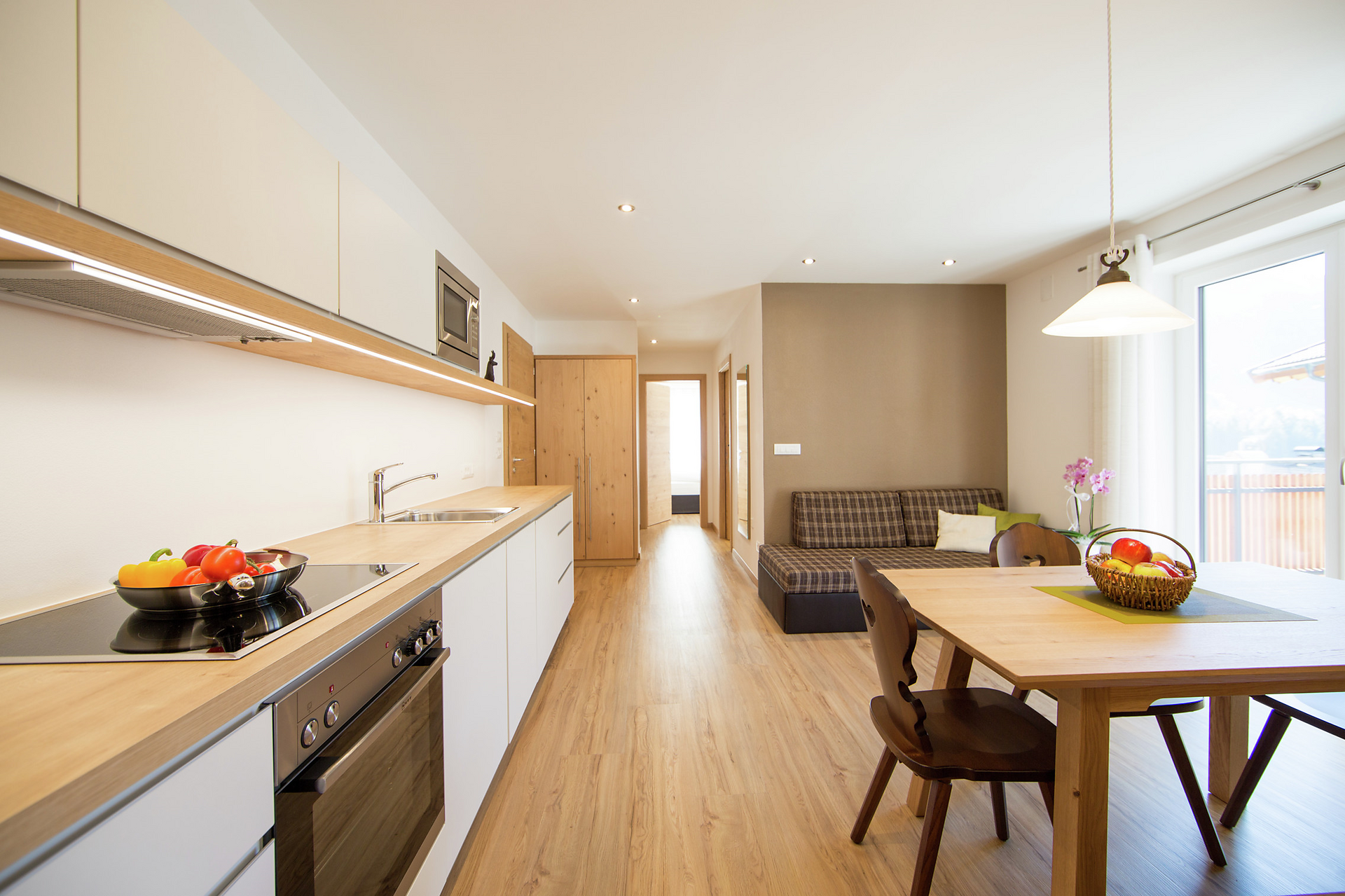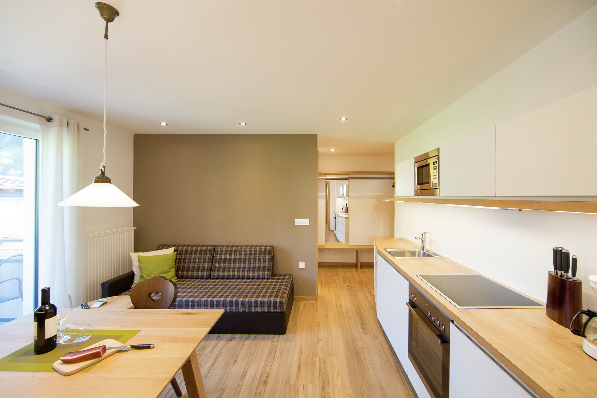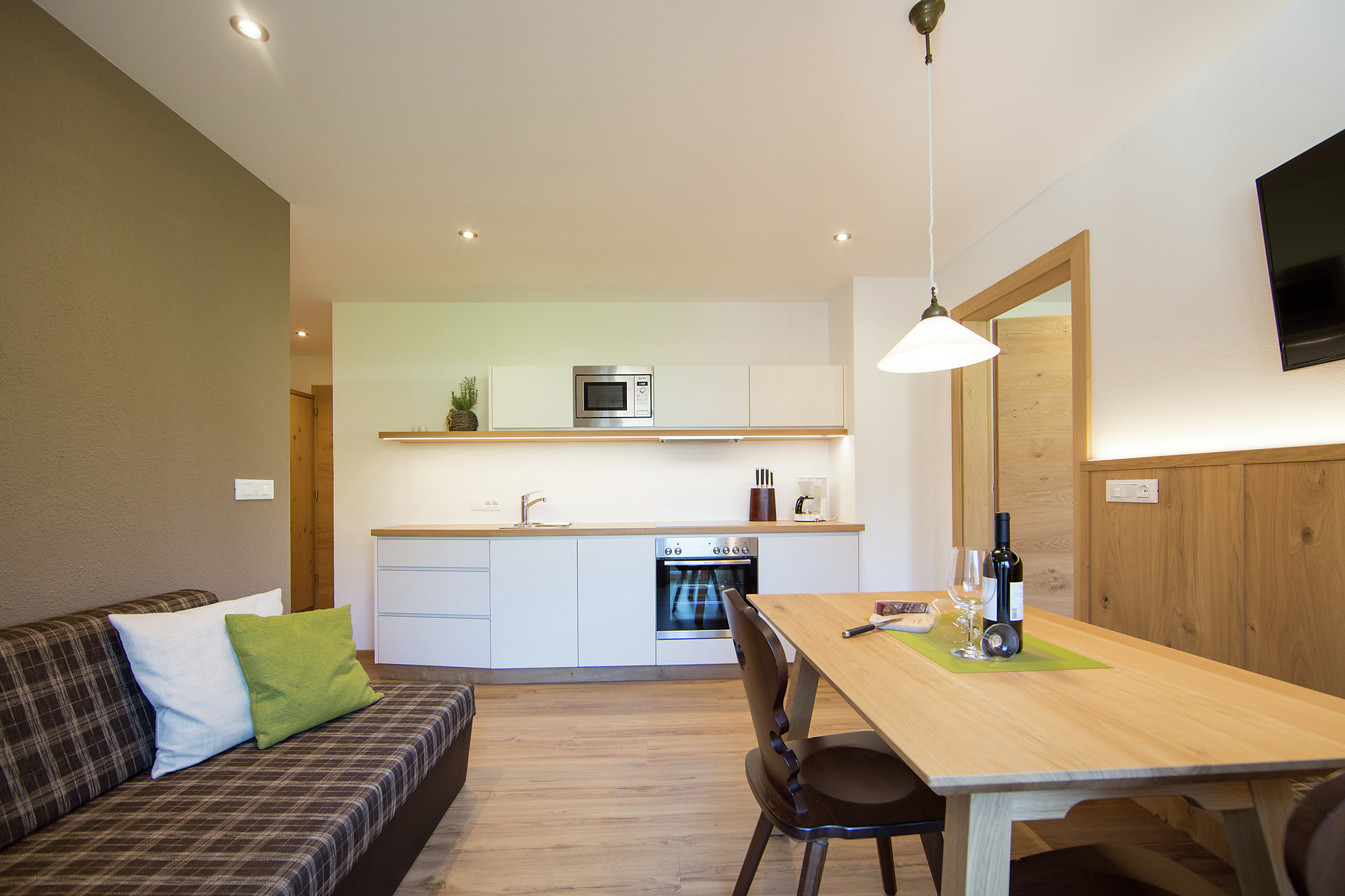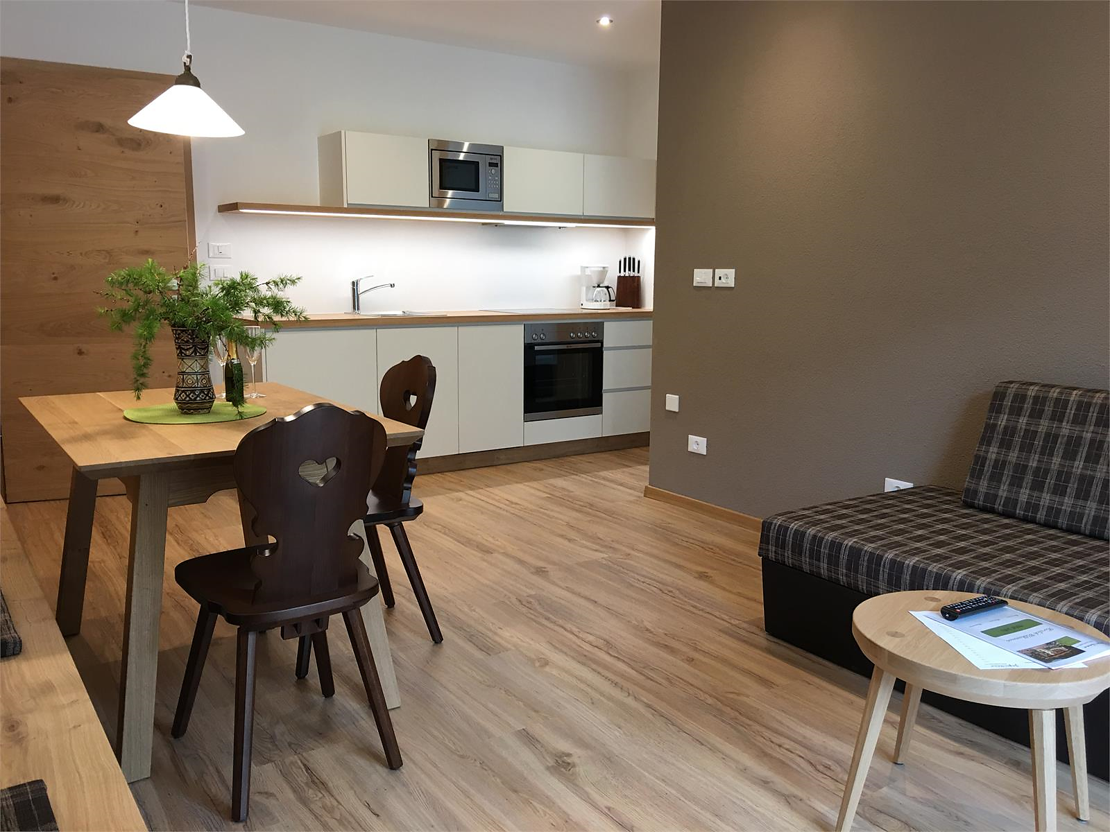 L'appartamento per famiglie Cirmolo, con il suo arredo confortevole, offre due camere da letto separate, una cucina abitabile separata e ampio balcone soleggiato.