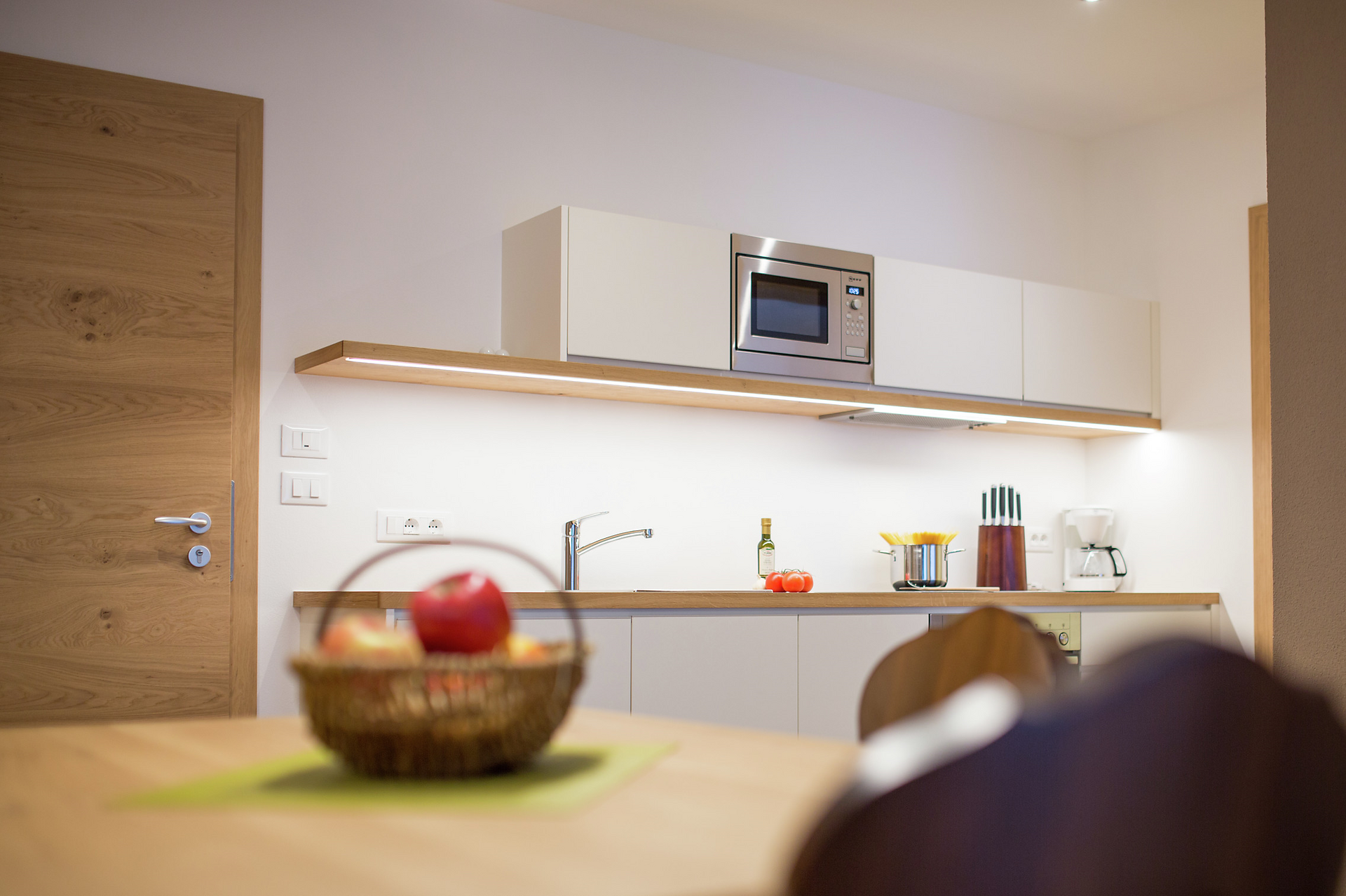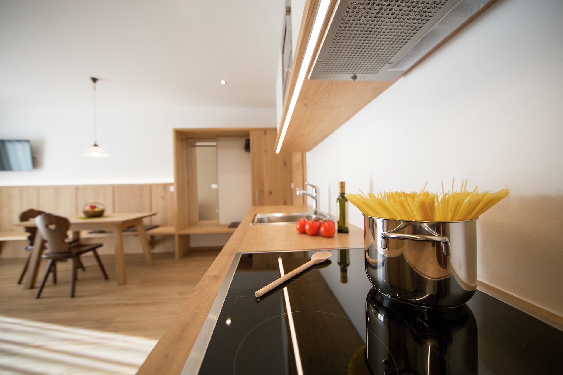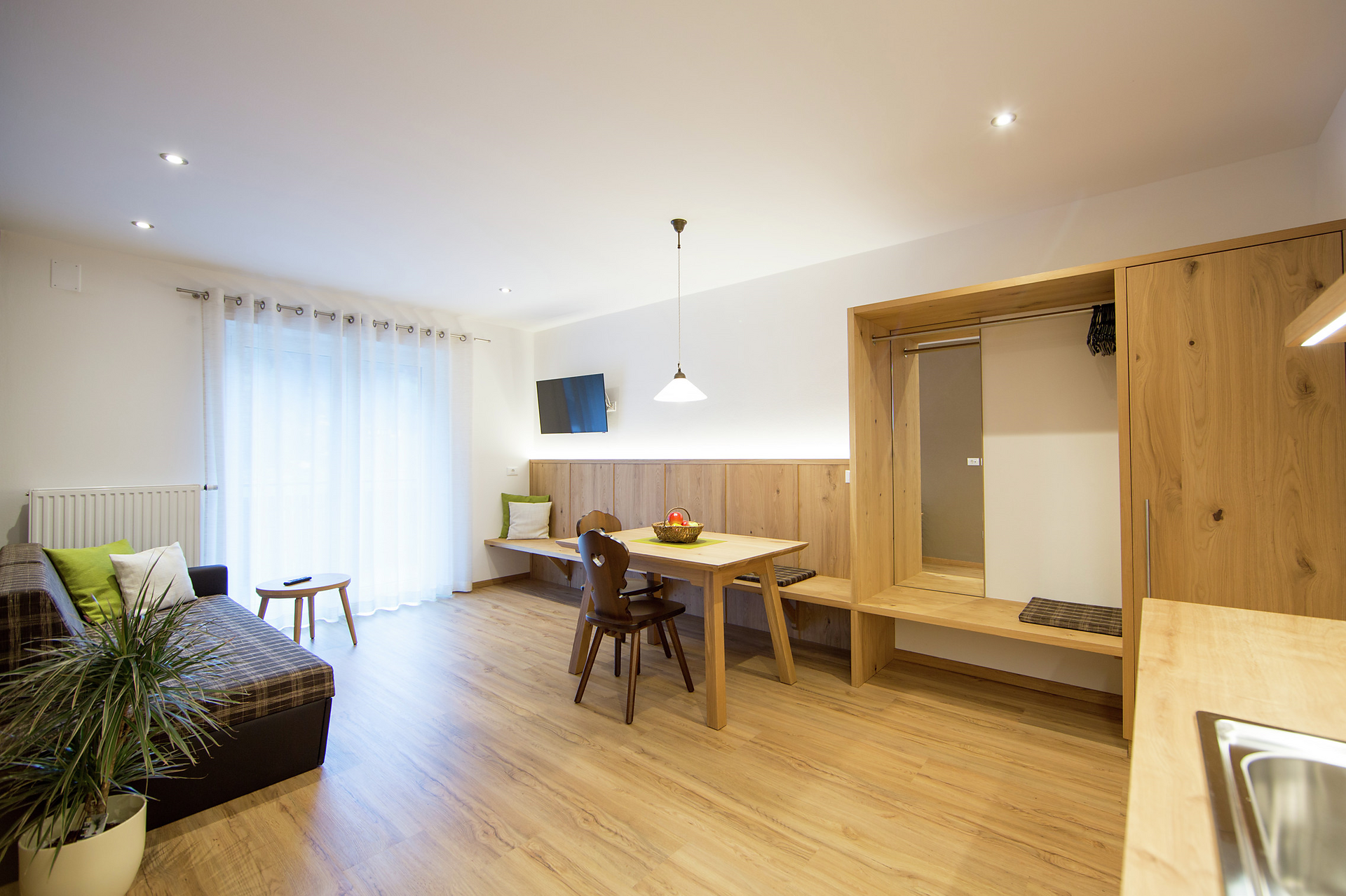 • arredato con piacevole legno di quercia chiaro