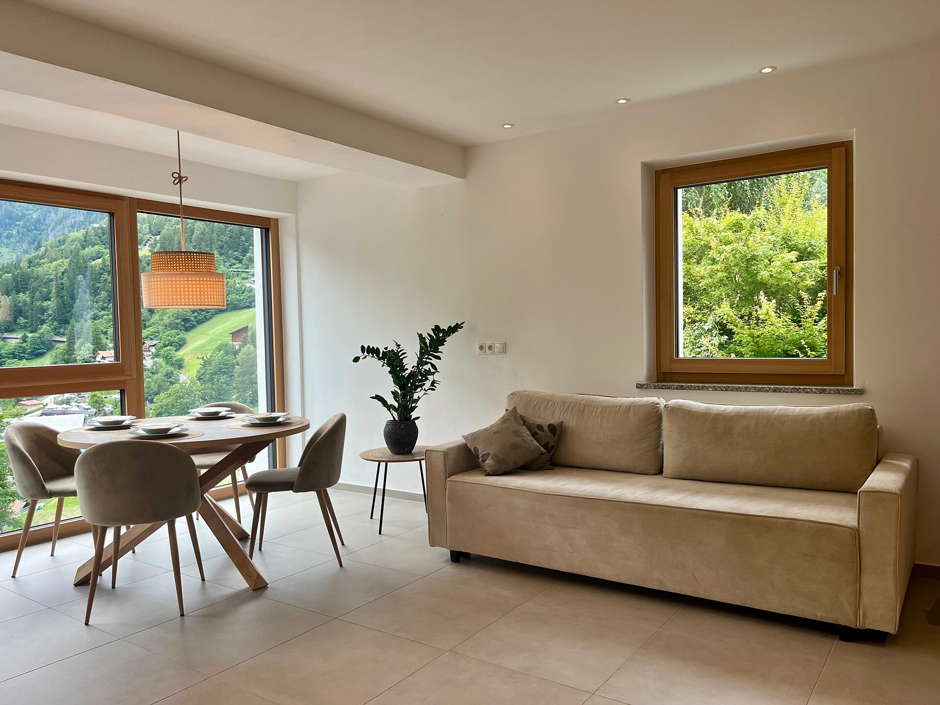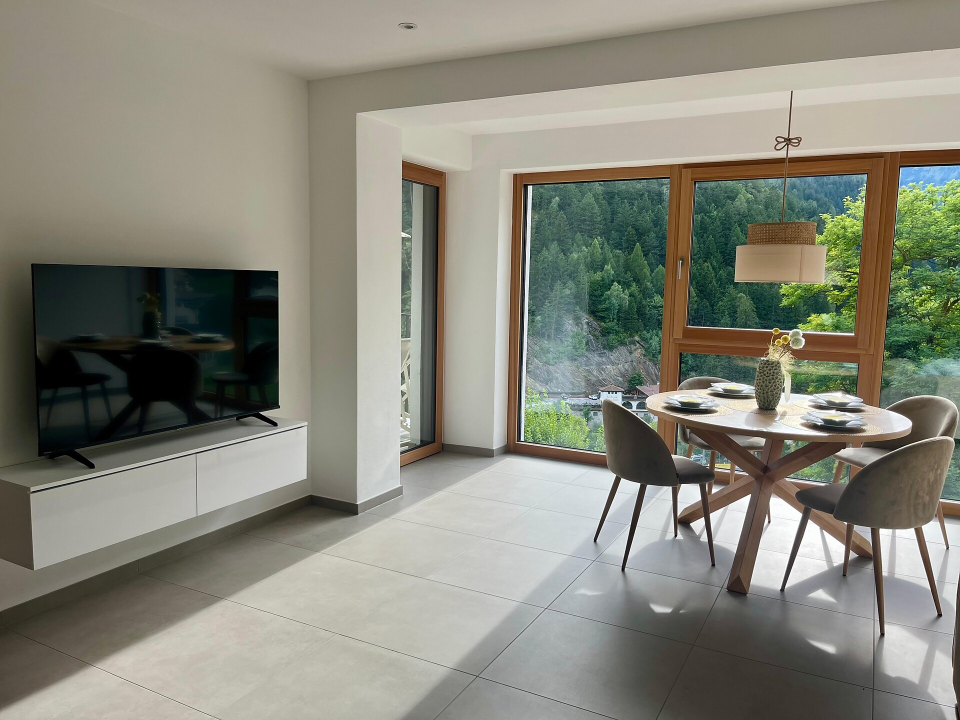 L’appartamento di 80 m² dispone di un accogliente soggiorno con una meravigliosa vista panoramica sulle montagne, una cucina completamente attrezzata, due camere da letto e due moderni bagni separati – perfetto per un massimo di 3 adulti e bambini.