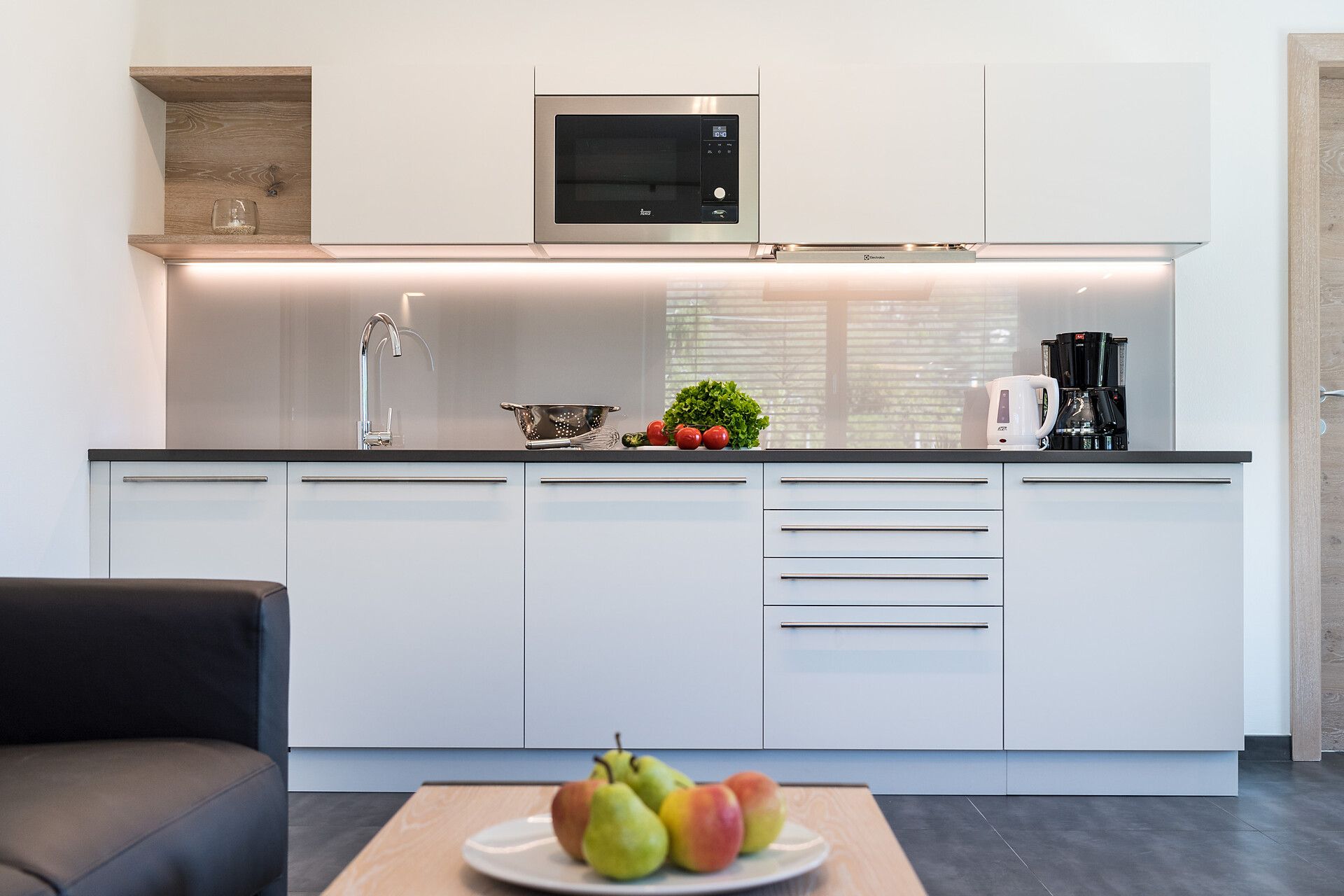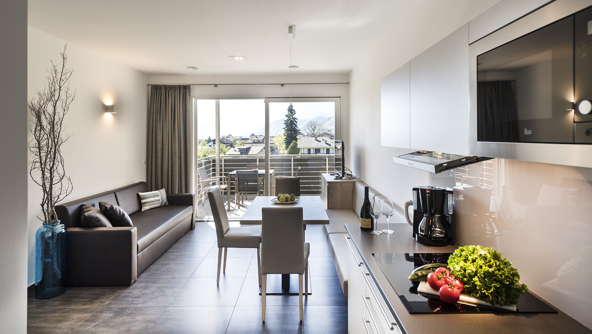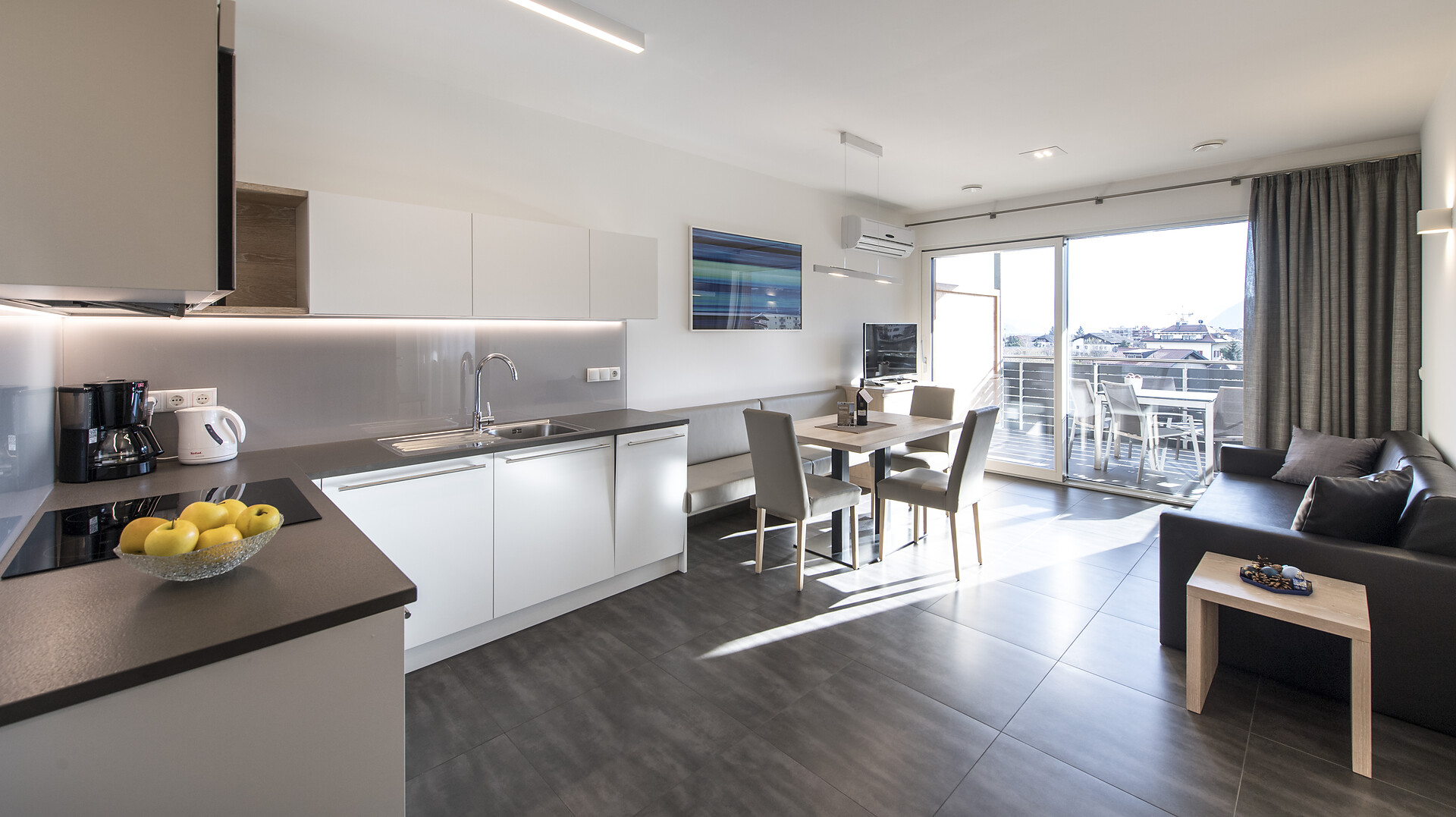 I nostri appartamenti sono dotati di comfort moderni come bollitore, piano cottura a induzione, macchina per il caffè, caffettiera Moka, forno a microonde, lavastoviglie, biancheria da letto, asciugamani, aria condizionata, Wi-Fi con fibra ottica e TV satellitare. La particolare sensazione di comfort dei nostri letti è garantita dal topper di alta qualità, che assicura un sonno ristoratore. Vi preghiamo di notare che gli animali domestici non sono ammessi nelle nostre strutture, al fine di preservare la tranquillità e la pulizia dei nostri spazi.