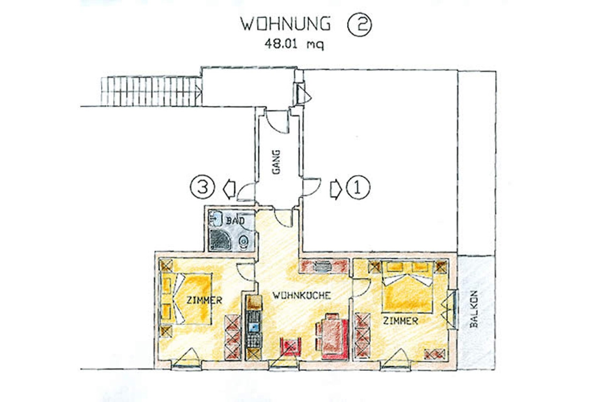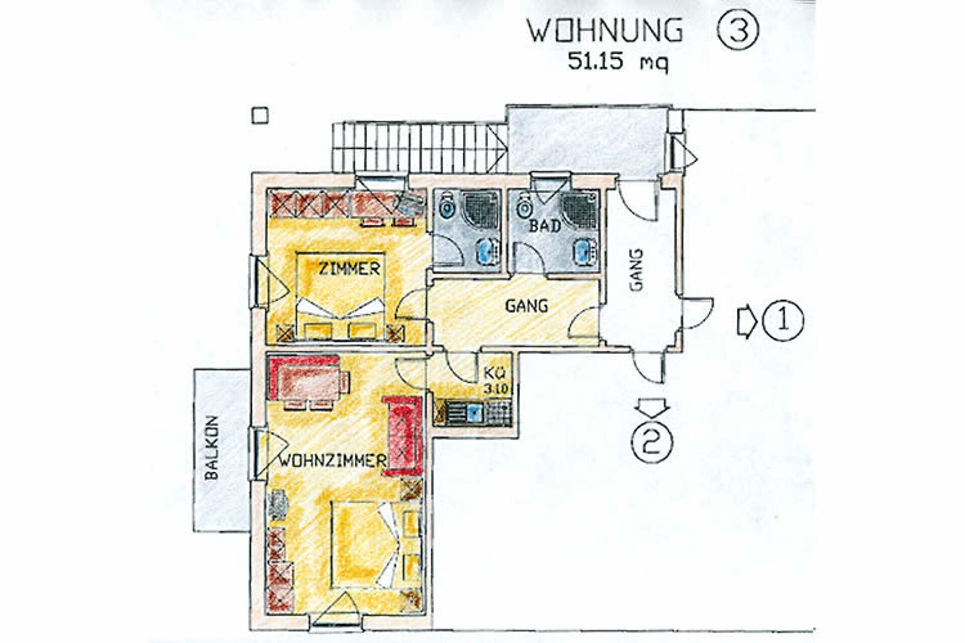 L'appartamento é composto da una cucina abitabile, 2 camere matrimoniali, 2 bagni con doccia e balconeGli appartamenti sono dotati di angolo cottura con bollitore, forno a microonde, macchina per il caffè, comodi posti per sedere, TV satellitare, cassaforte, bagno con doccia o vasca da bagno, bidé, asciugacapelli, bagno e balcone. Tutti i balconi hanno 2 sedie a sdraio, tavolo e sedie. Strofinacci, asciugamani, biancheria e stoviglie sono forniti e vengono cambiati a piacere.