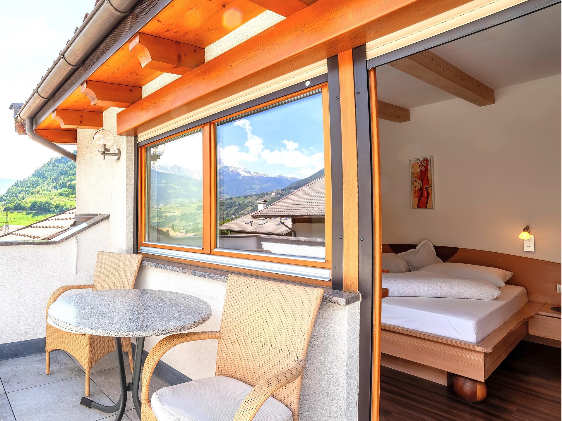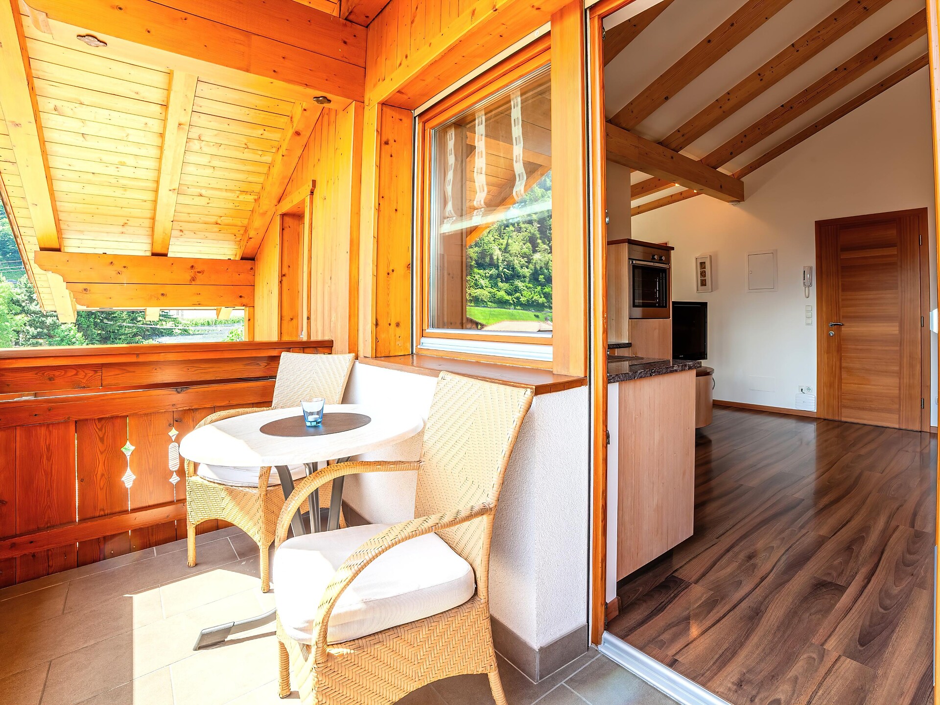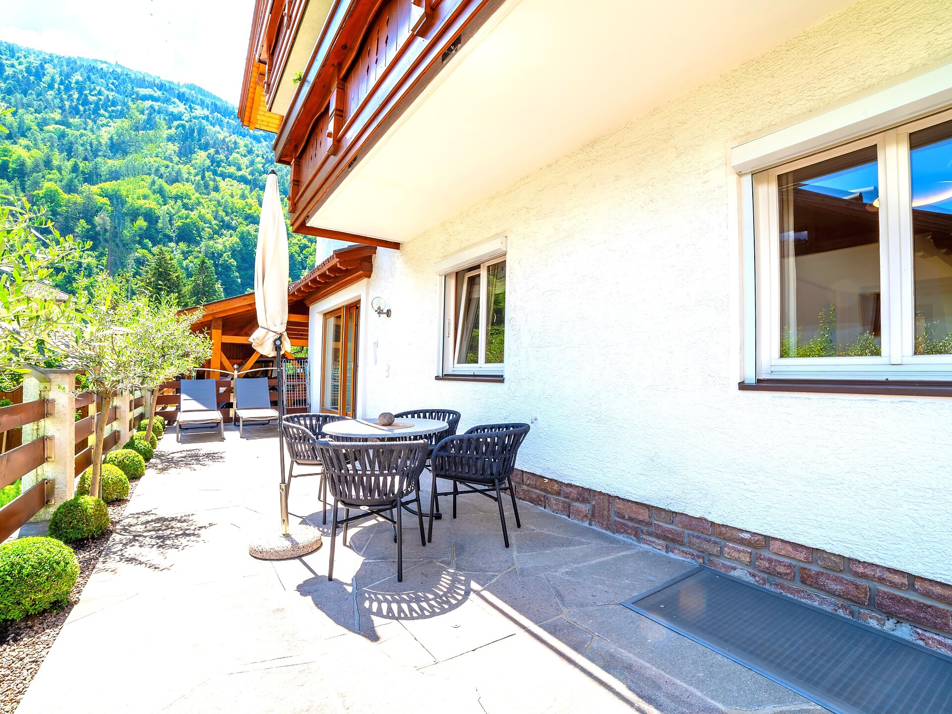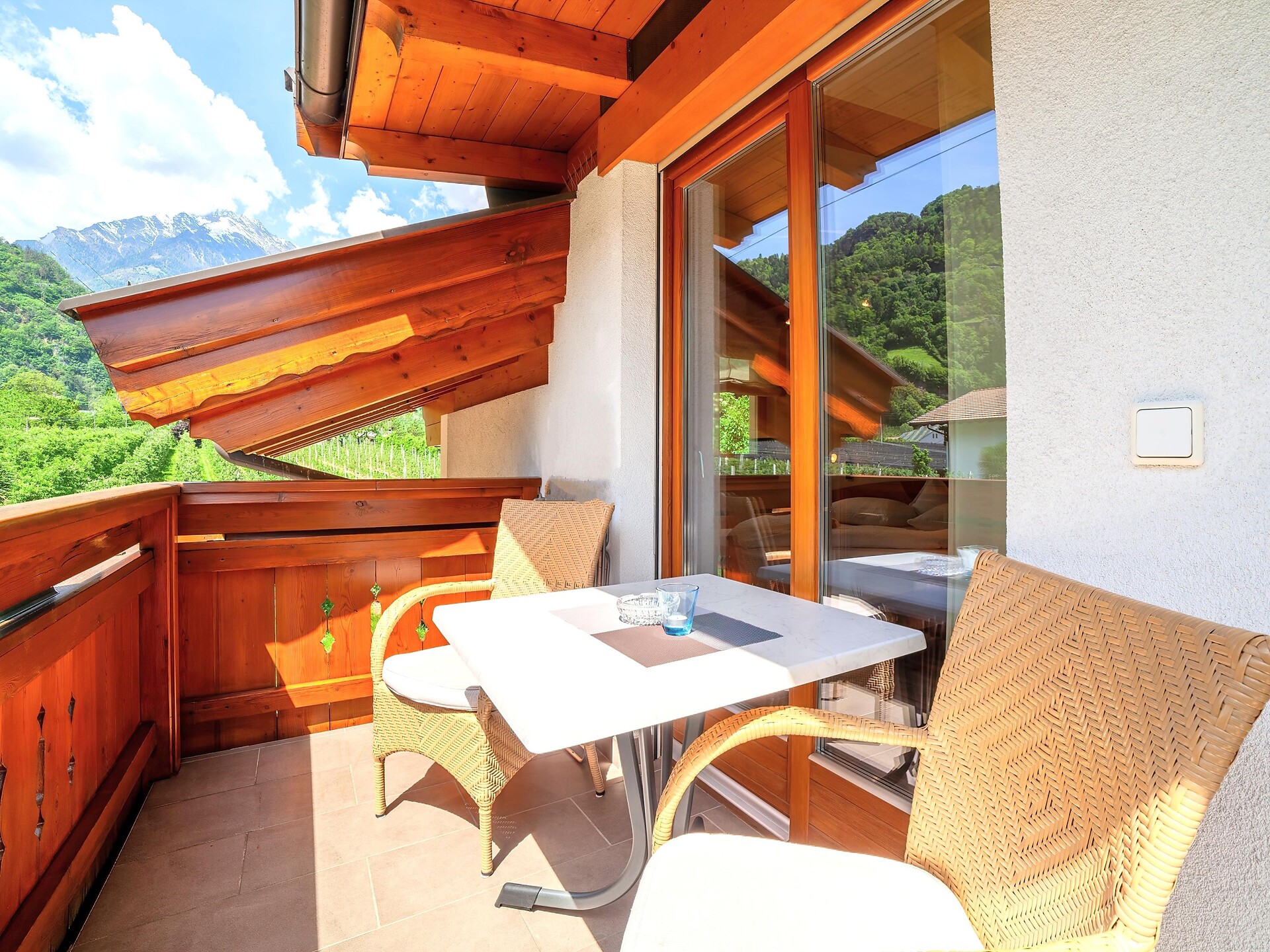 Atmosfera alpina con due balconi soleggiati.