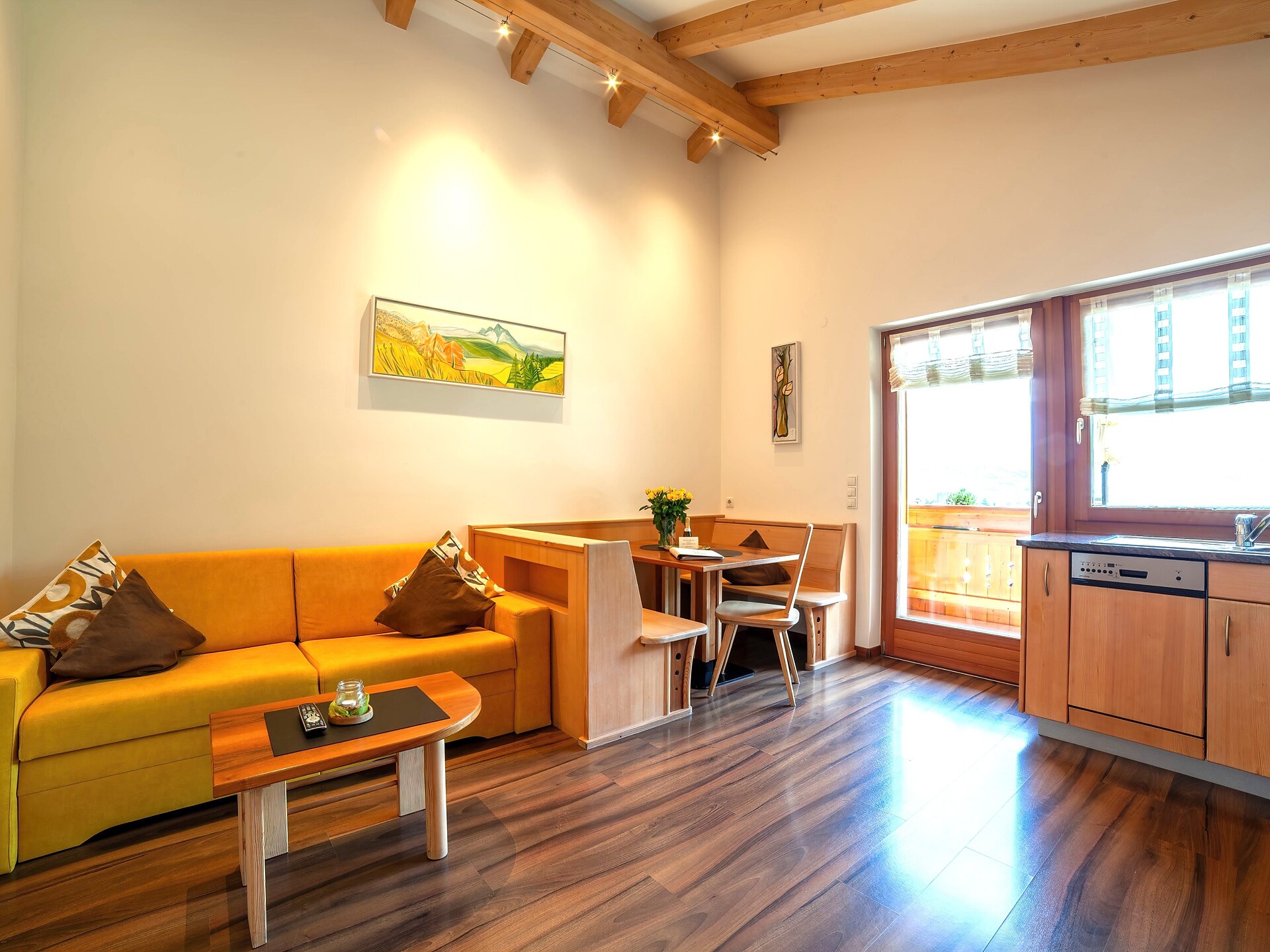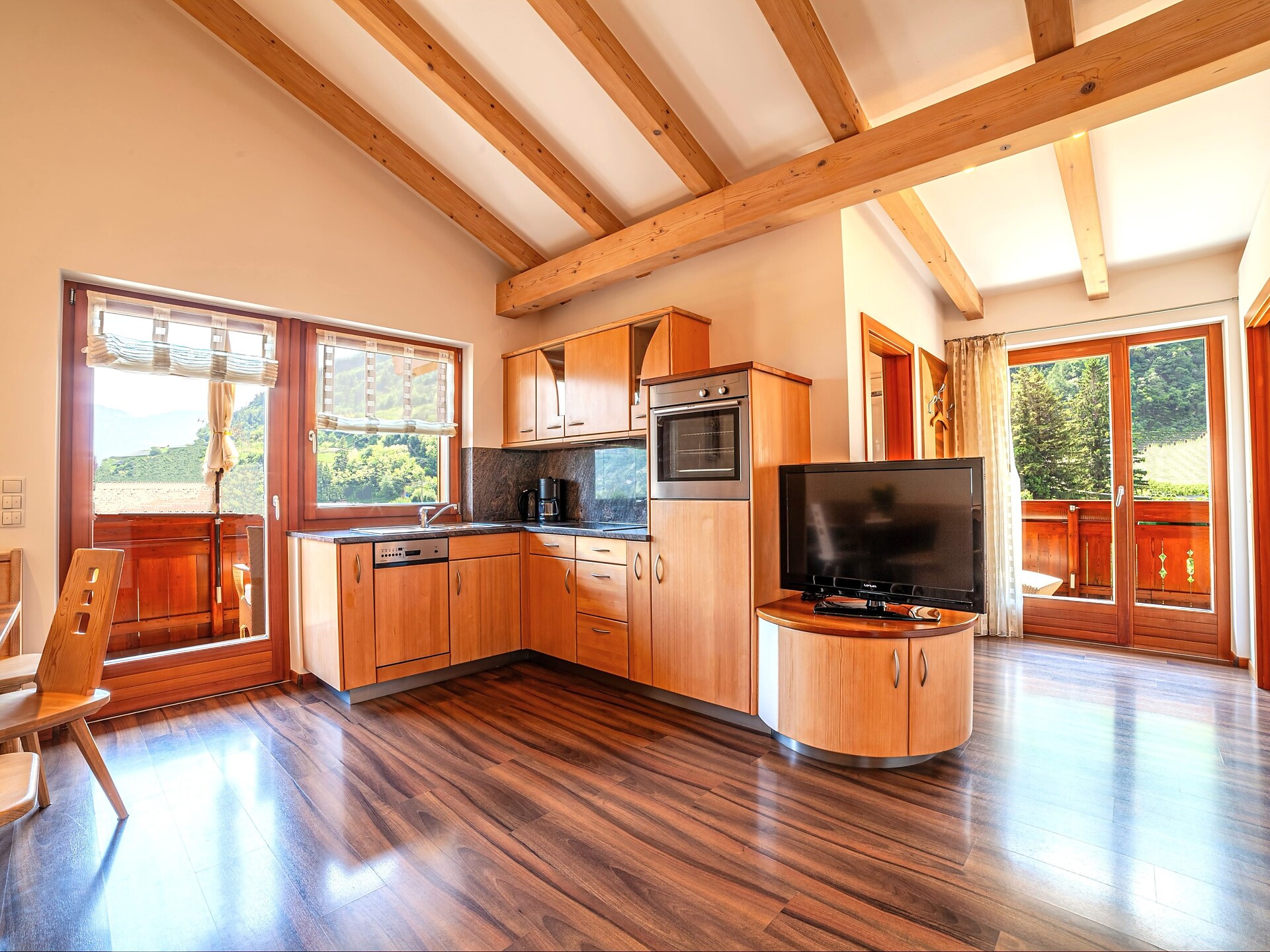 I nostri eleganti appartamenti in legno naturale uniscono il fascino alpino a un comfort abitativo di alta qualità e offrono spazio per 2 fino a 5 persone. Ampie zone giorno, cucine completamente attrezzate, bagni moderni e balconi soleggiati o terrazze con una splendida vista sulle montagne creano un ambiente ideale per rilassarsi e godersi la vacanza.