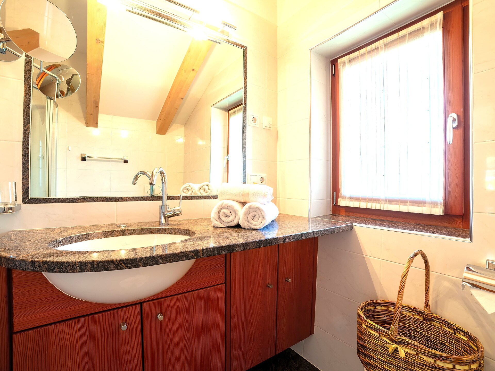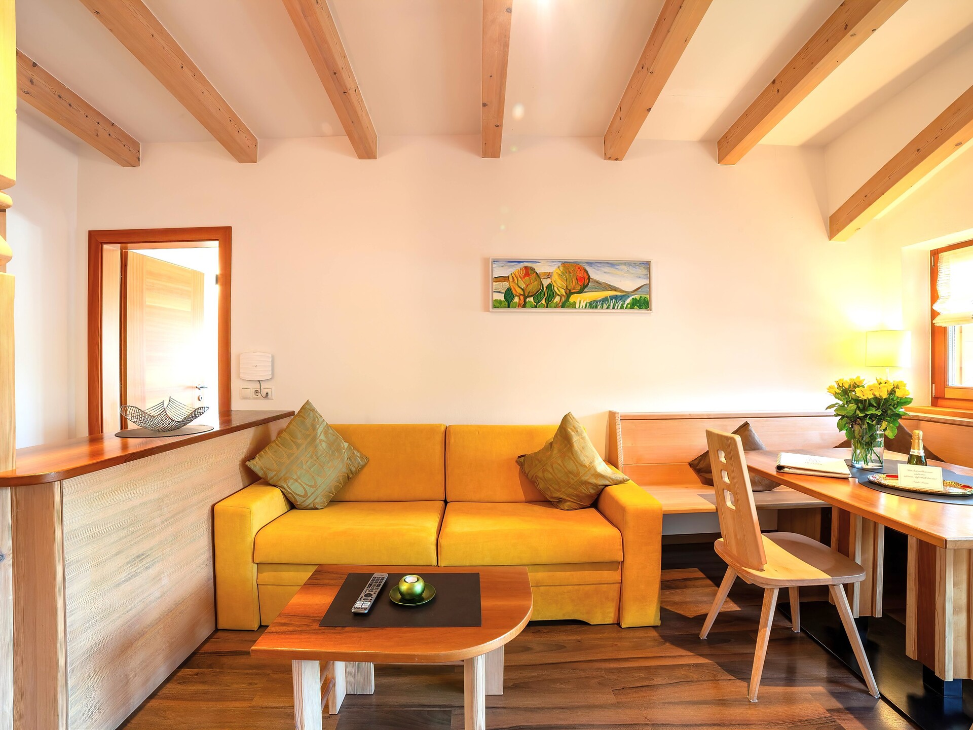 Perfetto per quattro persone; su richiesta, il divano-letto nel soggiorno può essere preparato per una quinta persona.
