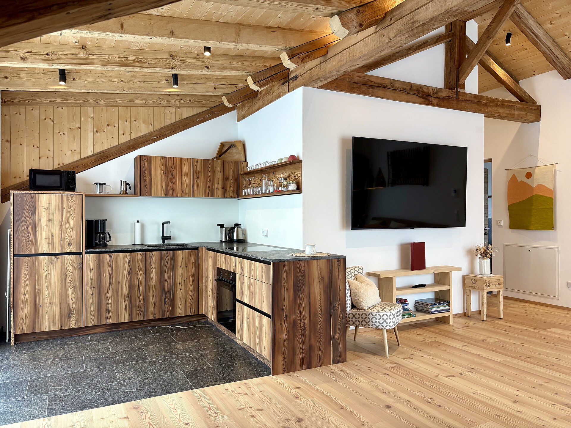 La struttura Unterweger Berg Apartments si trova in mezzo alle montagne sopra Tesimo, in posizione soleggiata tra Merano e Bolzano, un po' nascosta ma facilmente raggiungibile. La nostra casa si trova sopra la valle dell'Adige a 1.270 metri di altitudine. Circondato da prati, boschi e da una vista mozzafiato sulla cornice montuosa di Meran2000 e del Catinaccio. Gli appartamenti, che sono in sintonia con la natura, invitano a respirare a pieni polmoni e a staccare la spina. Ogni momento è vostro, sia che si tratti di trascorrere momenti tranquilli sulla terrazza, di fare una passeggiata nella campagna circostante o di godervi un momento di quiete dopo una giornata attiva nelle montagne del Sudtirolo. Le Unterweger Berg Apartments sono un rifugio per tutti coloro che desiderano unire natura, escursioni, piacere e relax. Qui la tranquillità, la qualità e il vero spirito di vita altoatesino si fondono in ricordi indimenticabili.