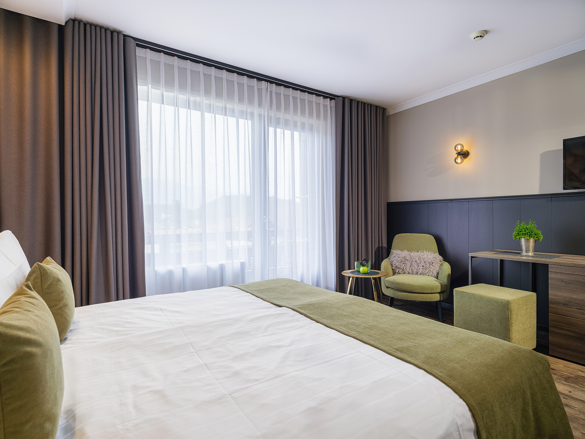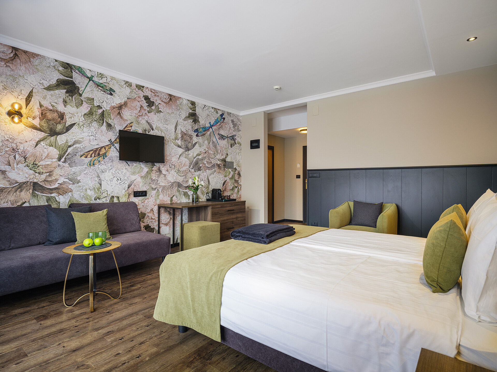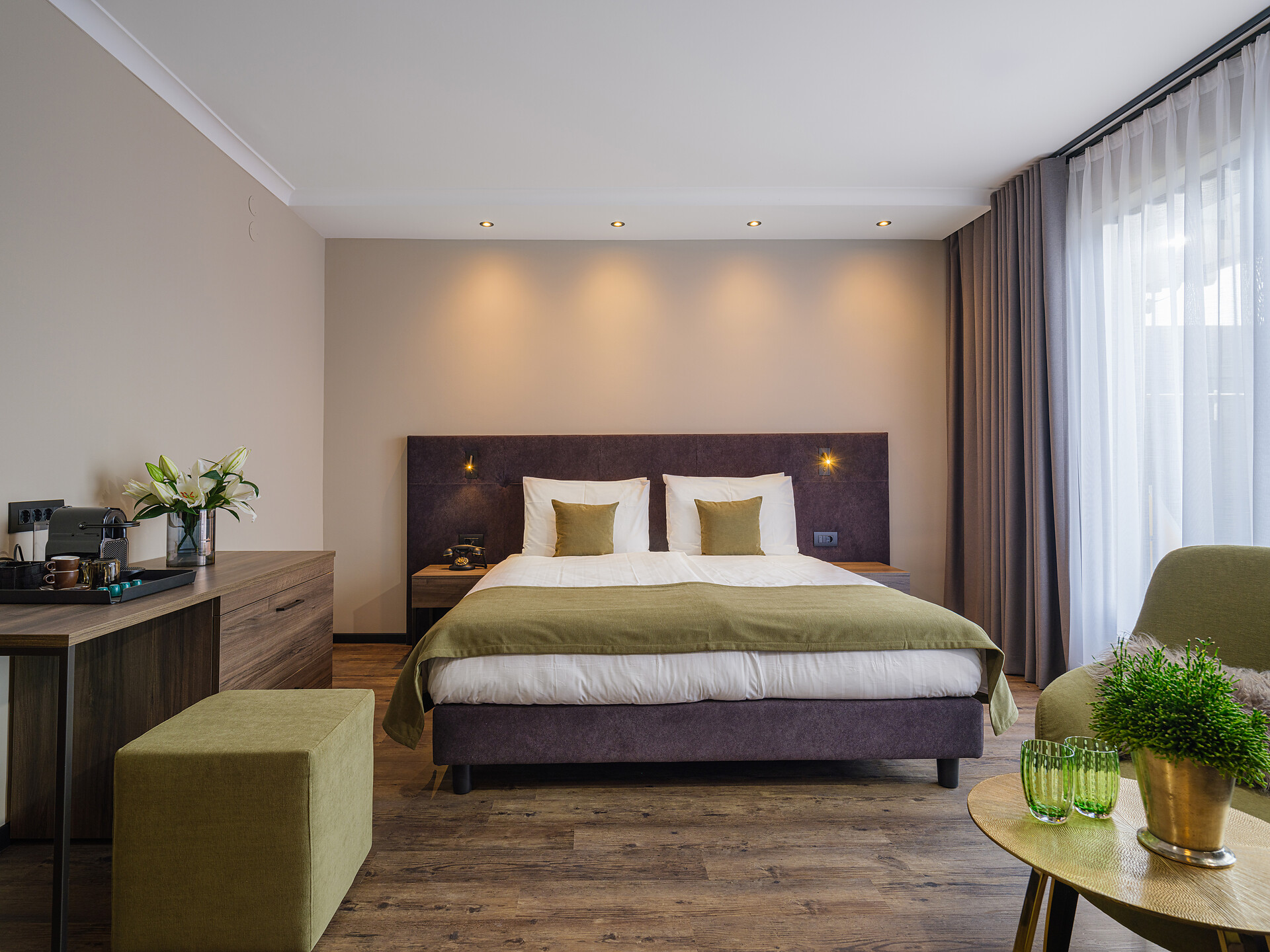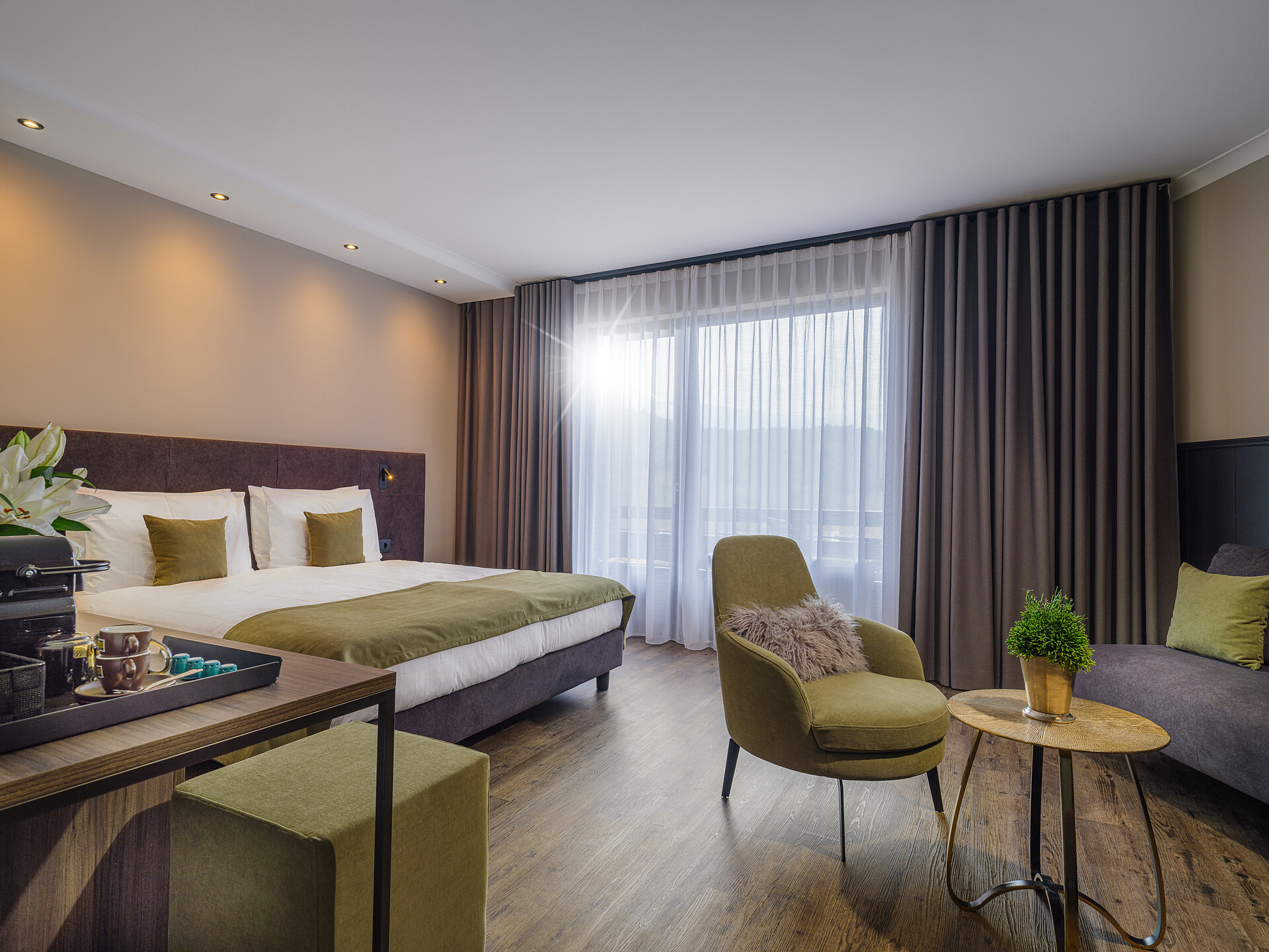 • TV a schermo piatto Full HD, telefono, bollitore per tè, cassaforte, macchina Nespresso e Wi-Fi