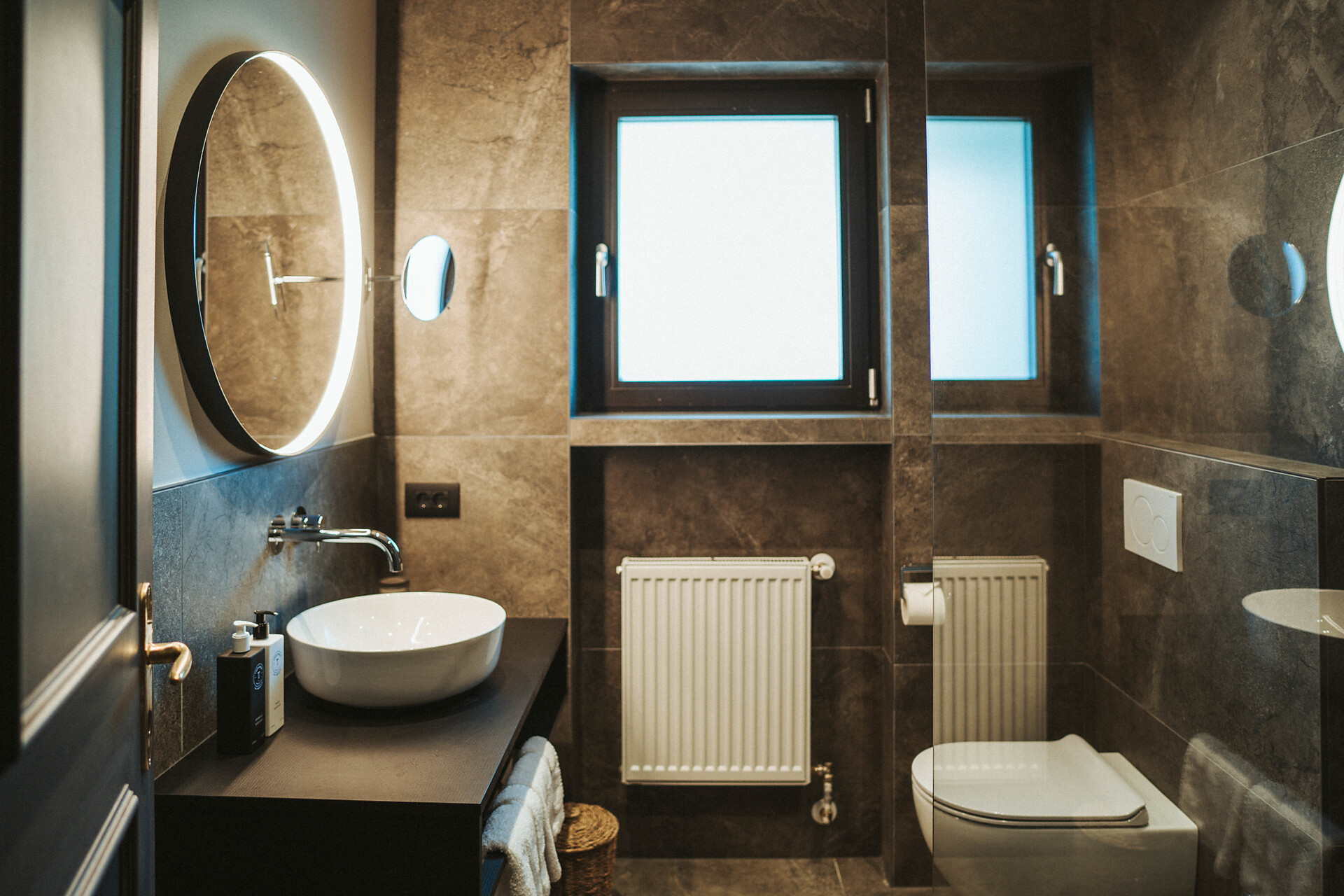 • Moderno bagno con WC, doccia, prodotti di cortesia Tirolensis e asciugacapelli