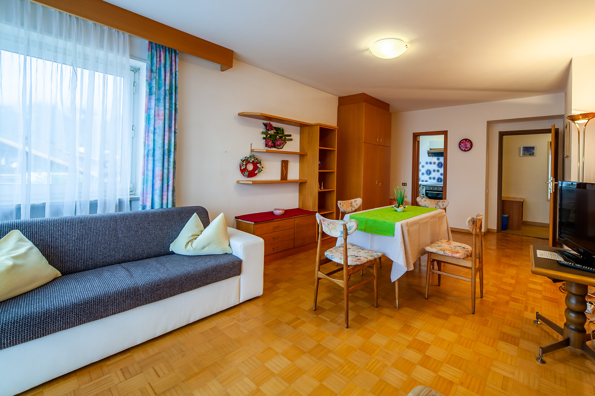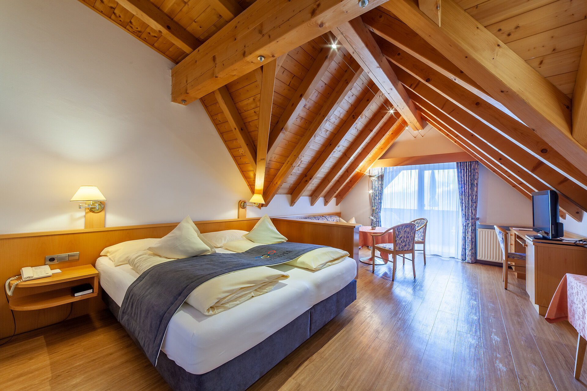 La zona giorno e notte è dotata di angolo cottura, doccia, servizi igienici, schermo piatto con TV digitale, cassaforte, comodo divano, connessione Wi-Fi gratuita, radio, telefono, asciugacapelli, specchio cosmetico, accappatoio e asciugamano. La cucina / sala da pranzo può essere divisa per metà partizione. La biancheria da tavola e da letto viene fornita settimanalmente